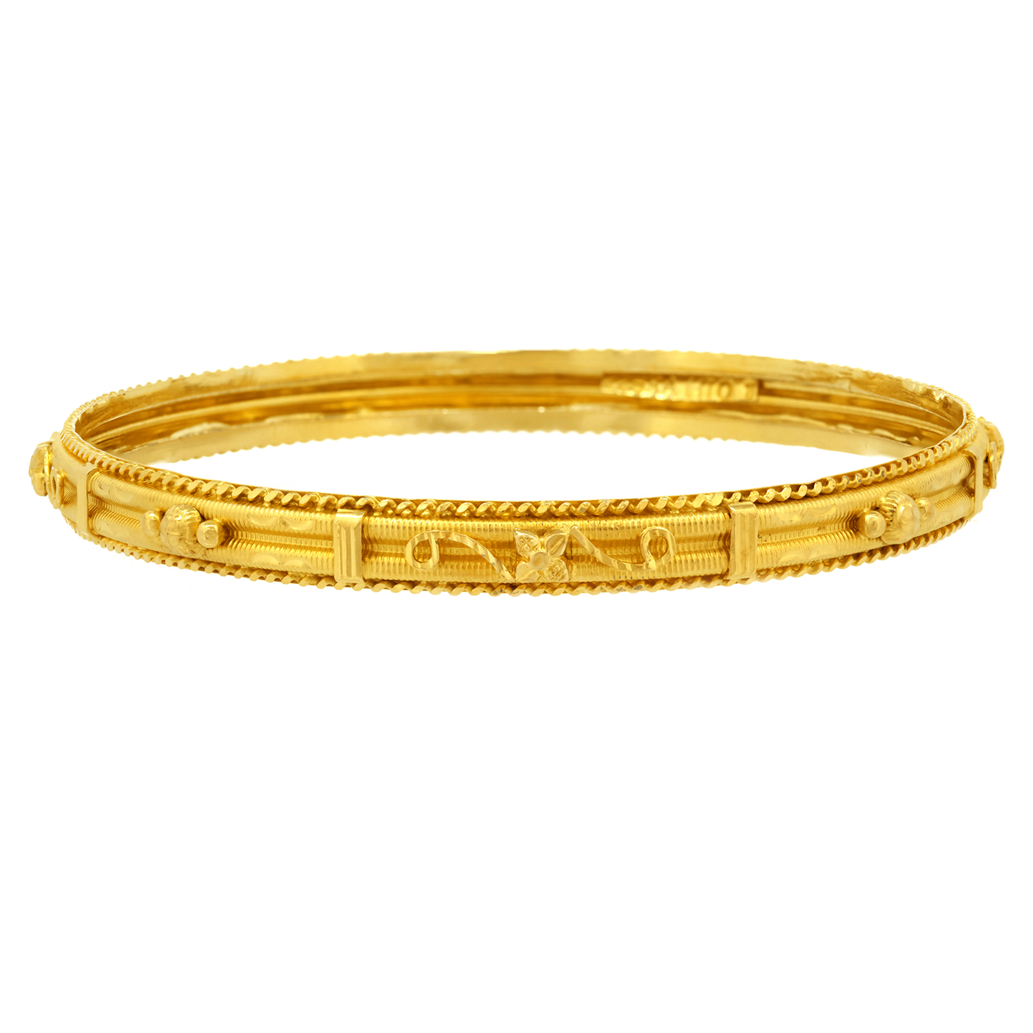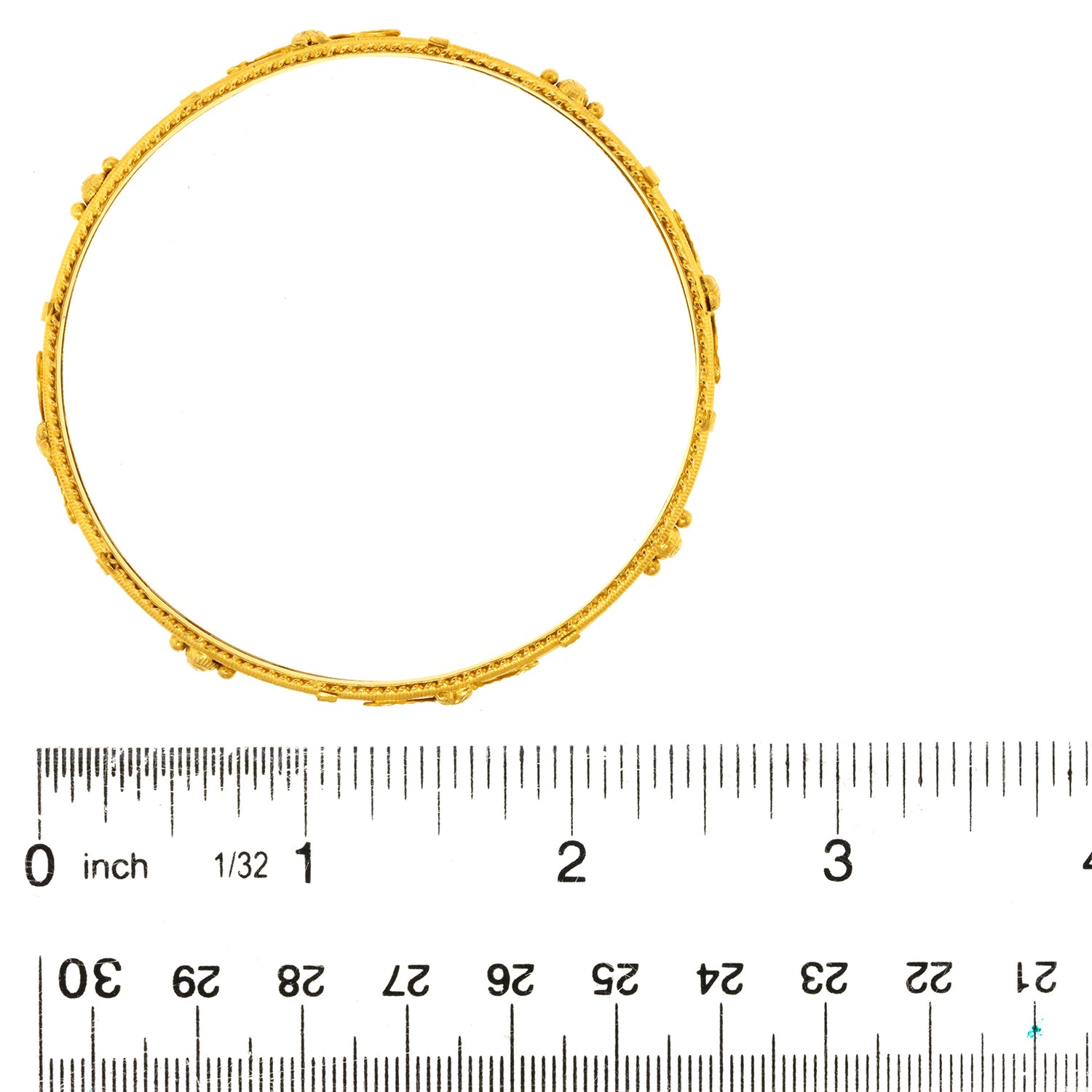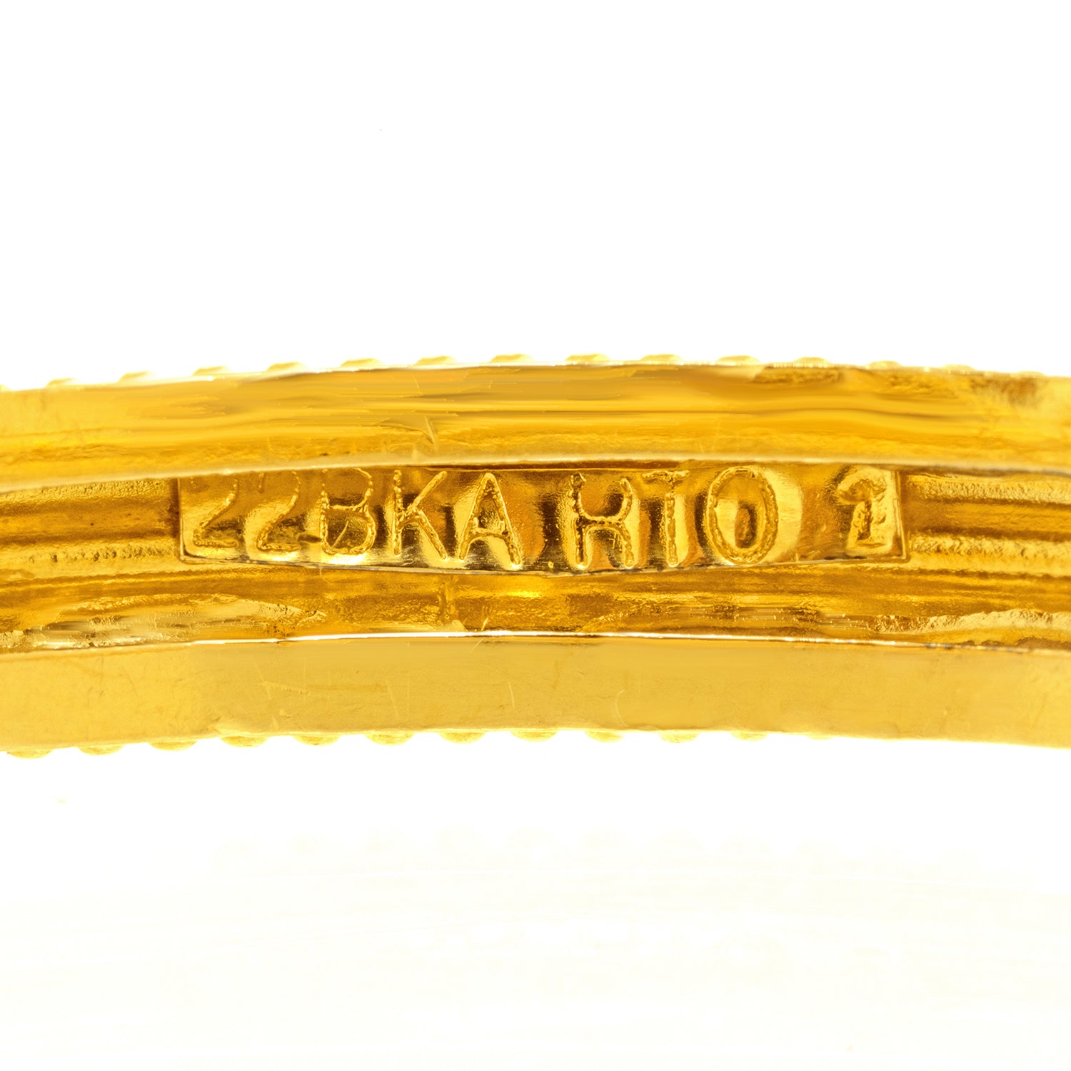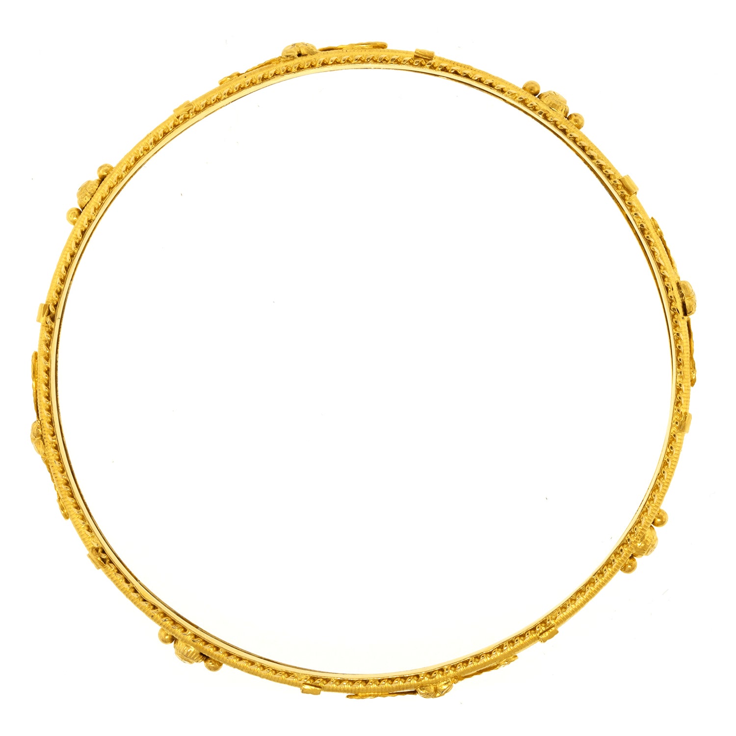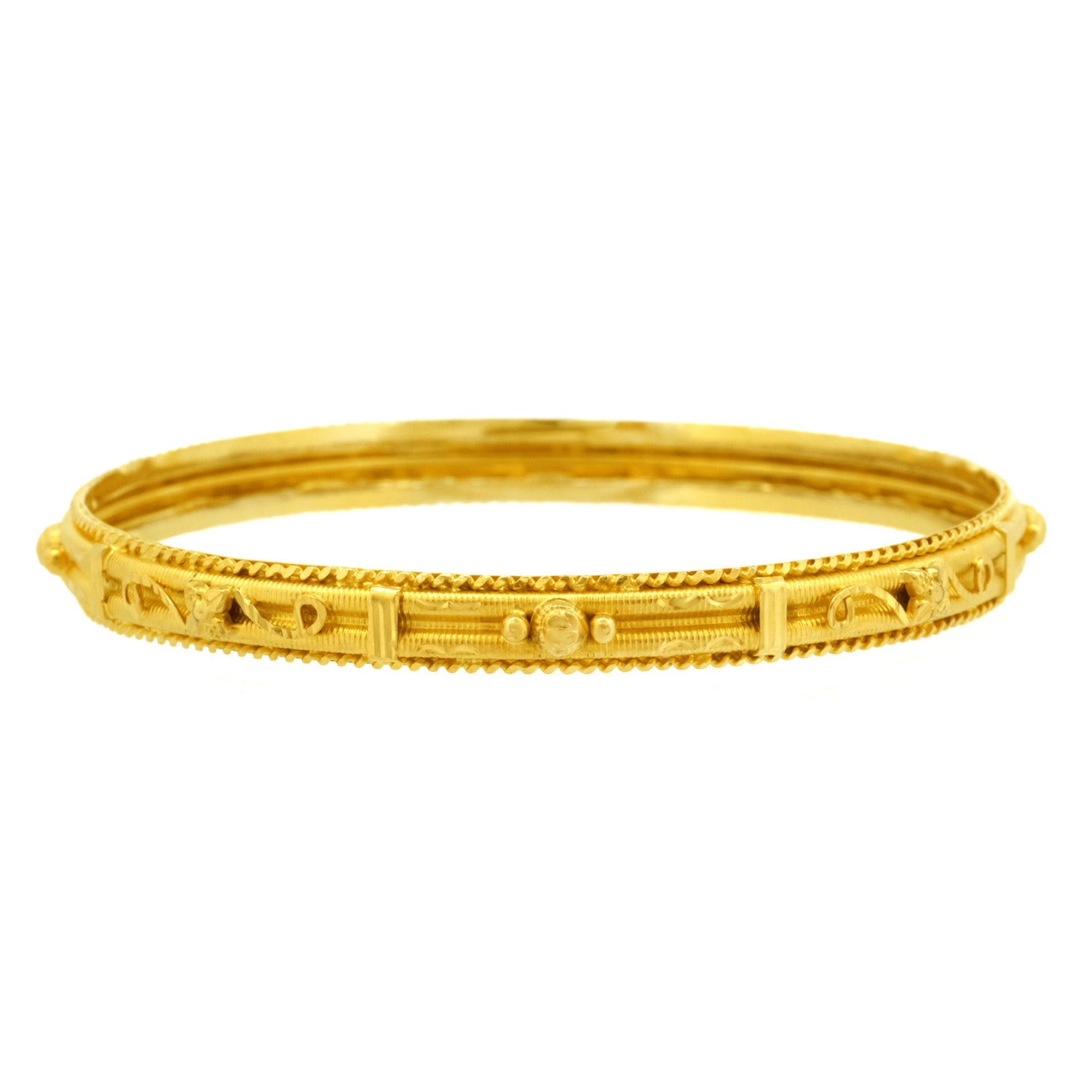 Circa 1950s, 22k, India. This wonderfully detailed, high-karat gold fifties bracelet is hippie chic at its Bohemian best. Fabulous for work or play, it easily dresses up or down. Perfect for stacking, it is well-made, and in excellent condition.