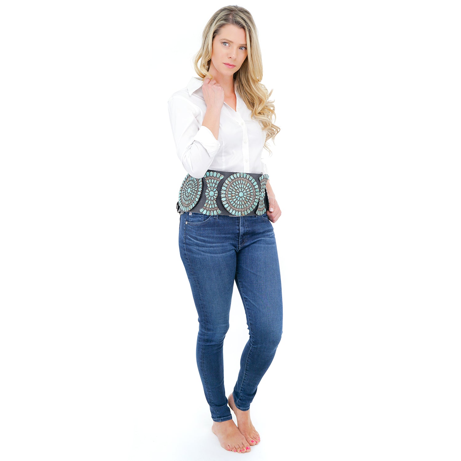 #18972- Jack Weekooty Oversized Turquoise Belt c1960s Zuni