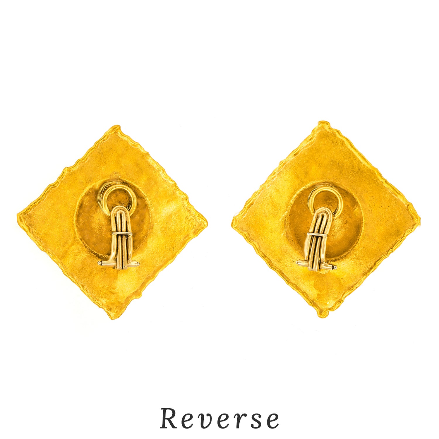 Circa 1970s, 18k, by Jean Mahie. These 22k earrings are a wonderful example of Jean Mahie's work… visually fresh and instantly recognizable. Parisian styled, they are easy to wear and perfect paired with any look. All Mahie pieces were completely handmade and one-of-a-kind. Excellent condition.