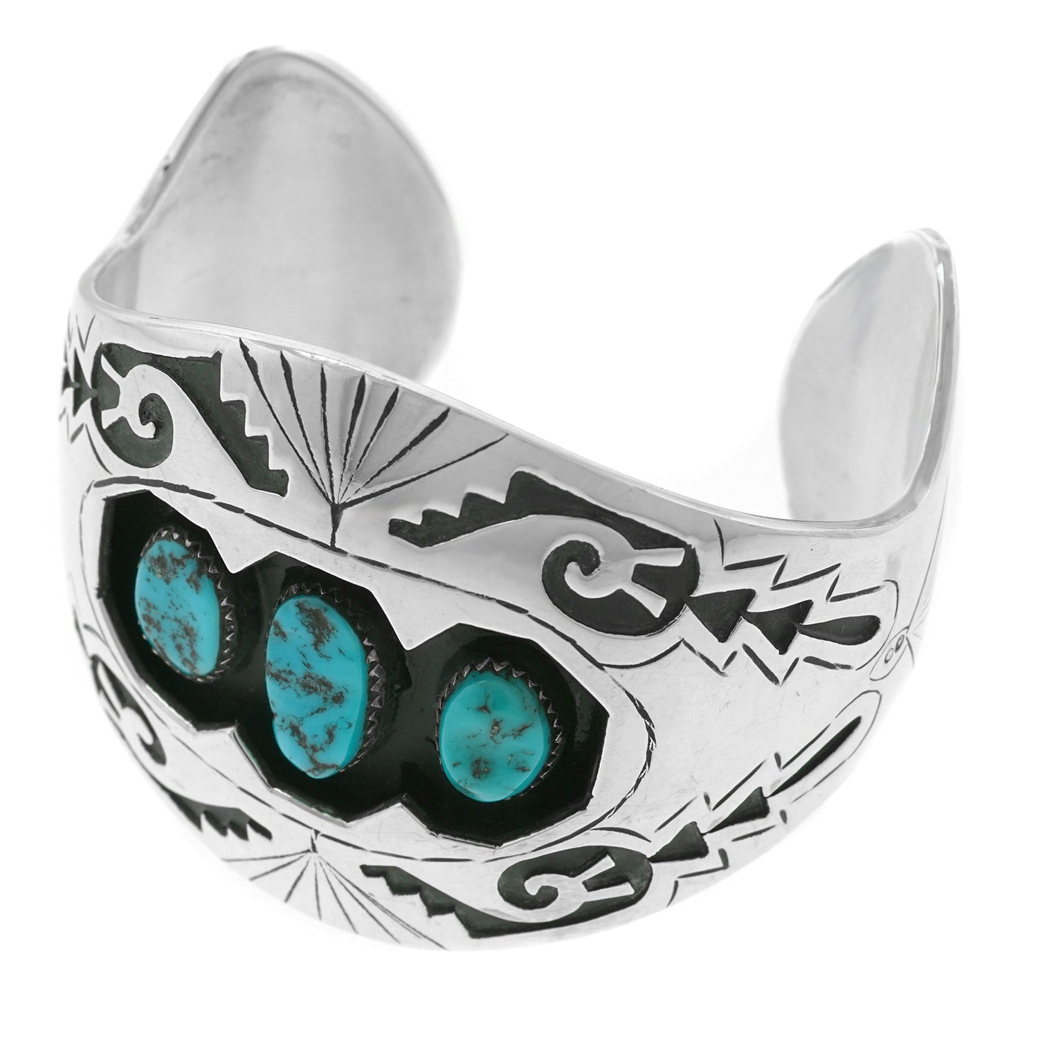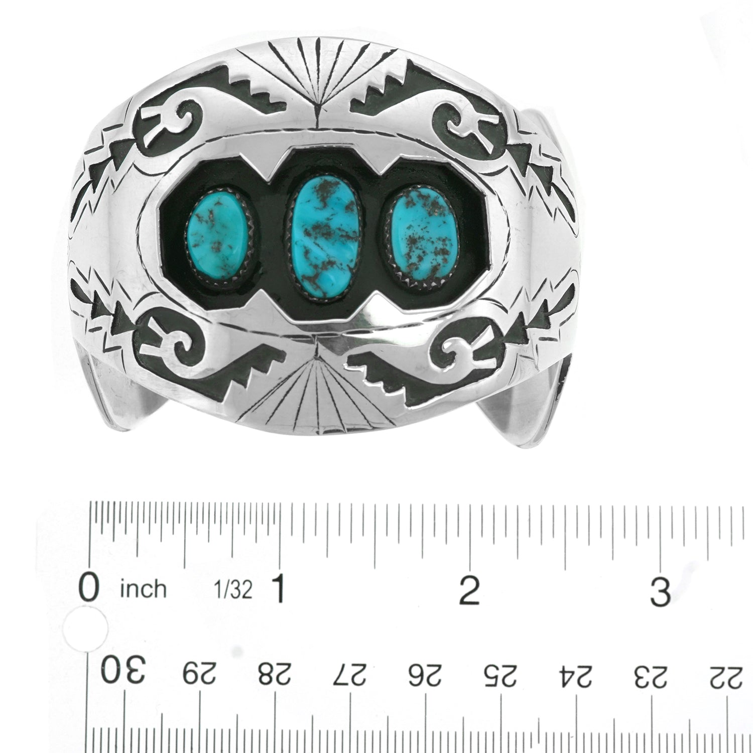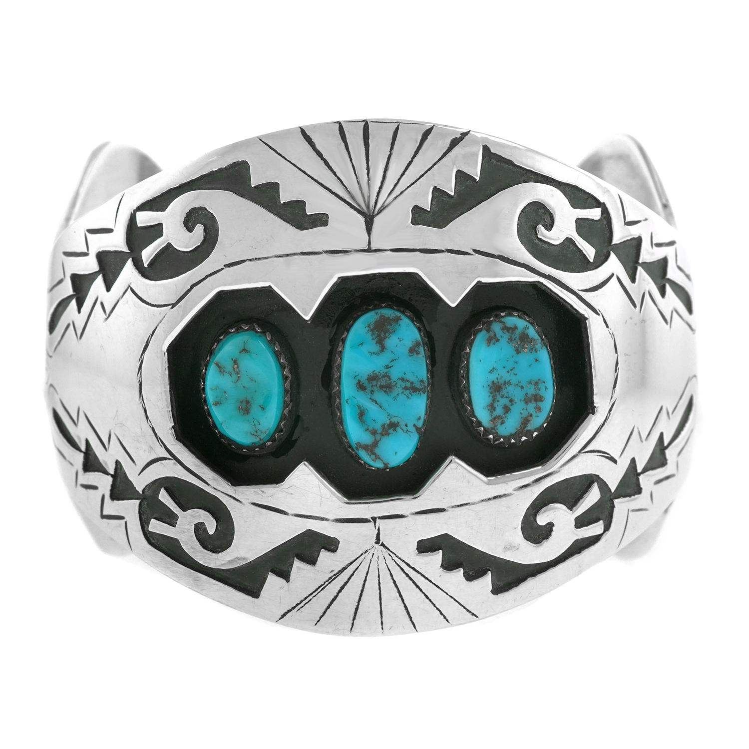 #20343- Kee Family Sterling and Turquoise Cuff c1970-80s Navajo