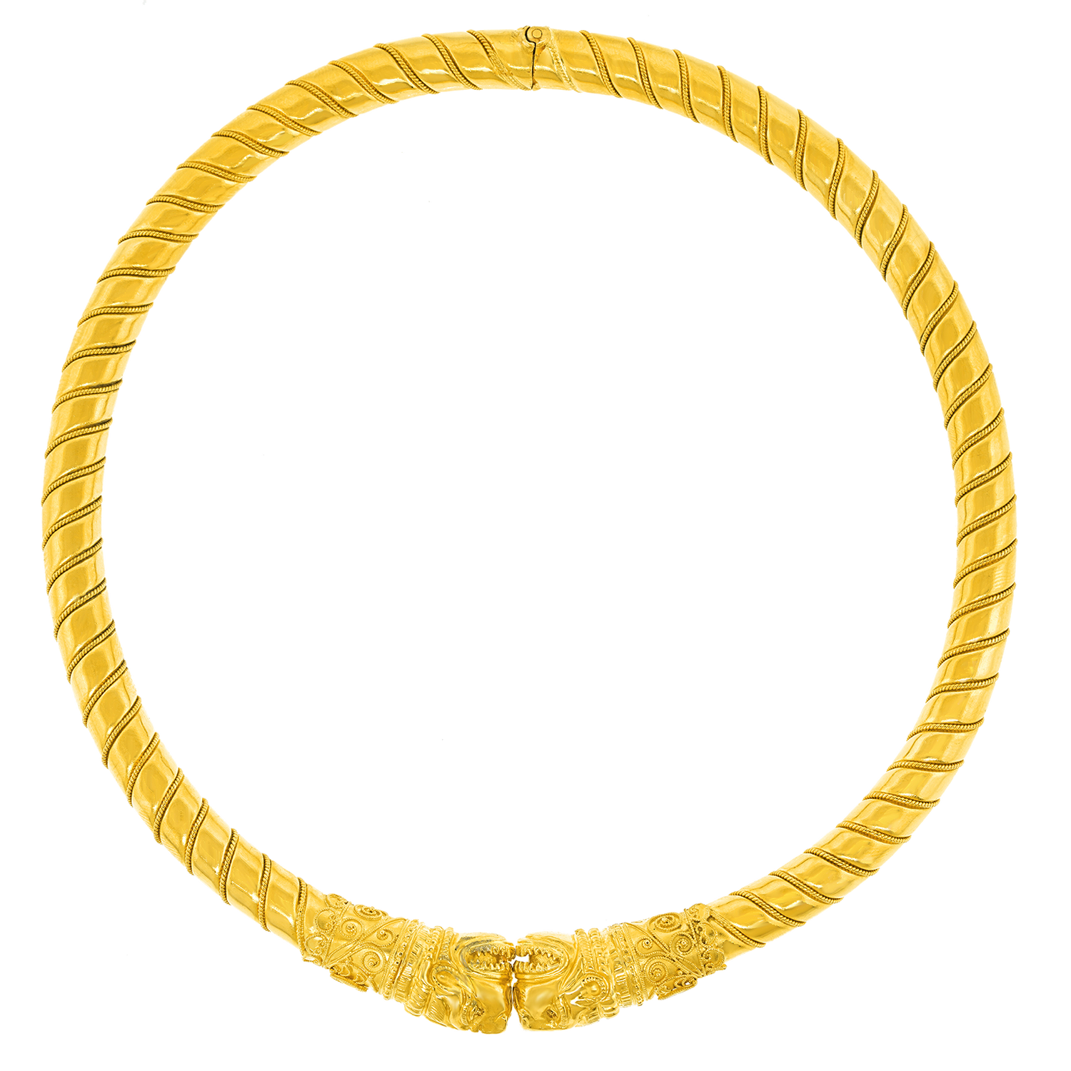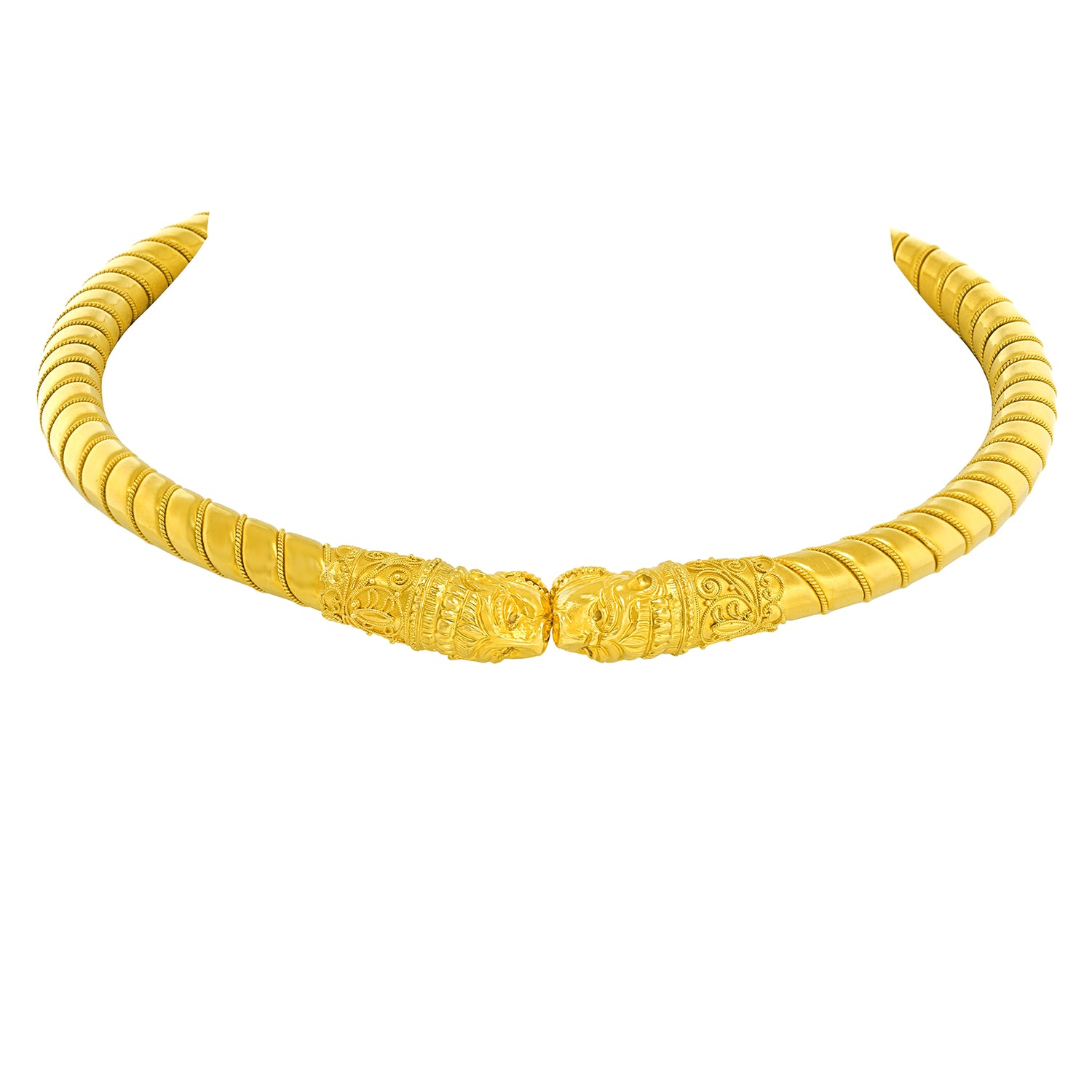 Circa 1960s, 22k, by Ilias Lalaounis, Greece. This High-karat gold necklace is the perfect everyday accessory. The Mycenaean lion's head motif is central to Lalaounis' most famous archeological aesthetic designs. Beautifully made, it is in excellent condition.