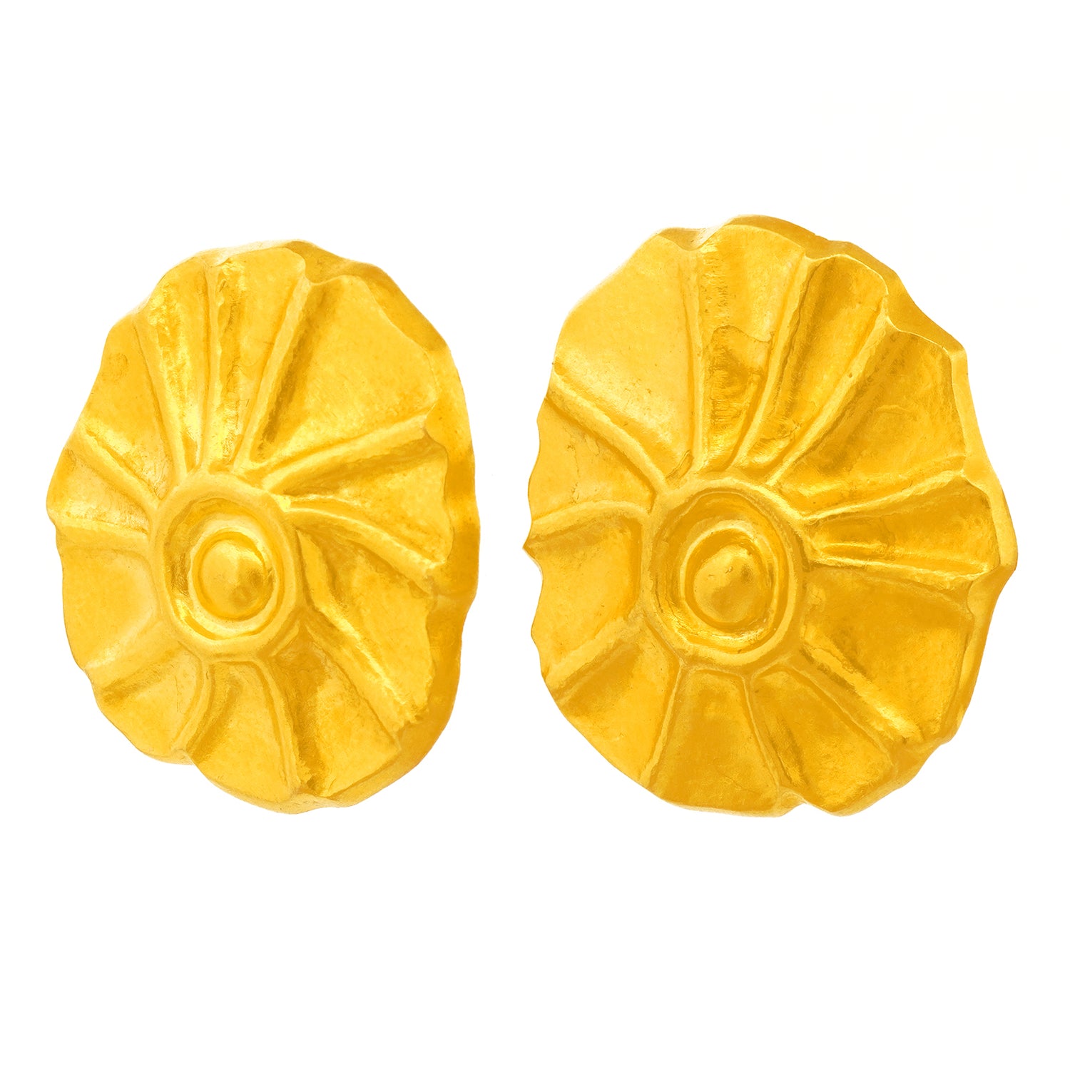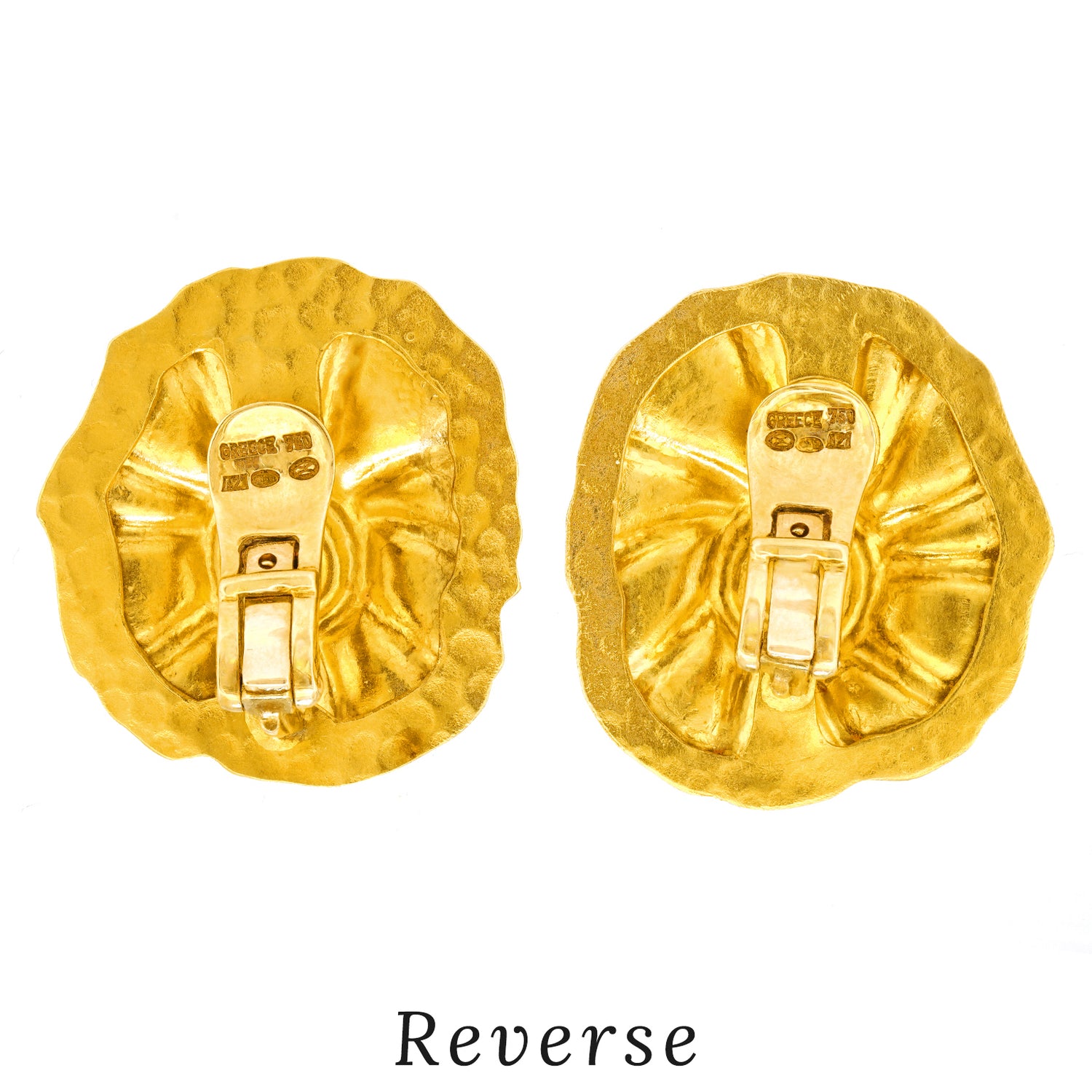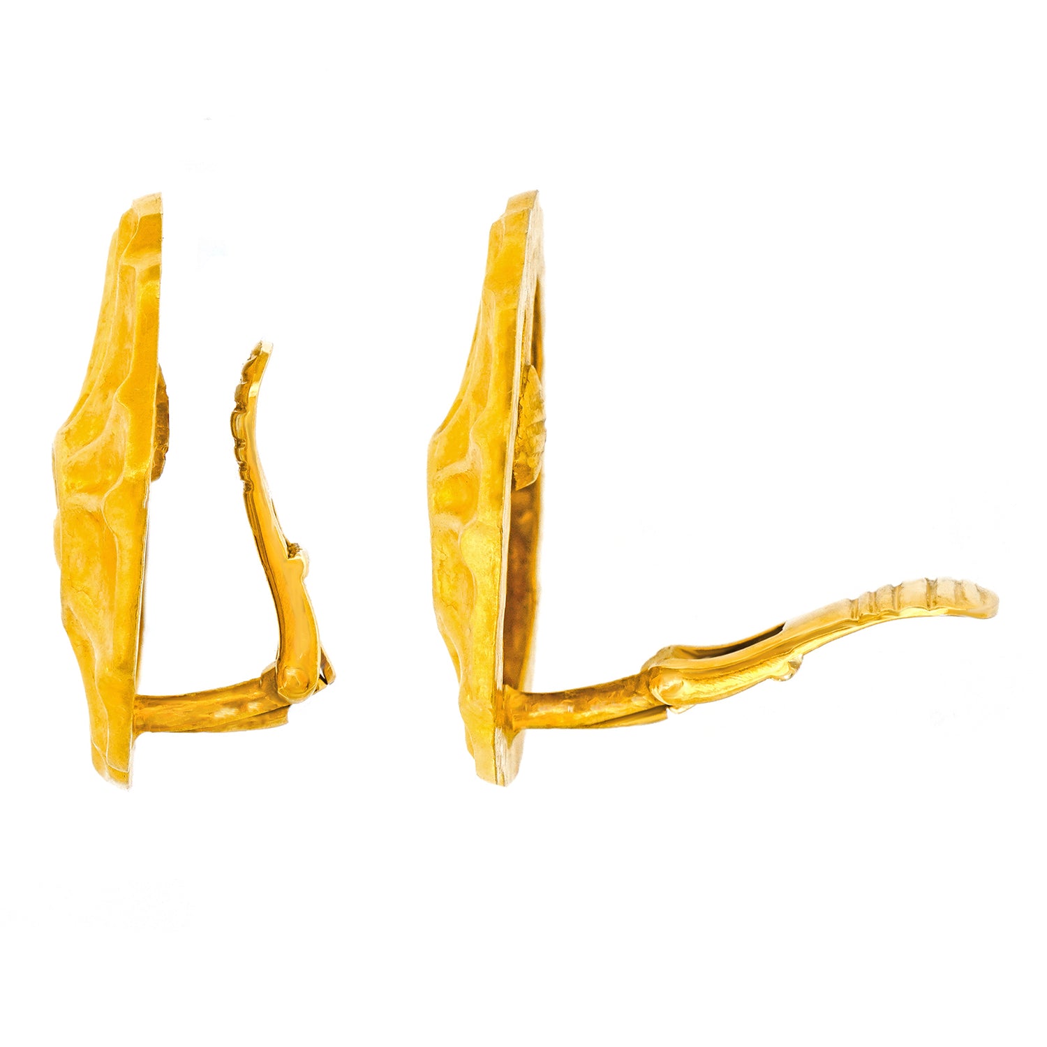 Noted; They come equipped with the original clips. Also, although they are marked 18k, as is common for Lalaounis jewelry, they are actually 22k.