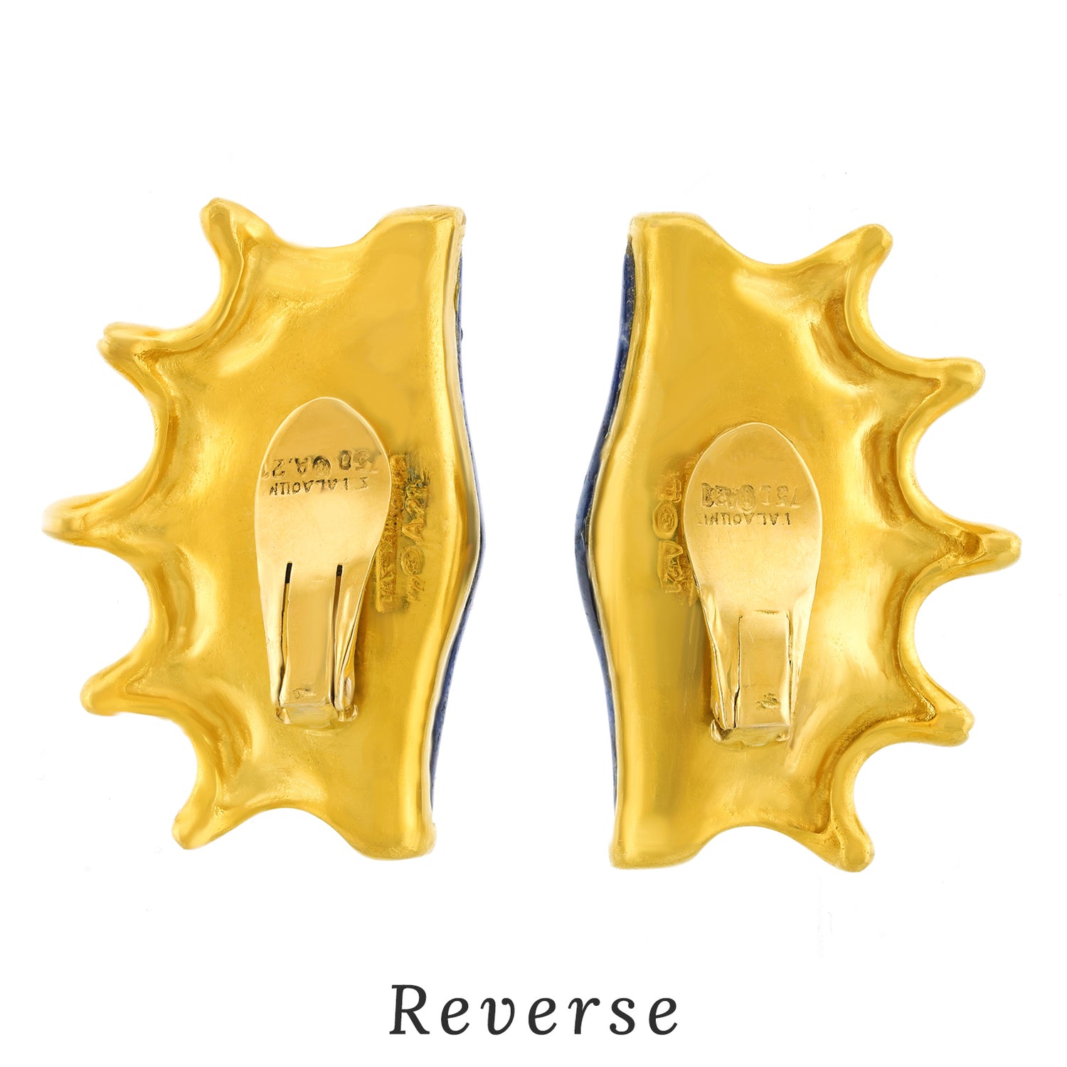 Circa 1960s, 22k, by Ilias Lalaounis, Greece. These high-karat gold earrings have that cool ancient world vibe no one does better than Ilias Lalaounis. From ancient Greece to the catwalks of Fashion Week, he saw it all as one world. Inspired by a specific marble shell sculpture from 400 BCE they are a visual feast. Excellent condition. Noted; these earrings are currently clips.