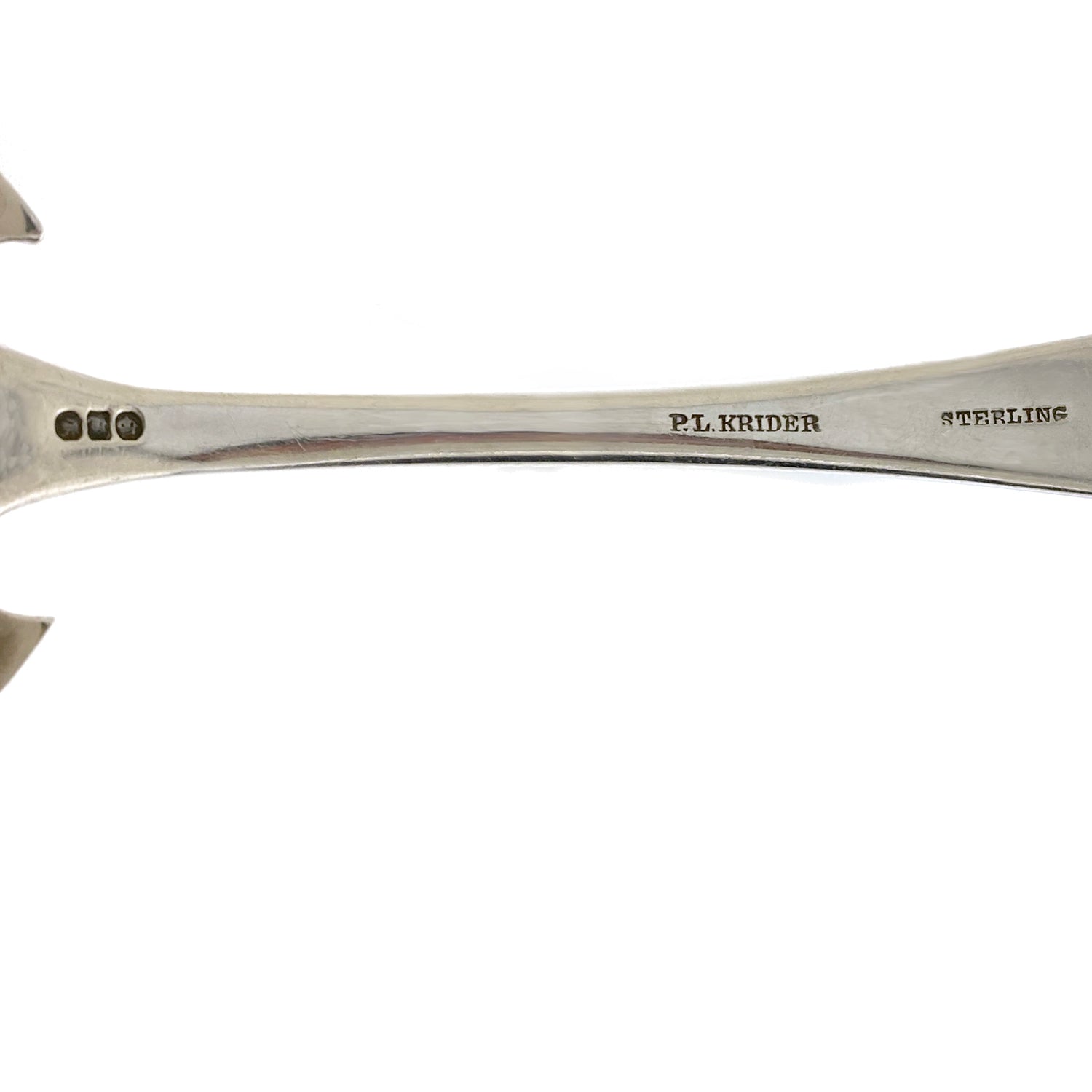 PL Krider for Peter L. Krider, Sterling, and Prestige marks Lion Rampant for sterling, date letter R for 1859-60, and Crown assay mark for Sheffield