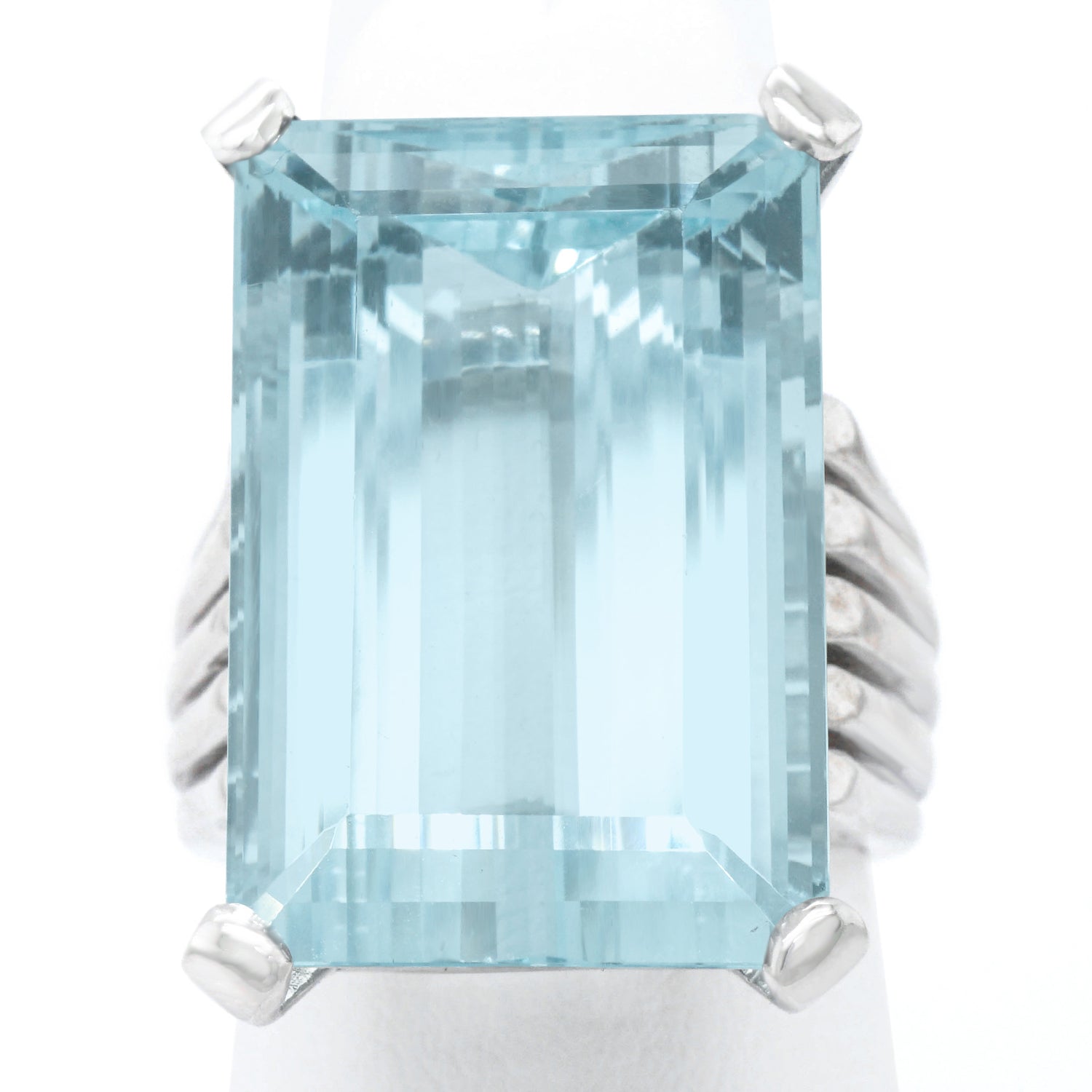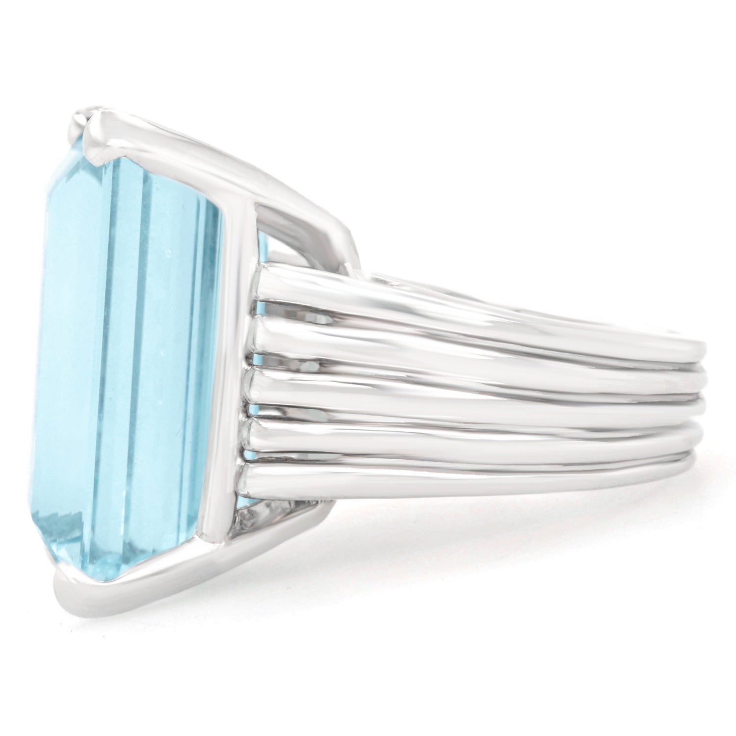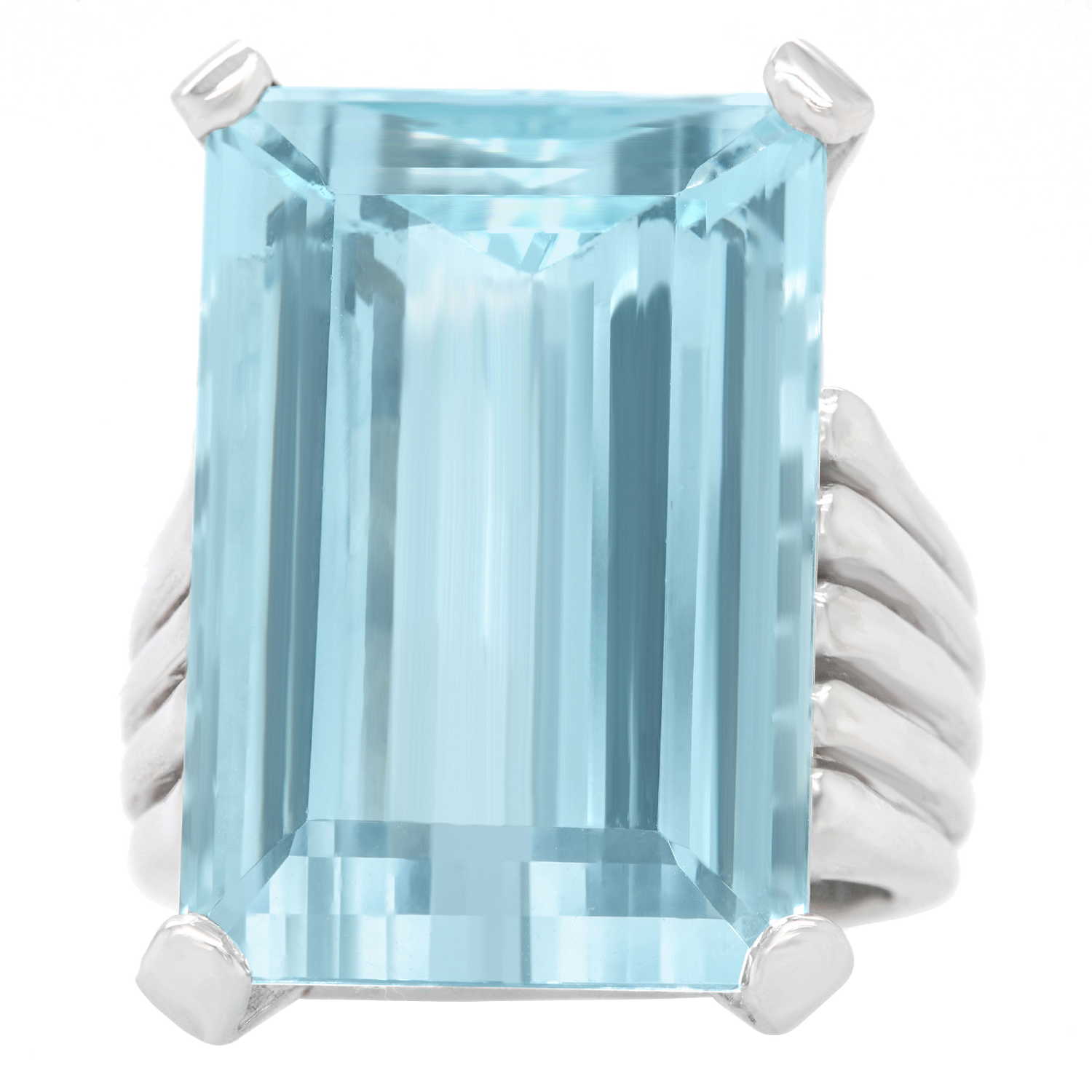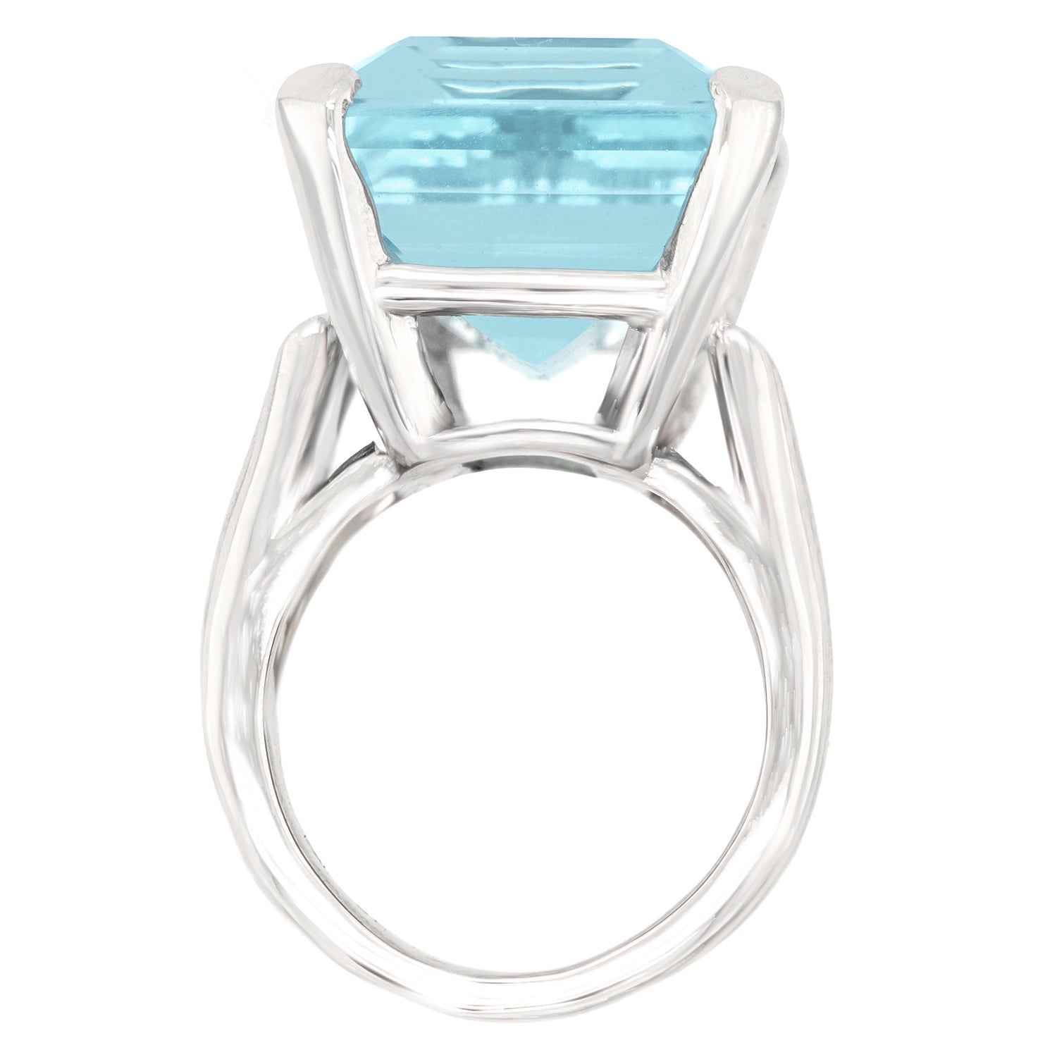 Circa 1950s, 18k, by Lawrence Jeffrey, American. Set with a luminous 30.0-carat Aquamarine, this ring brilliantly illustrates the stylish confluence of Art Deco and modernism. From cocktails poolside to gowns at the gala this ring has a proportion that adds a dynamic appearance to any moment of fashion. Meticulously made, it is in excellent condition.