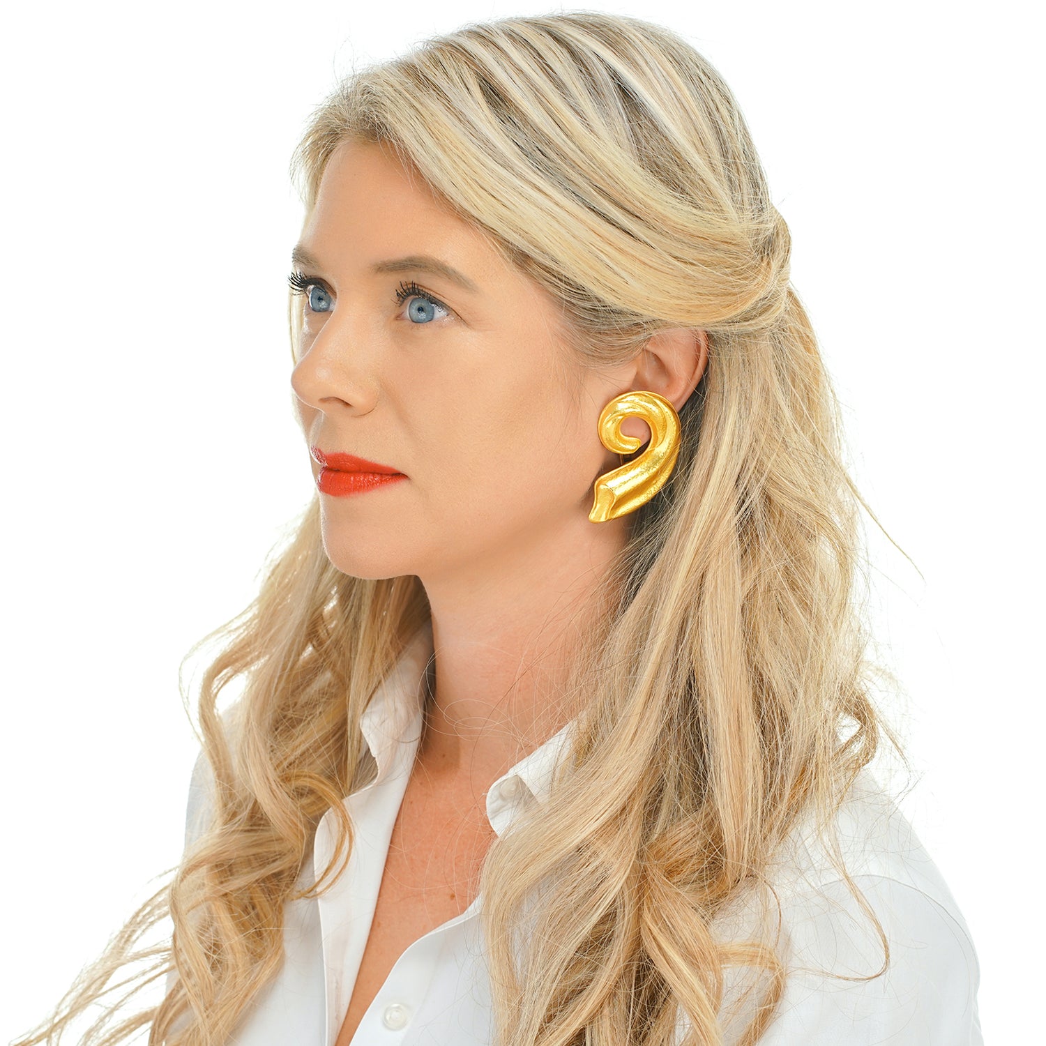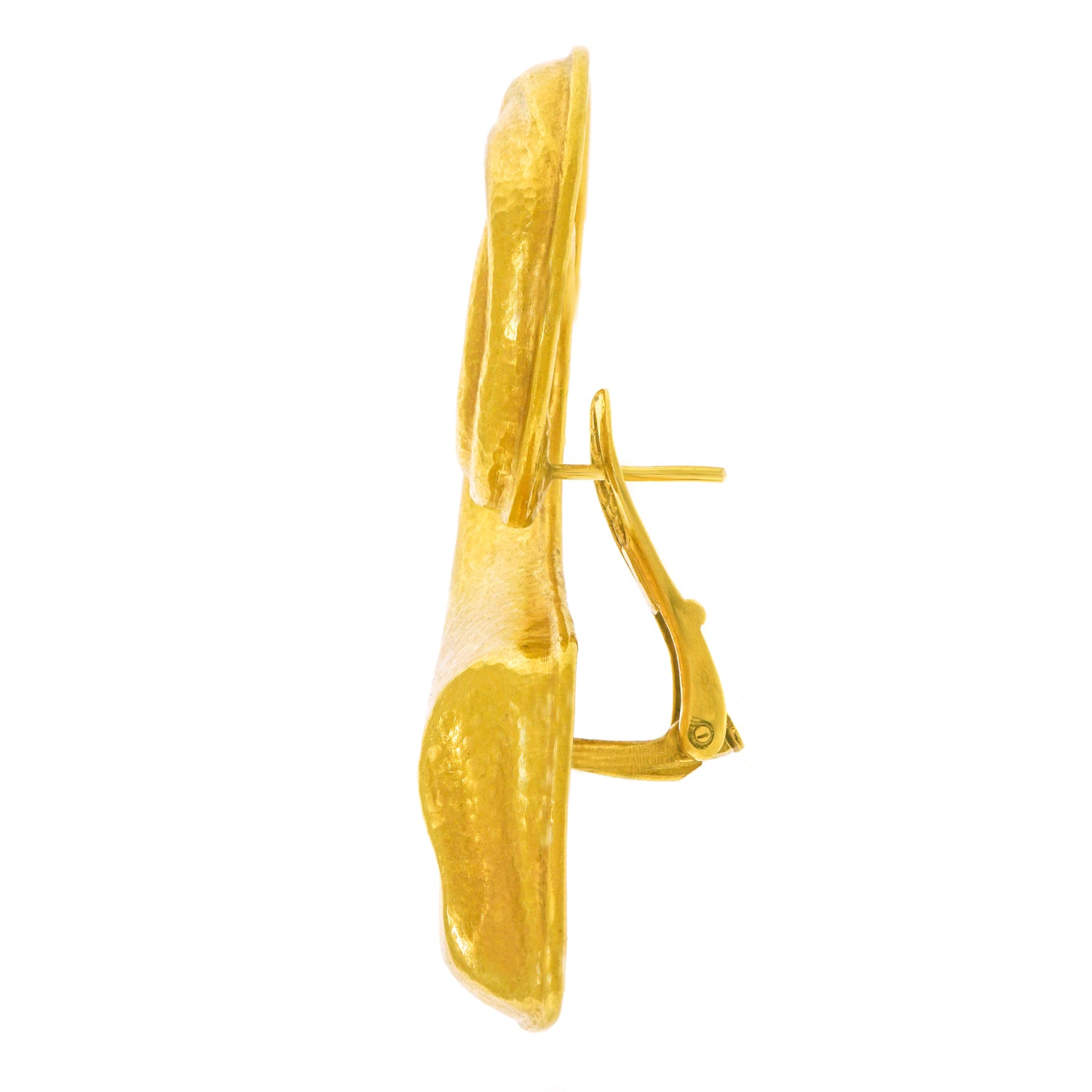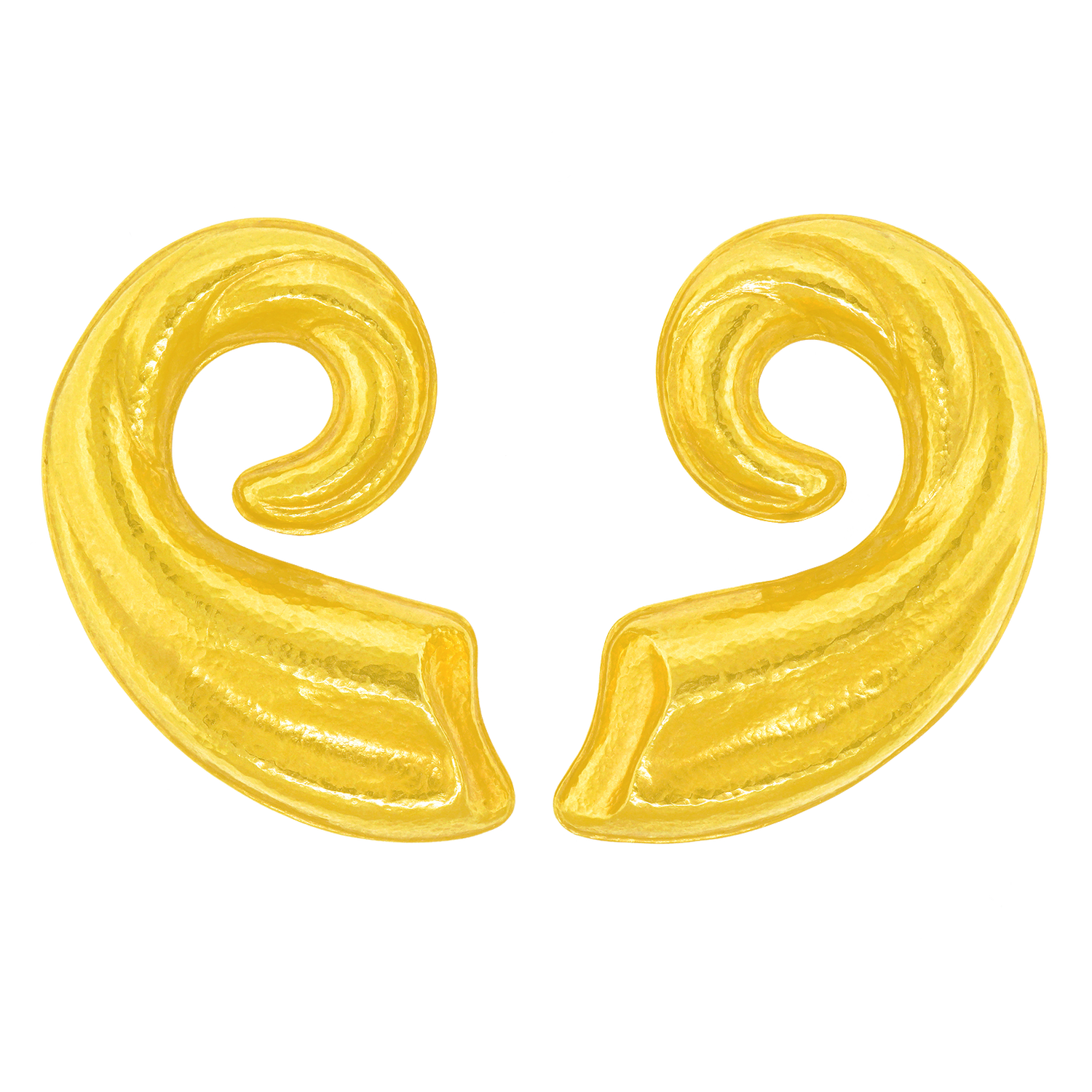 Circa 1970s, 18k, by Lalaounis, Greece. Simple is elegant. Primitive is sophisticated. From Aboriginal petroglyphs to modern art, Paleolithic spirals, one of Ilias Lalaounis' favorite motifs, are found in cultures the world over. These earrings are chic, well-made larger examples of his work. Excellent condition.