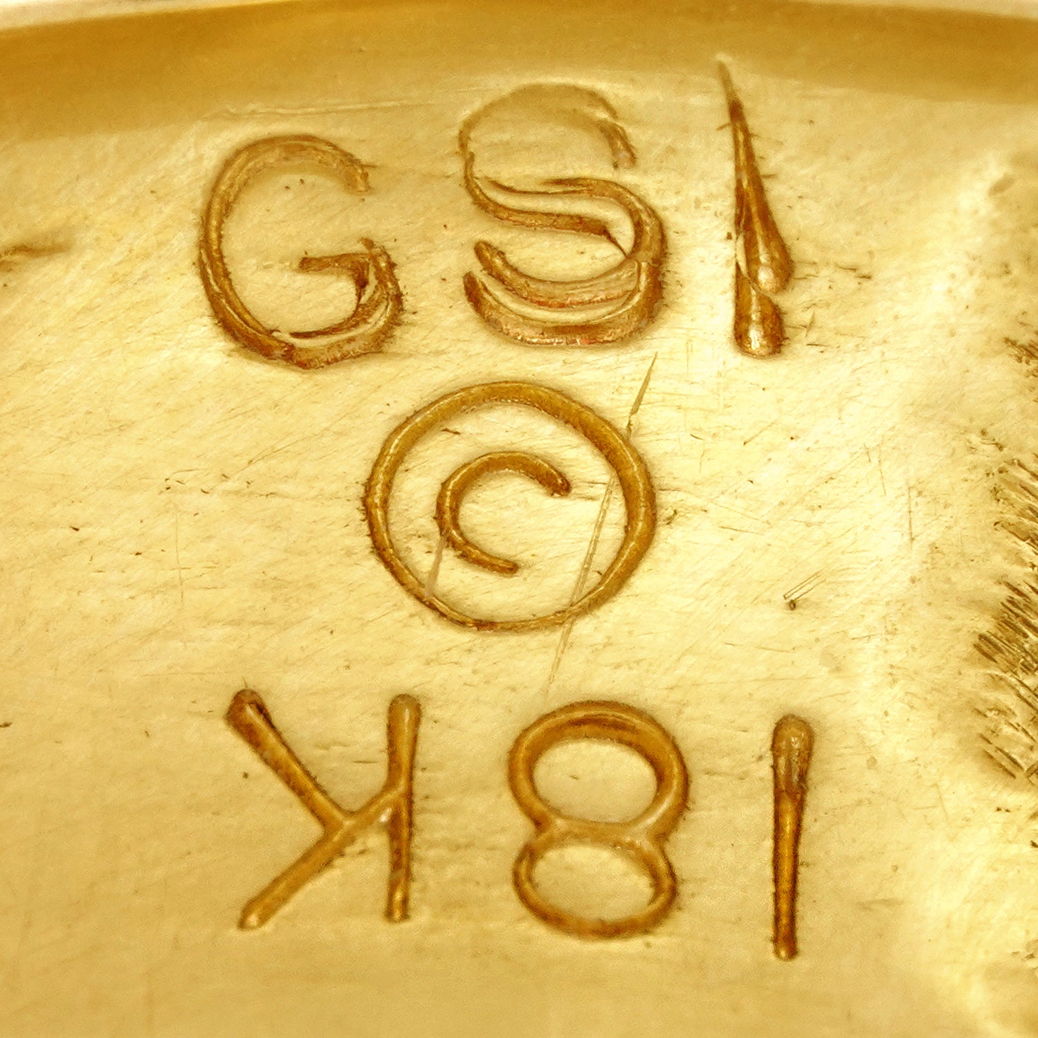 Hallmarks: 18k, copyright symbol, and GSI