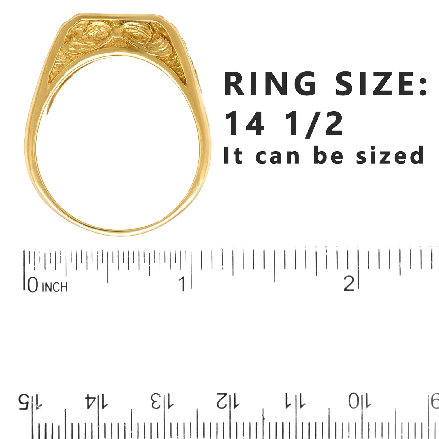 Ring Size: 14 1/2, it can be sized.
