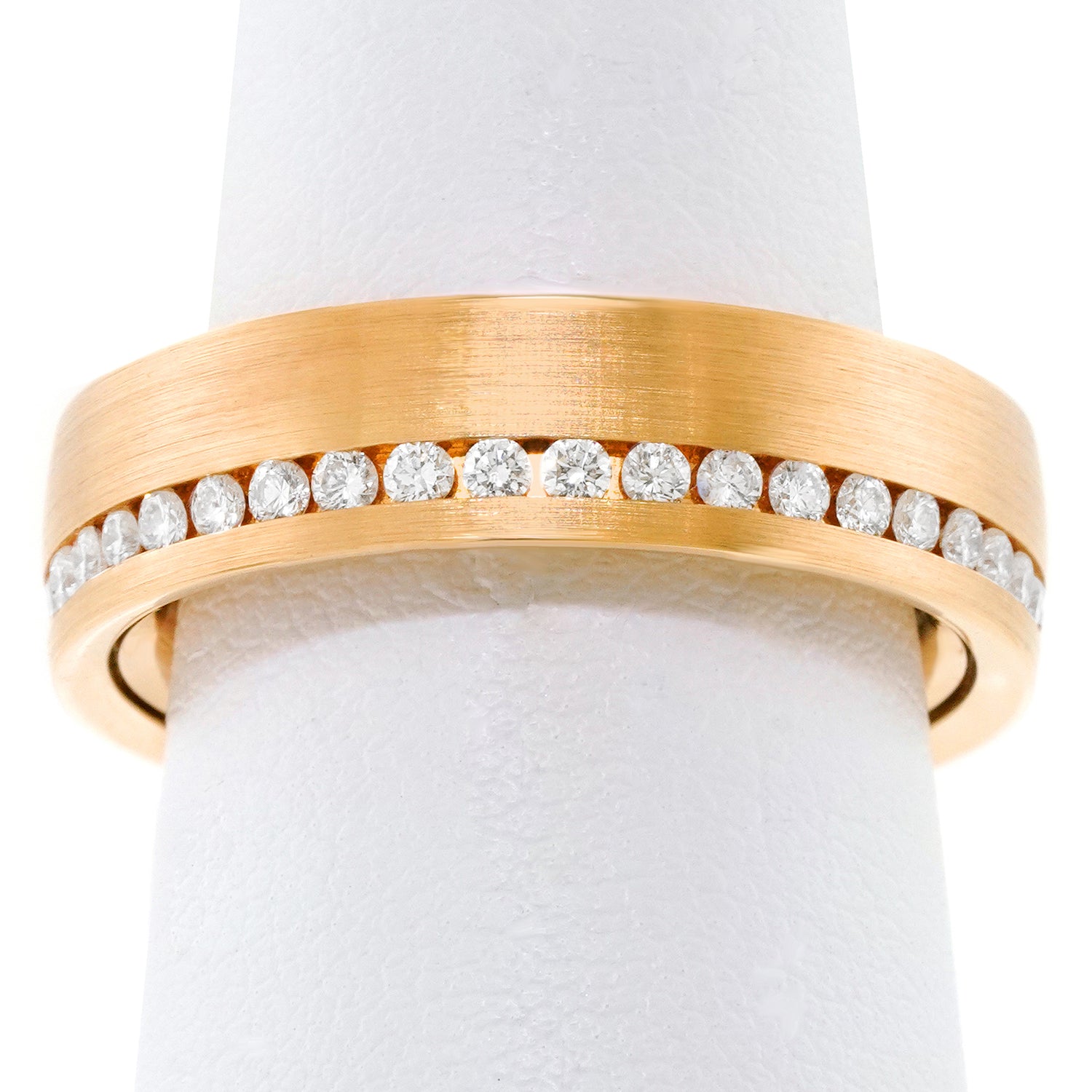 Circa 2000s, 18k, by Meister, Switzerland. With its delightful spinning feature, this chic ring is an incognito fidget ring. Heavy and well-made in 18k yellow gold, it is undeniably chic and exceedingly comfortable. Additionally, it is set with .60 carats of brilliant white diamonds (G color and VS clarity). Excellent condition.