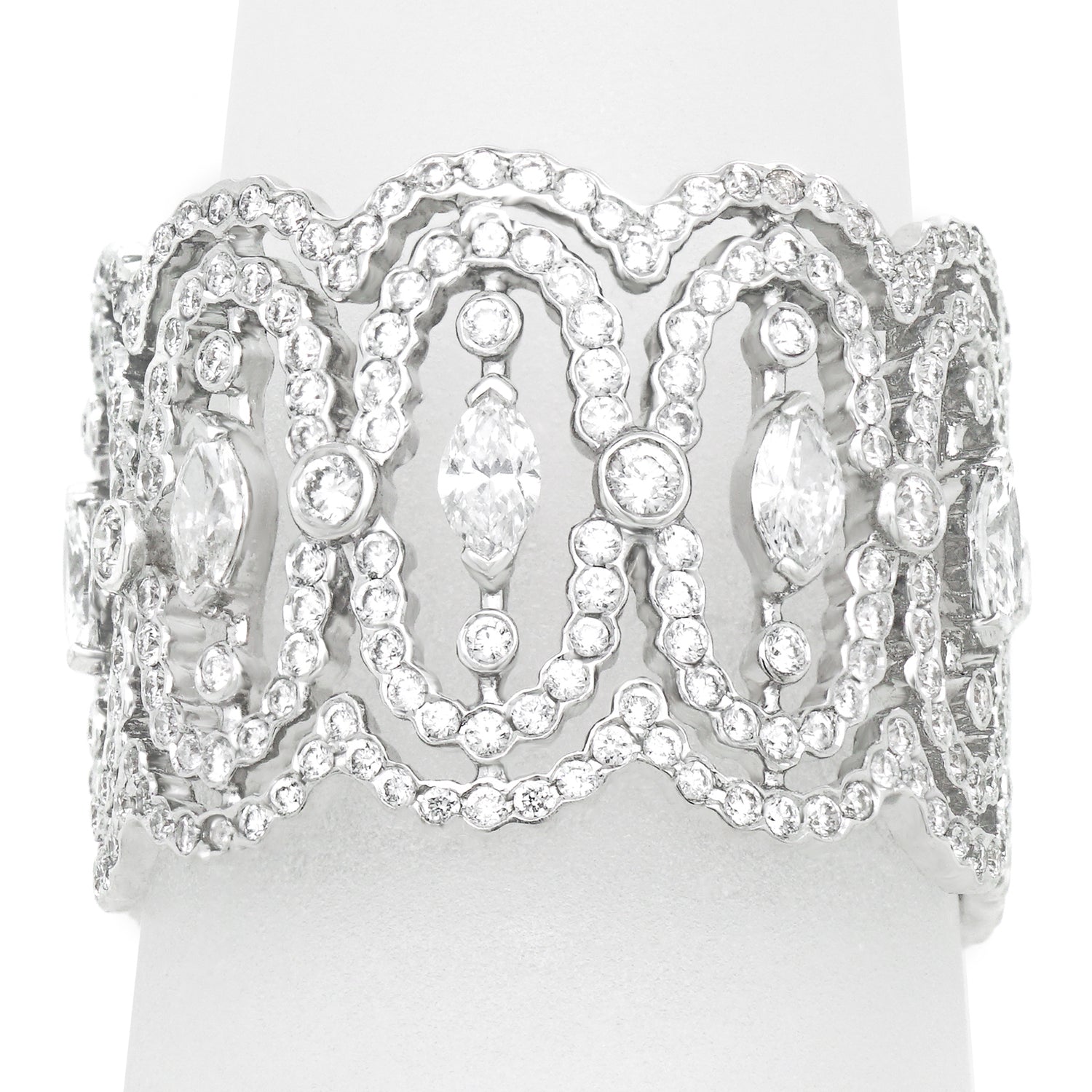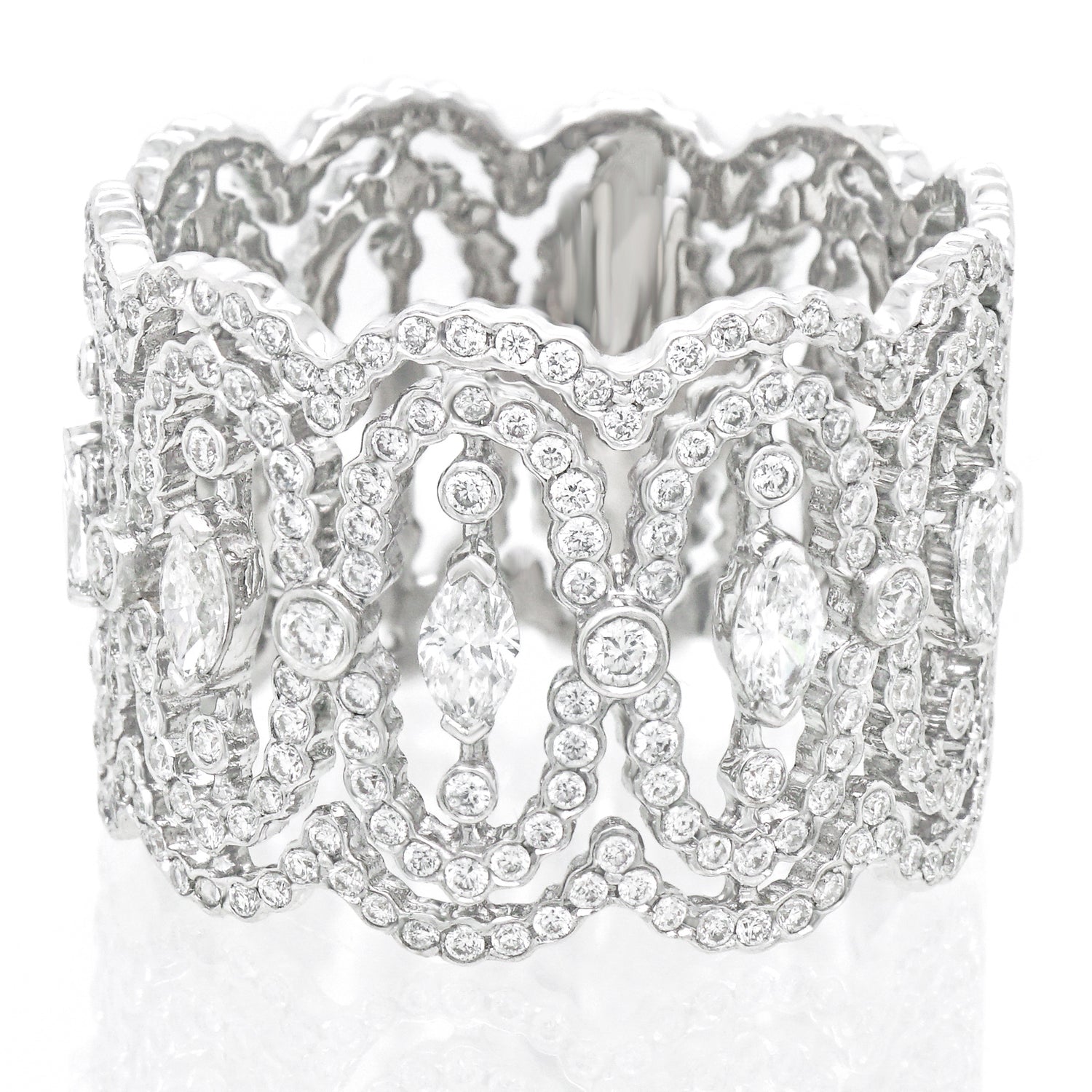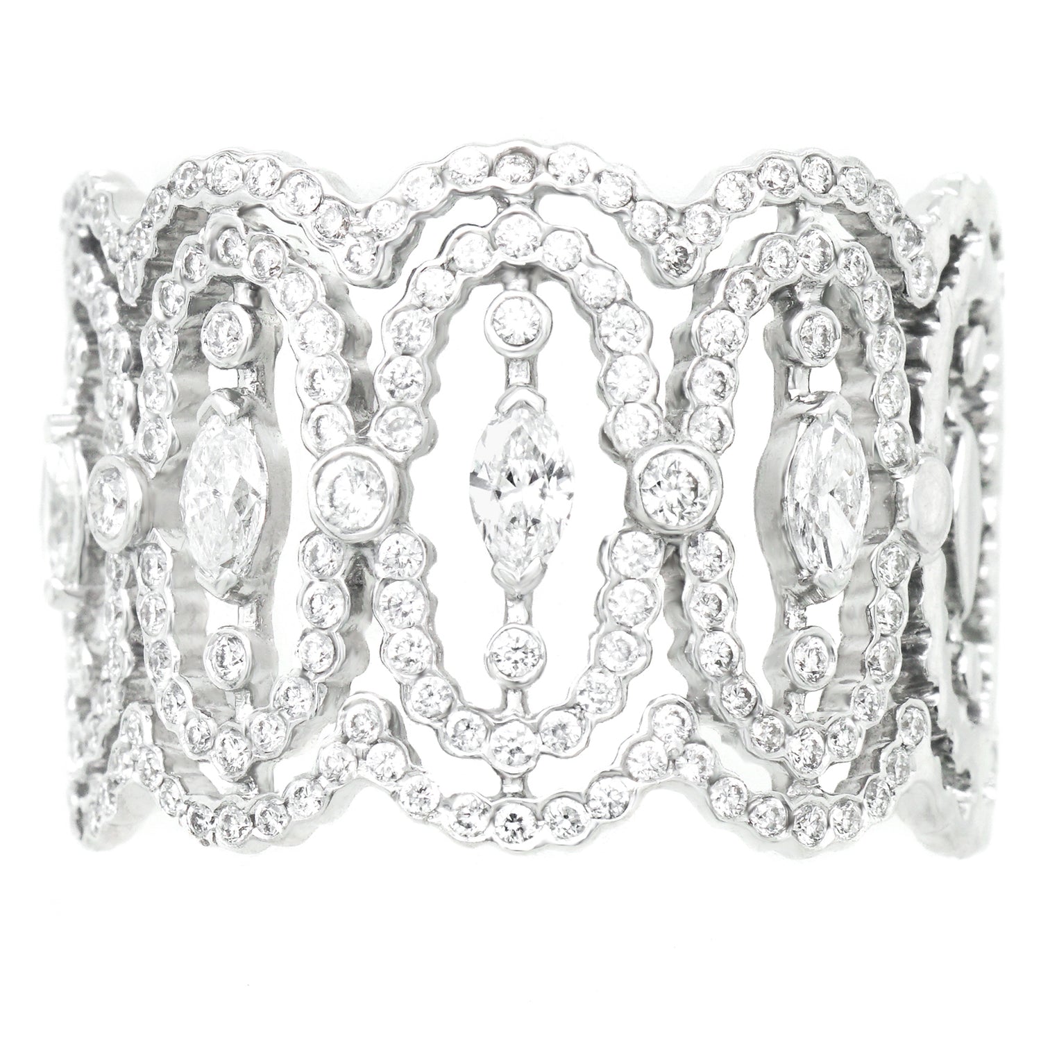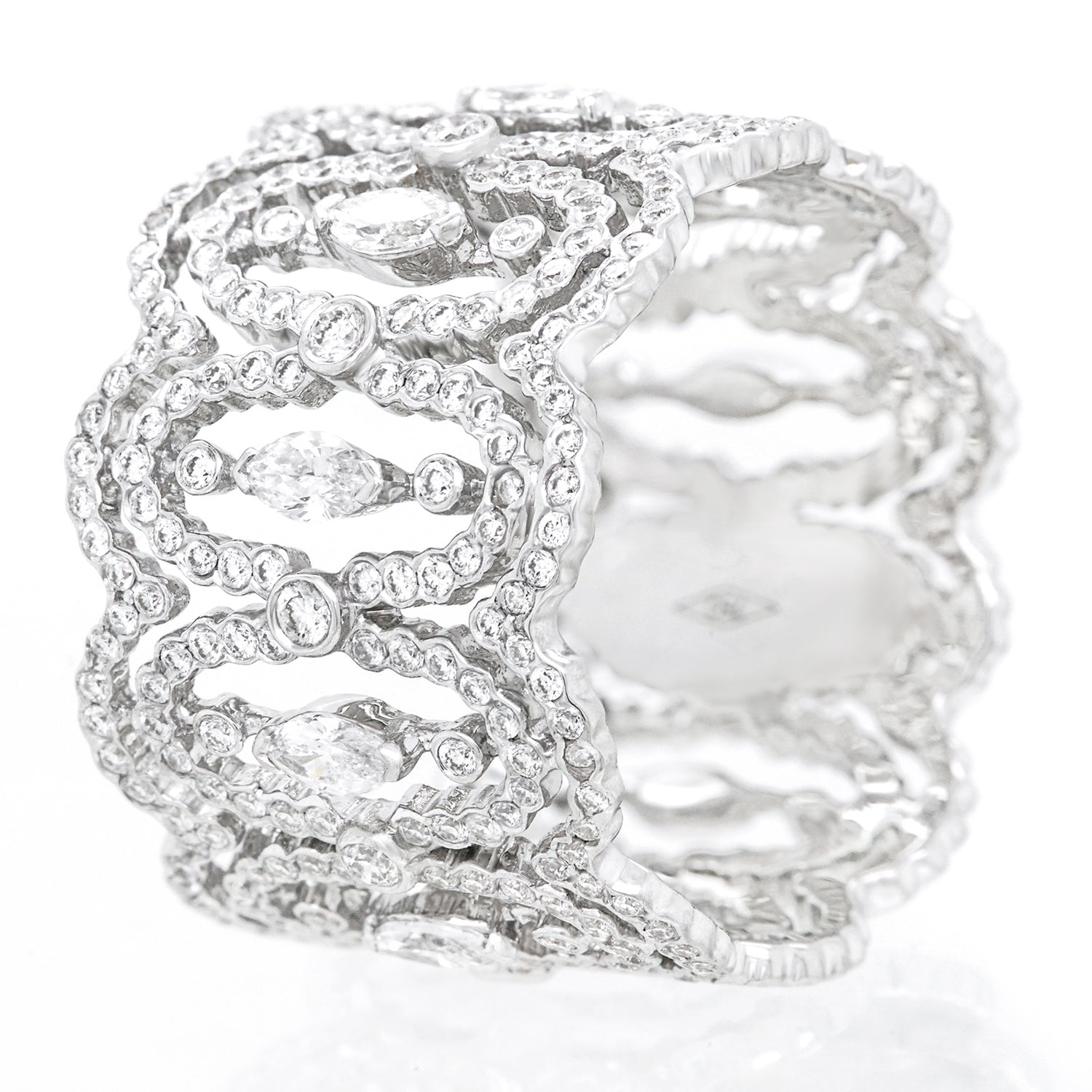 Remarks from Lawrence Jeffrey: "Delicately composed of swirling eddies of diamonds, this ring appears to have been made by faeries.