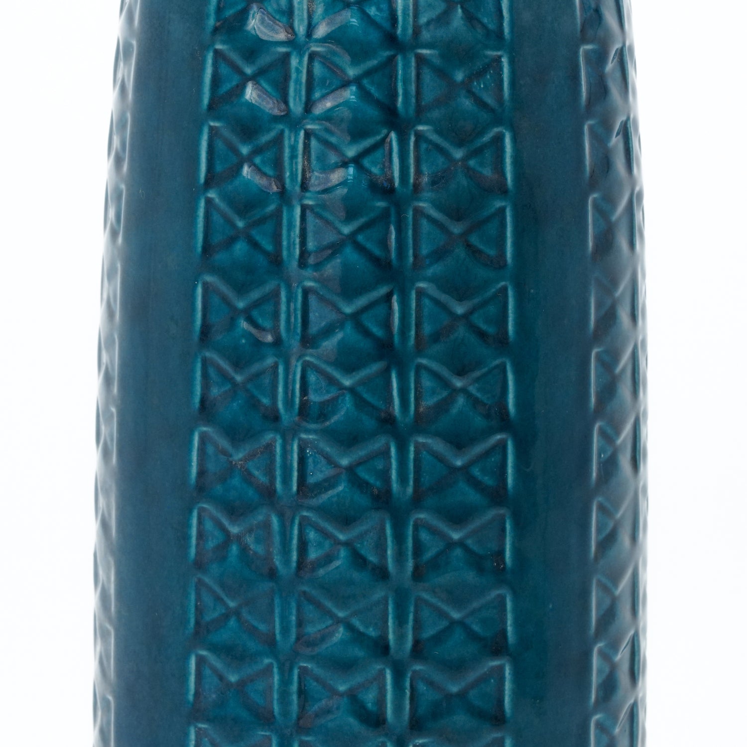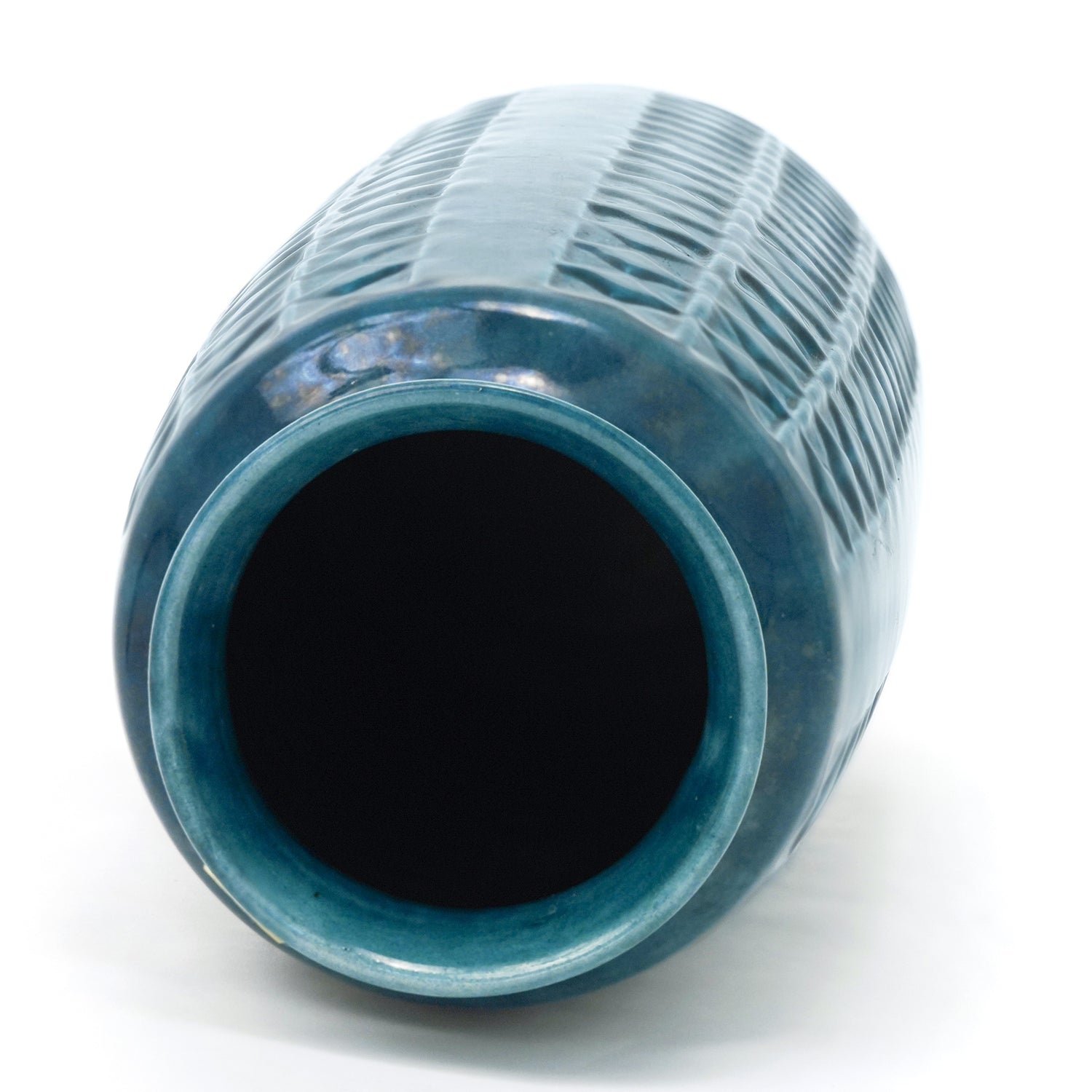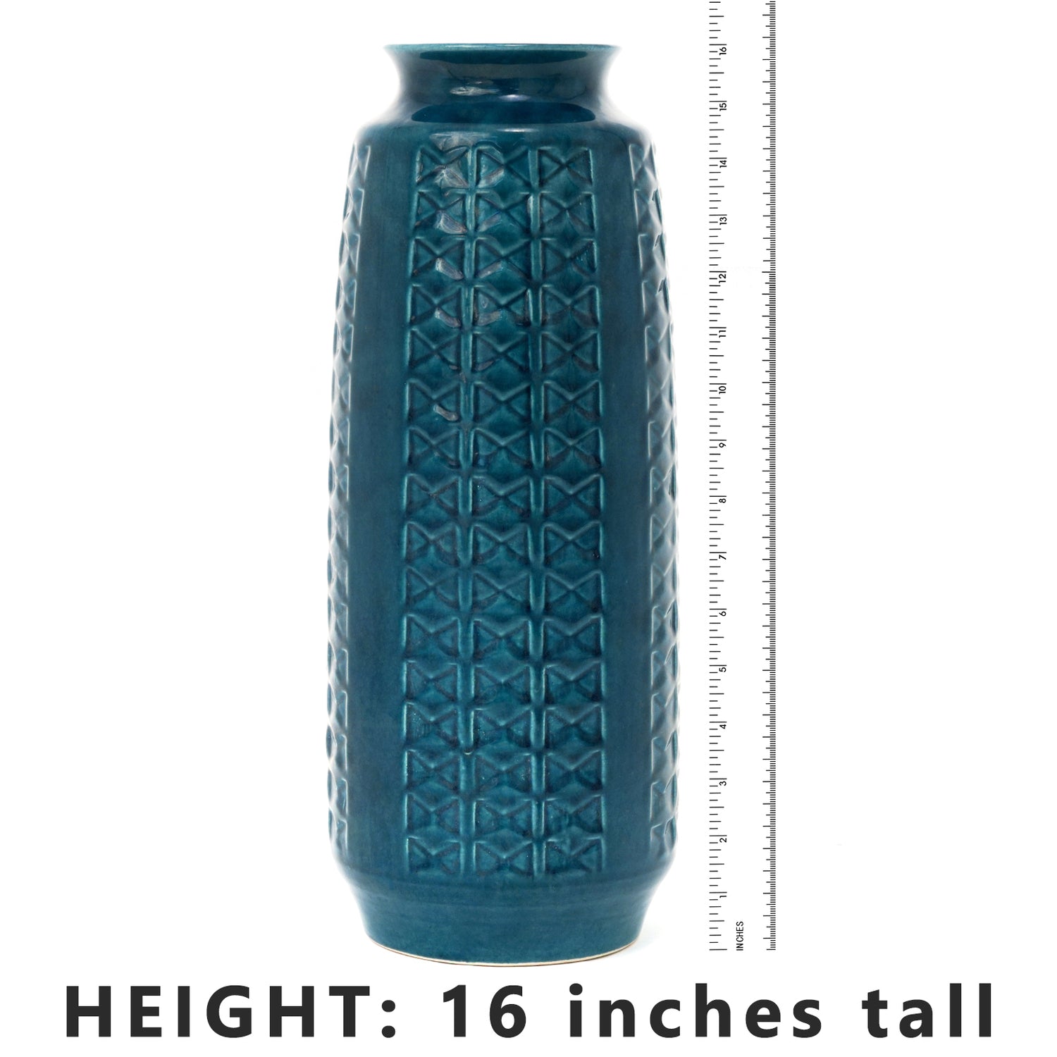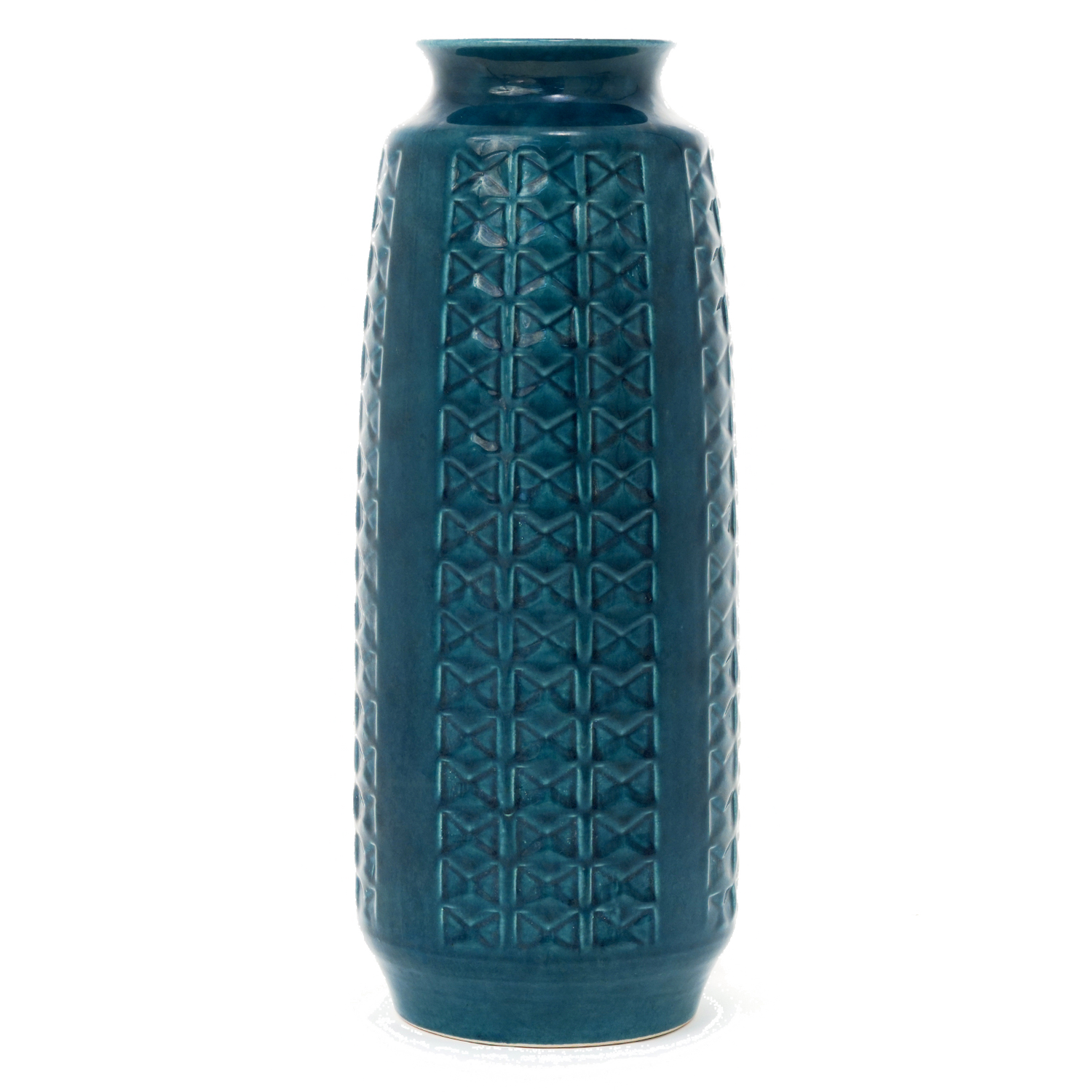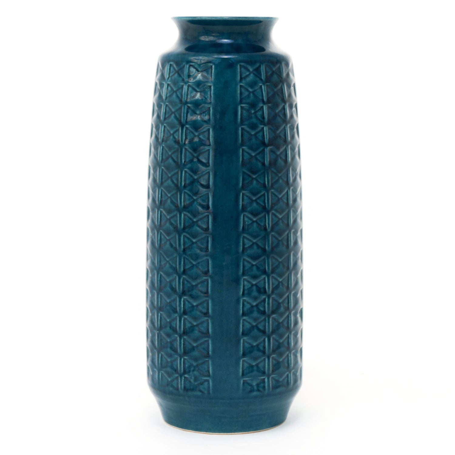 Circa 1950s, by Bay, West Germany. Famous for their innovative designs, Bay of German created perfect accessories for mid-mod interiors. This one is fabulous … 16 inches tall, spectacular pattern, and unusual monochrome glaze. Great design, great color, excellent condition.