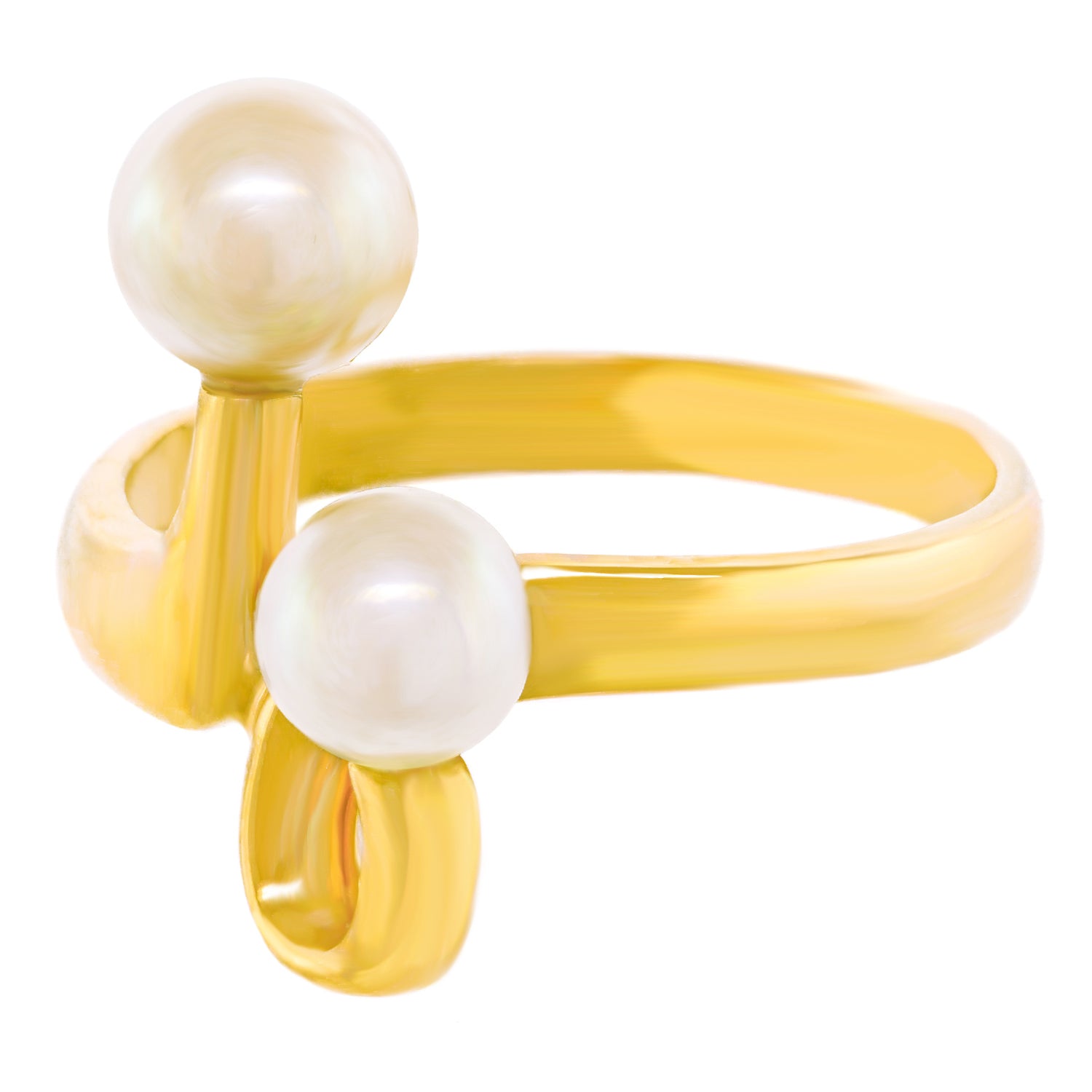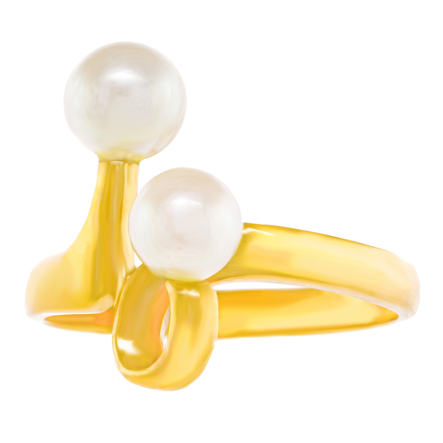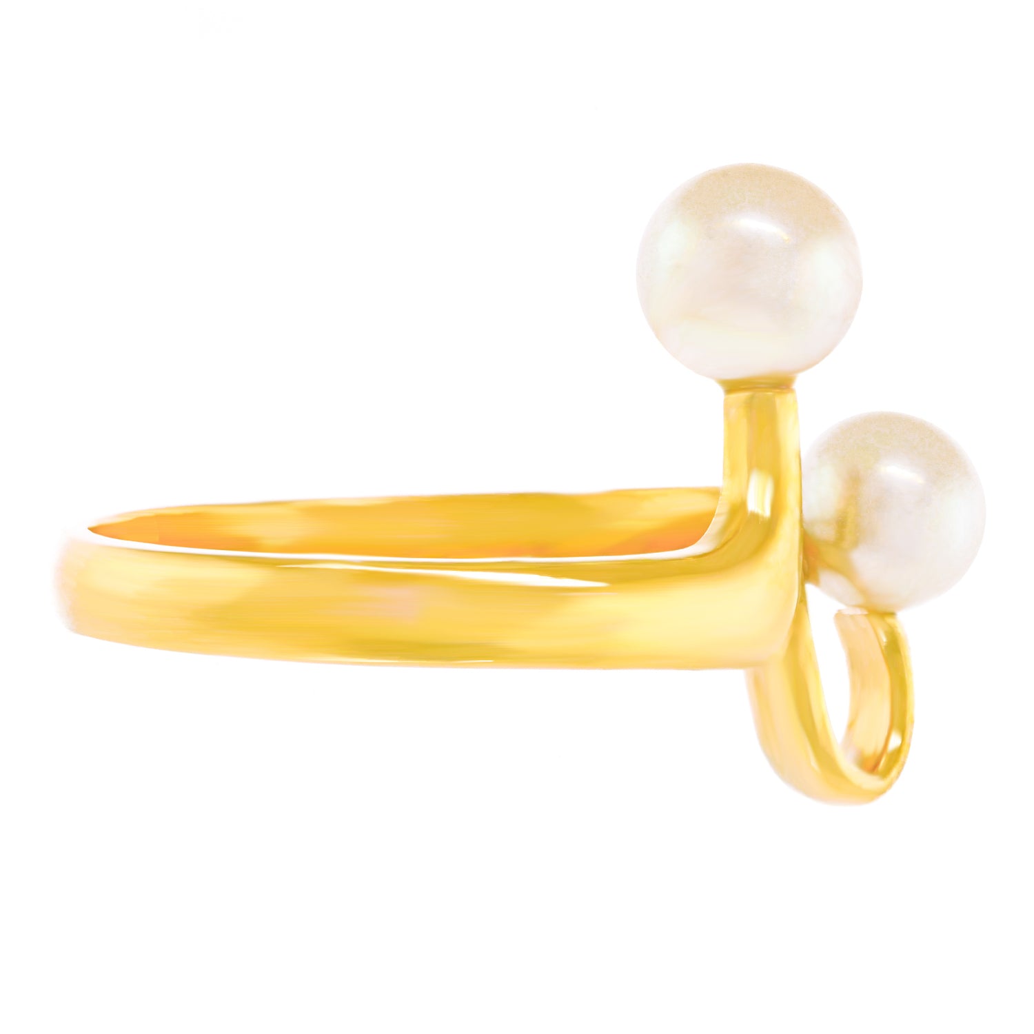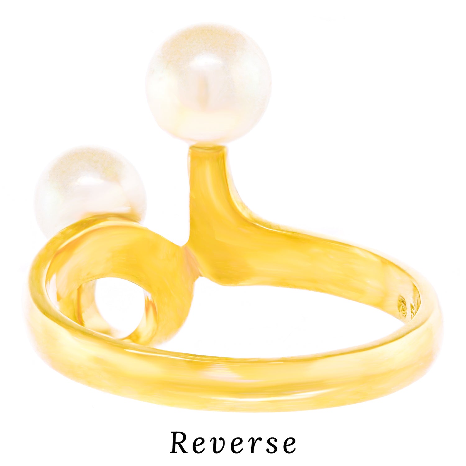 Circa 1960s, 14k, by Mikimoto, Japan.  Always refined and harmonious, the Mikimoto style is unmistakable. This beyond-cool ring is a fabulous example of their commitment to modern design. The fabrication is flawless and the pearls are sensational.  Excellent condition.