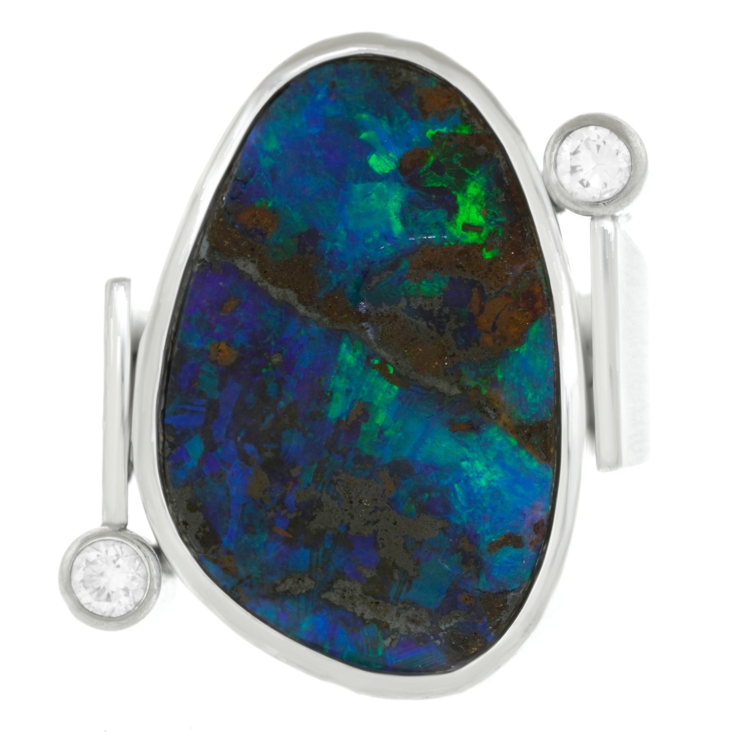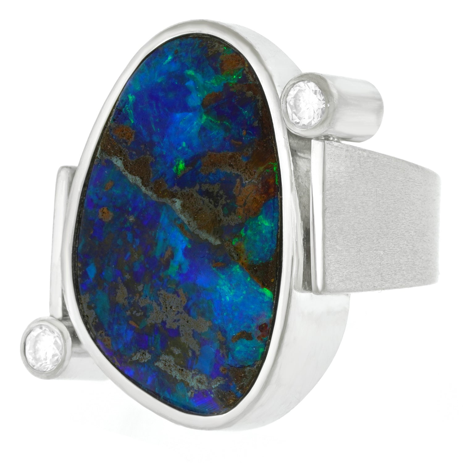 Stones: Black opal and .25 carats total weight of H color, SI1 clarity diamonds