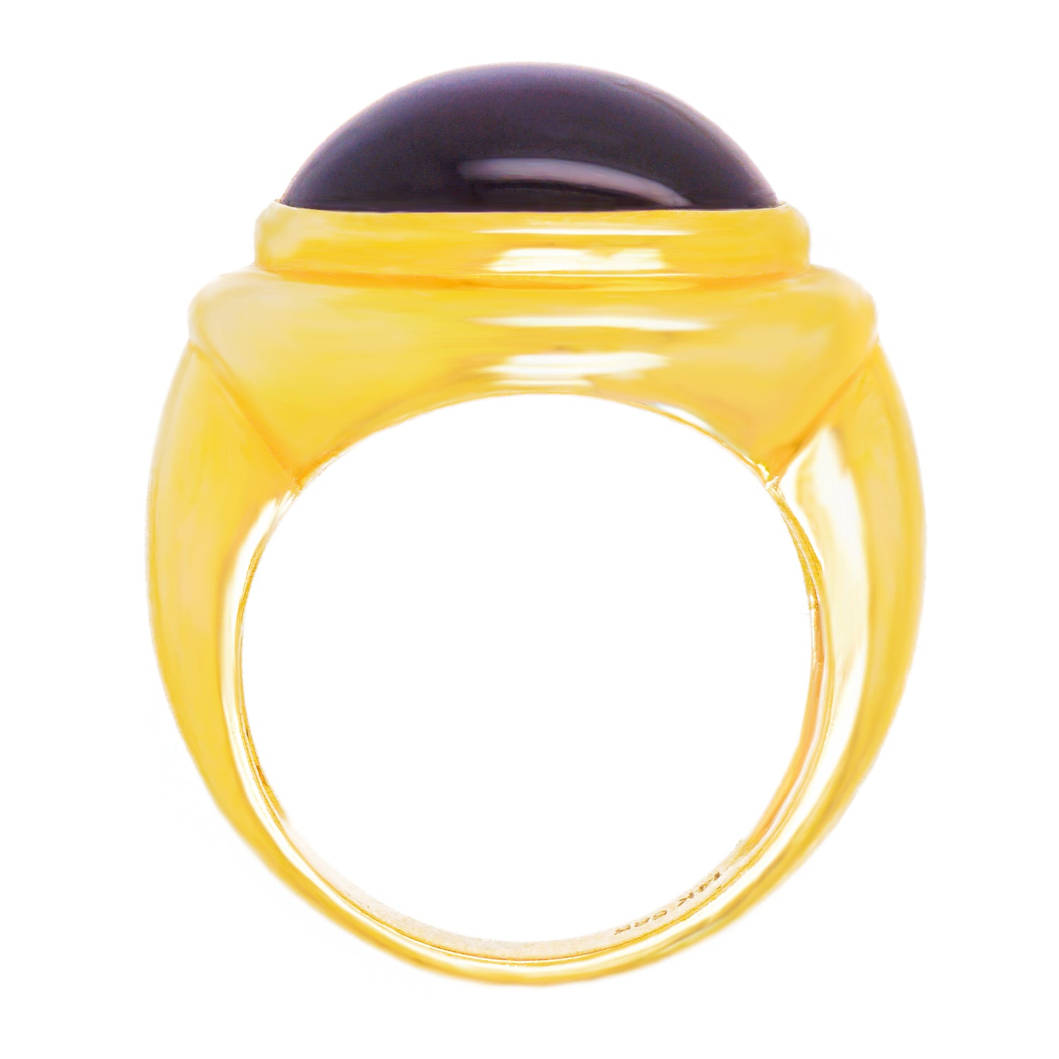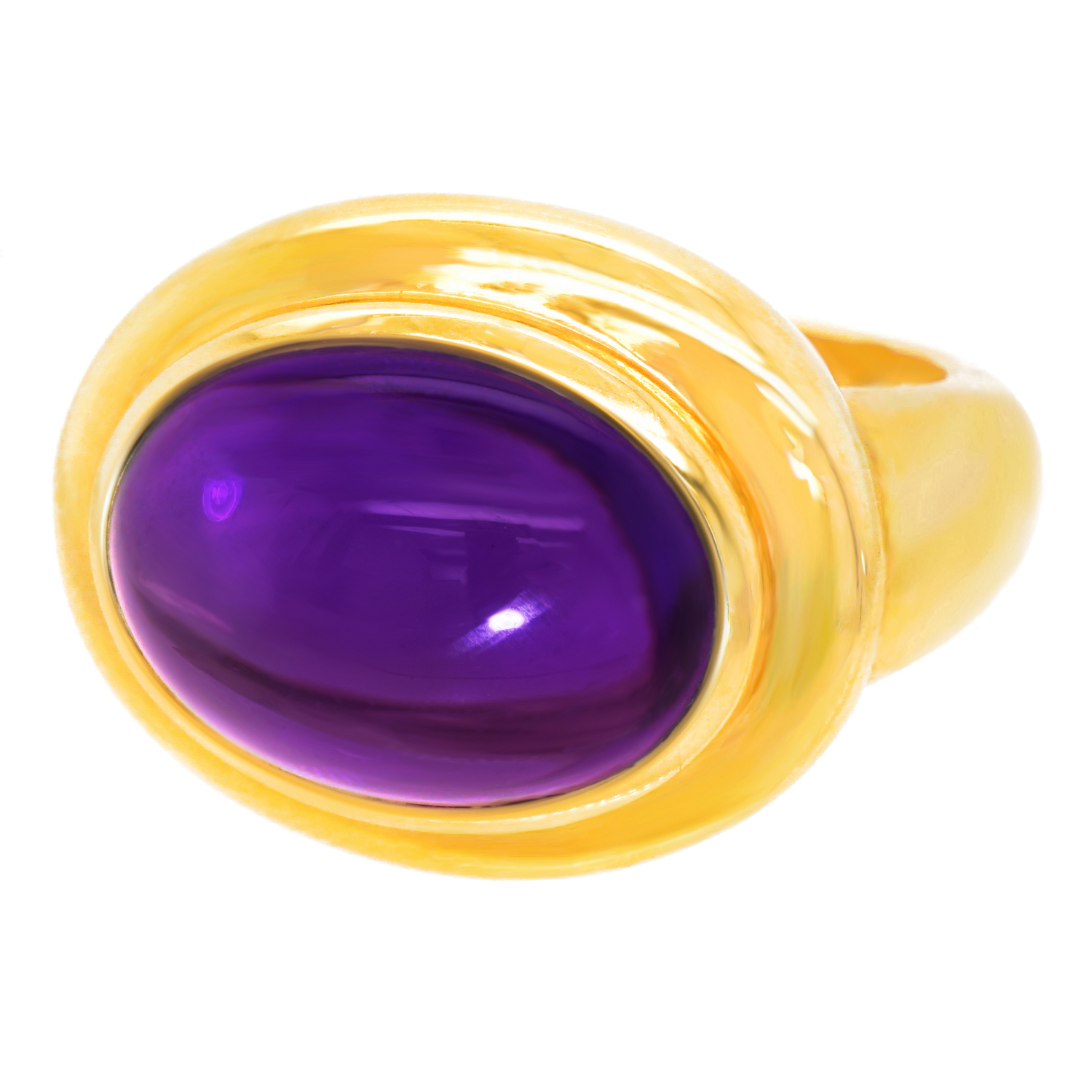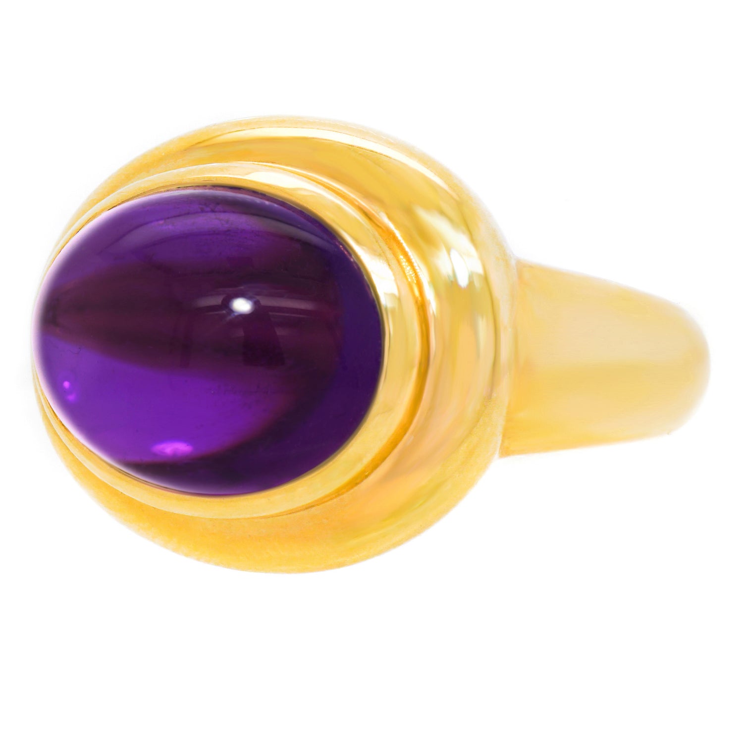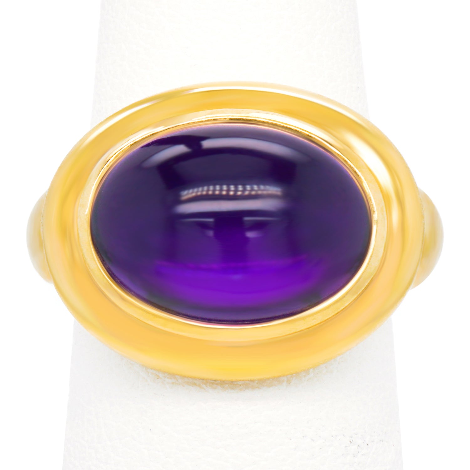 Circa 1980s, 14k, American. The cool crisp contemporary style of this ring is simply stunning. Dressed up or down, it goes with everything. The fabrication is superb and the natural amethyst has a lush color.  Excellent condition.