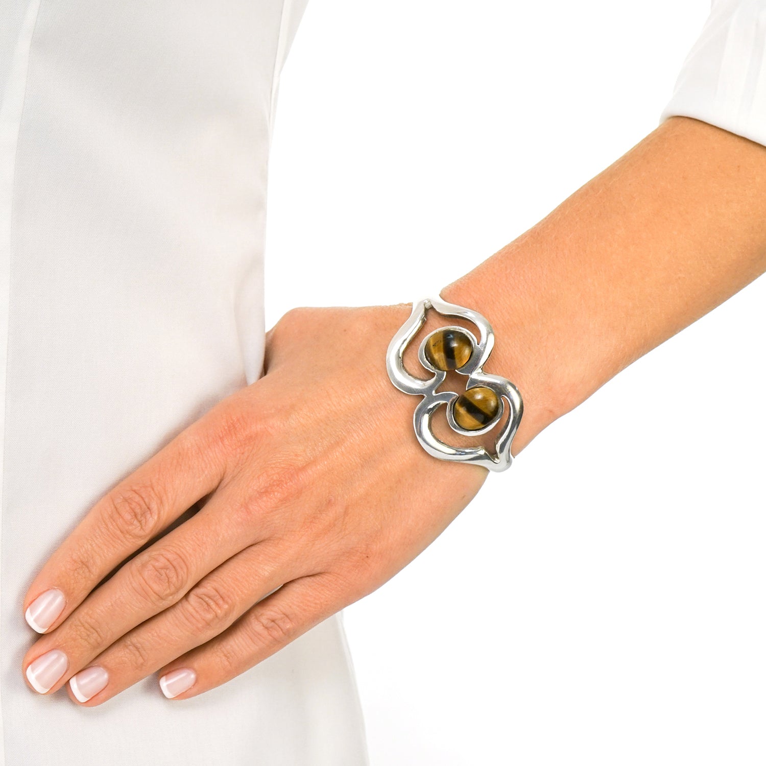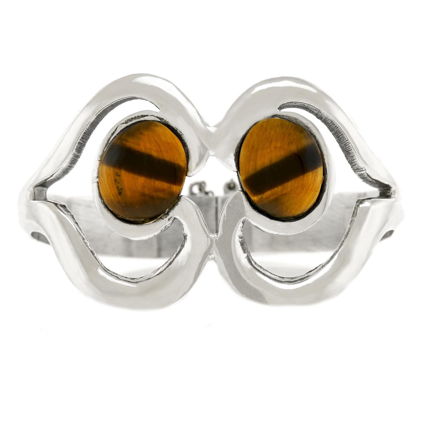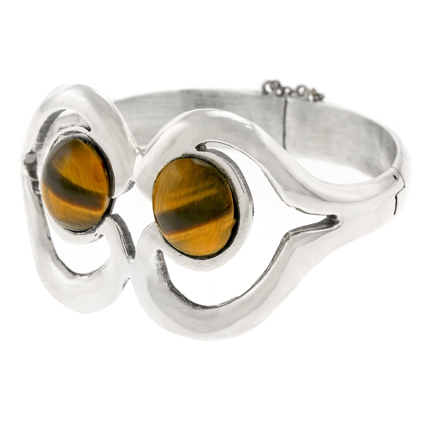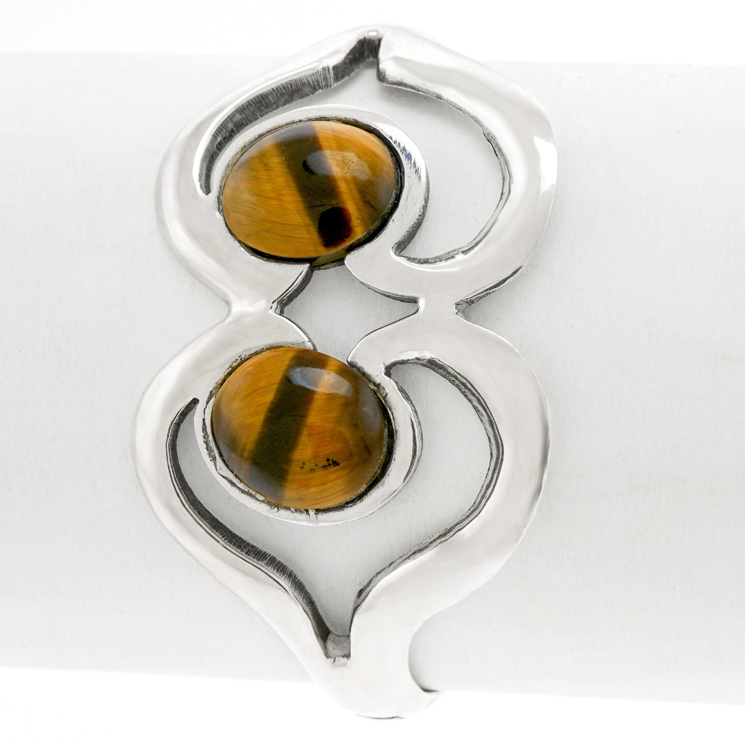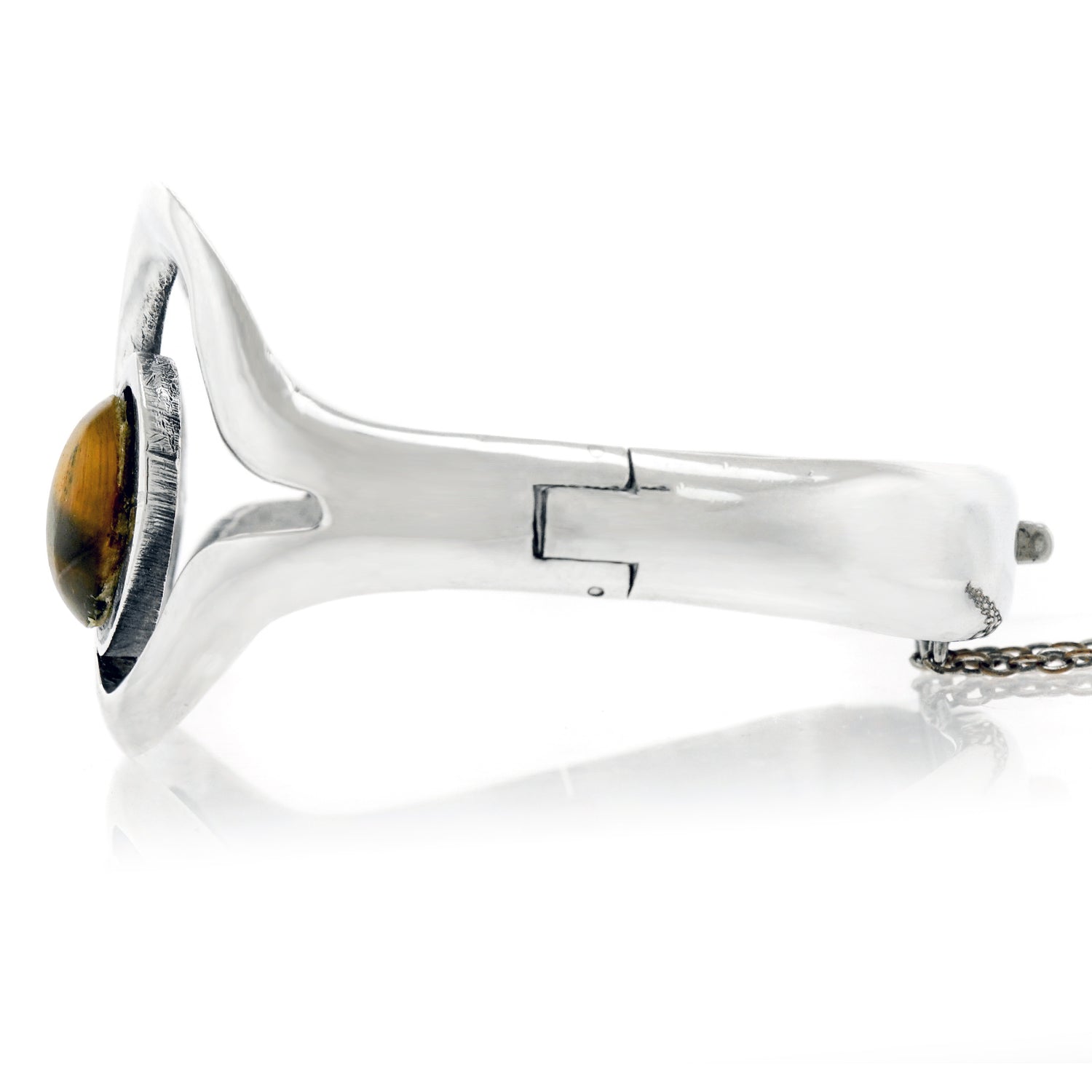 #22175- Modernist Tiger Eye and Sterling Cuff Bracelet c1950s Mexico