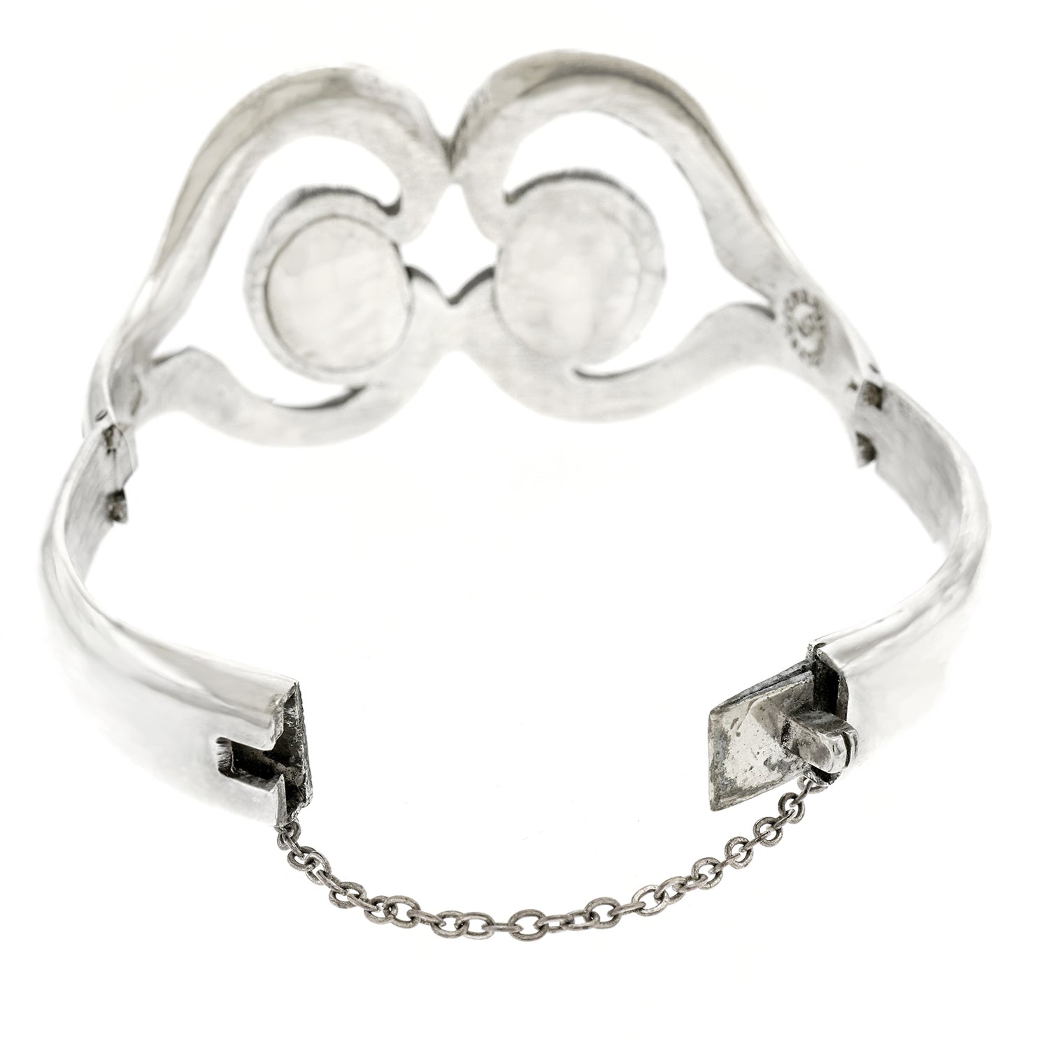 Circa 1950s, sterling, Mexico.   Fifties modern at its Mexico sterling best, this gorgeous handmade bracelet has the look. Excellent condition.
