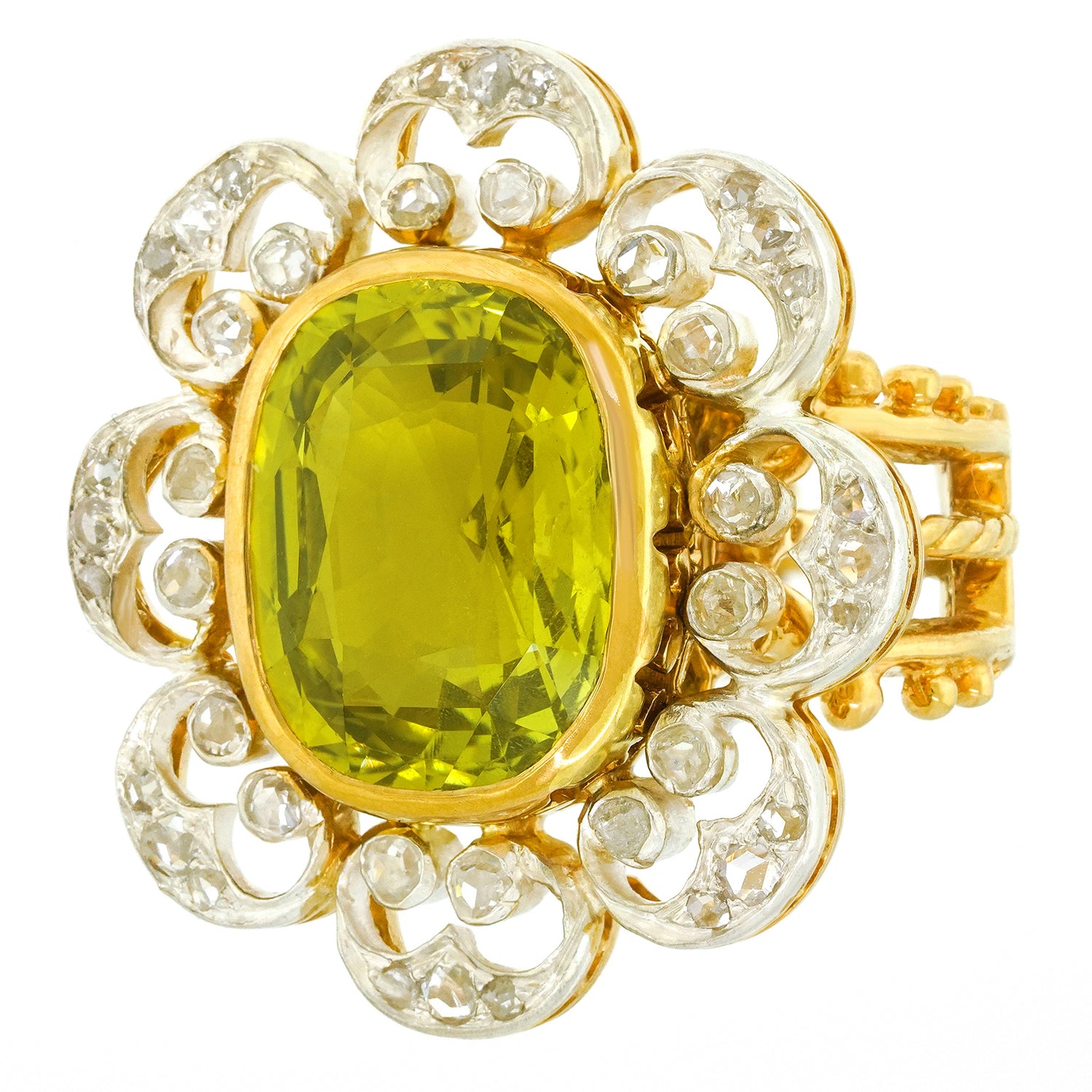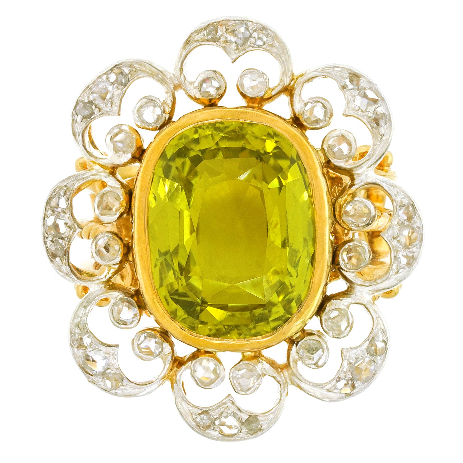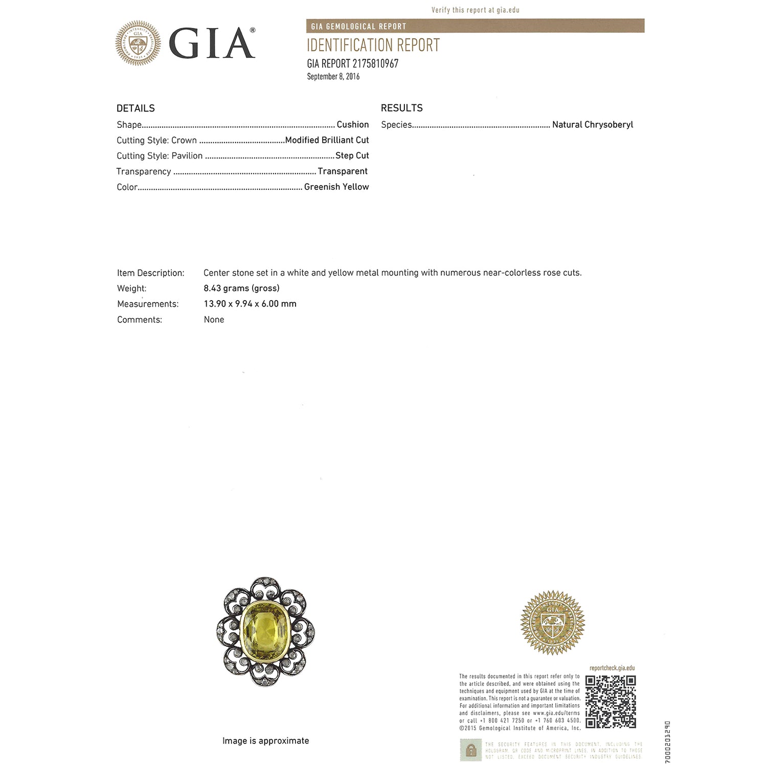 Antique Chrysoberyl with Rose-cut Diamonds GIA