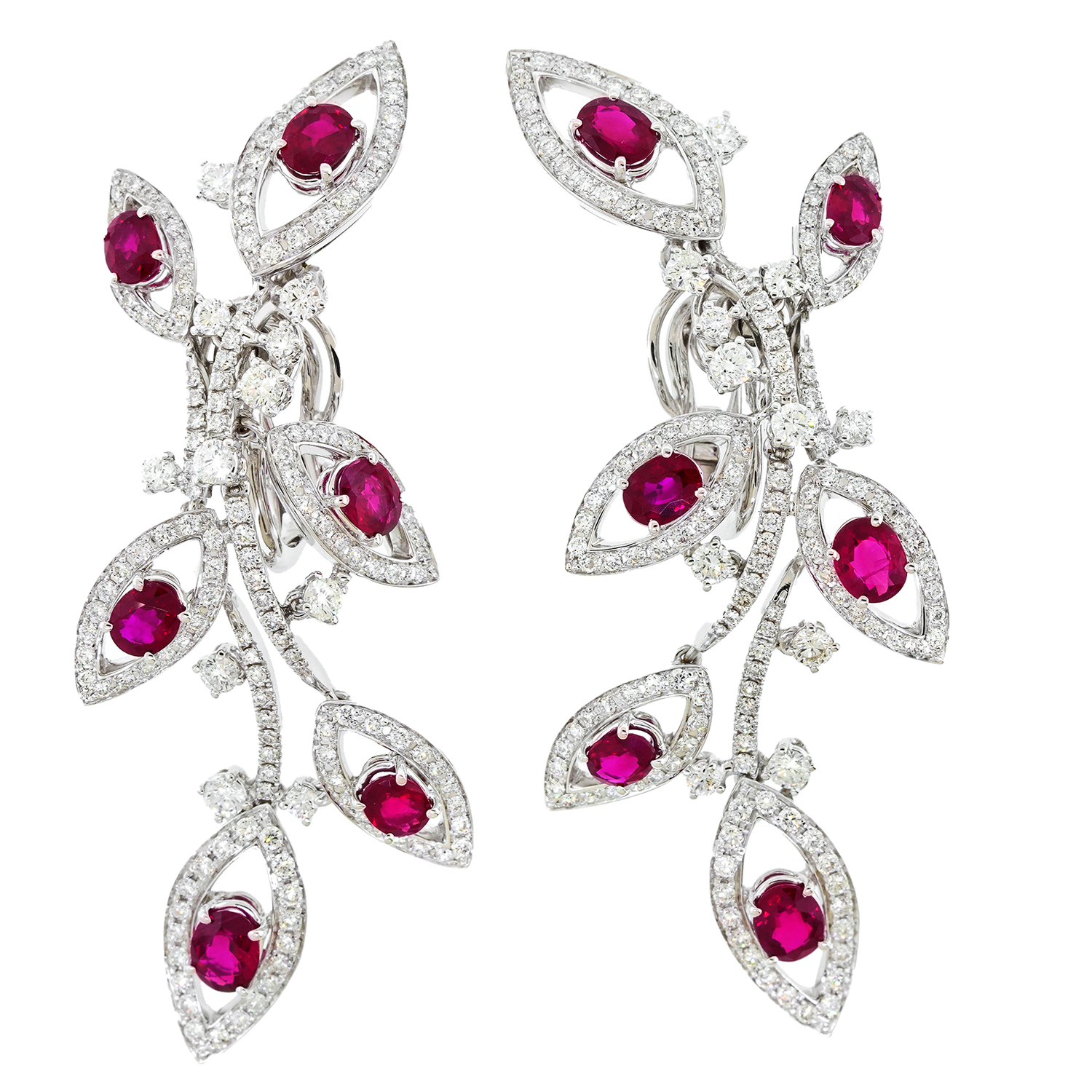 #27398 - Nineties Italian Elegant Ruby and Diamond Chandelier Earrings