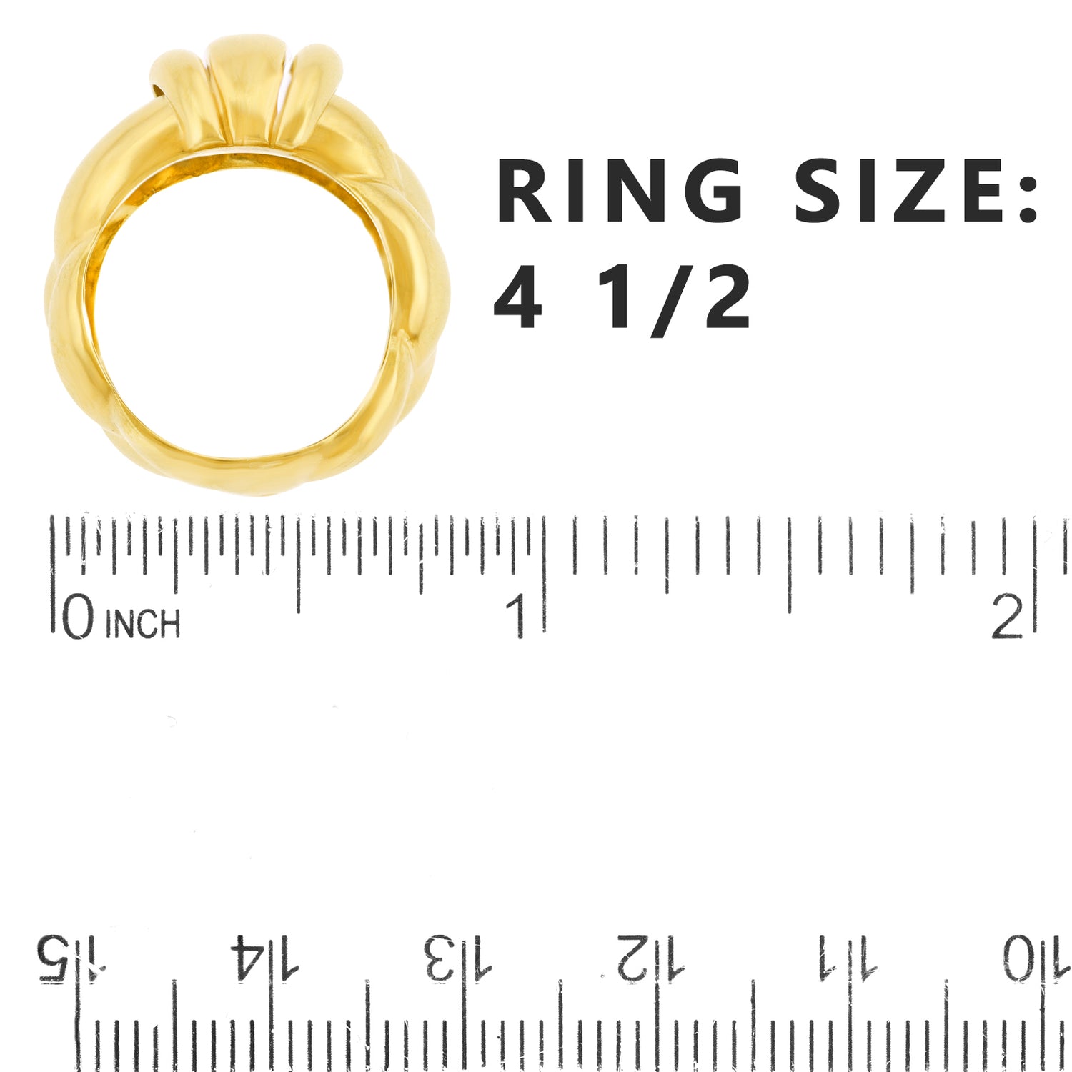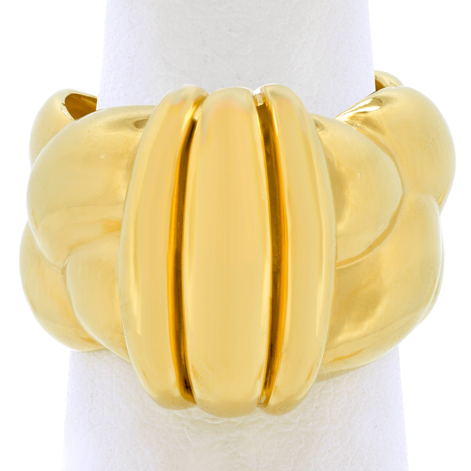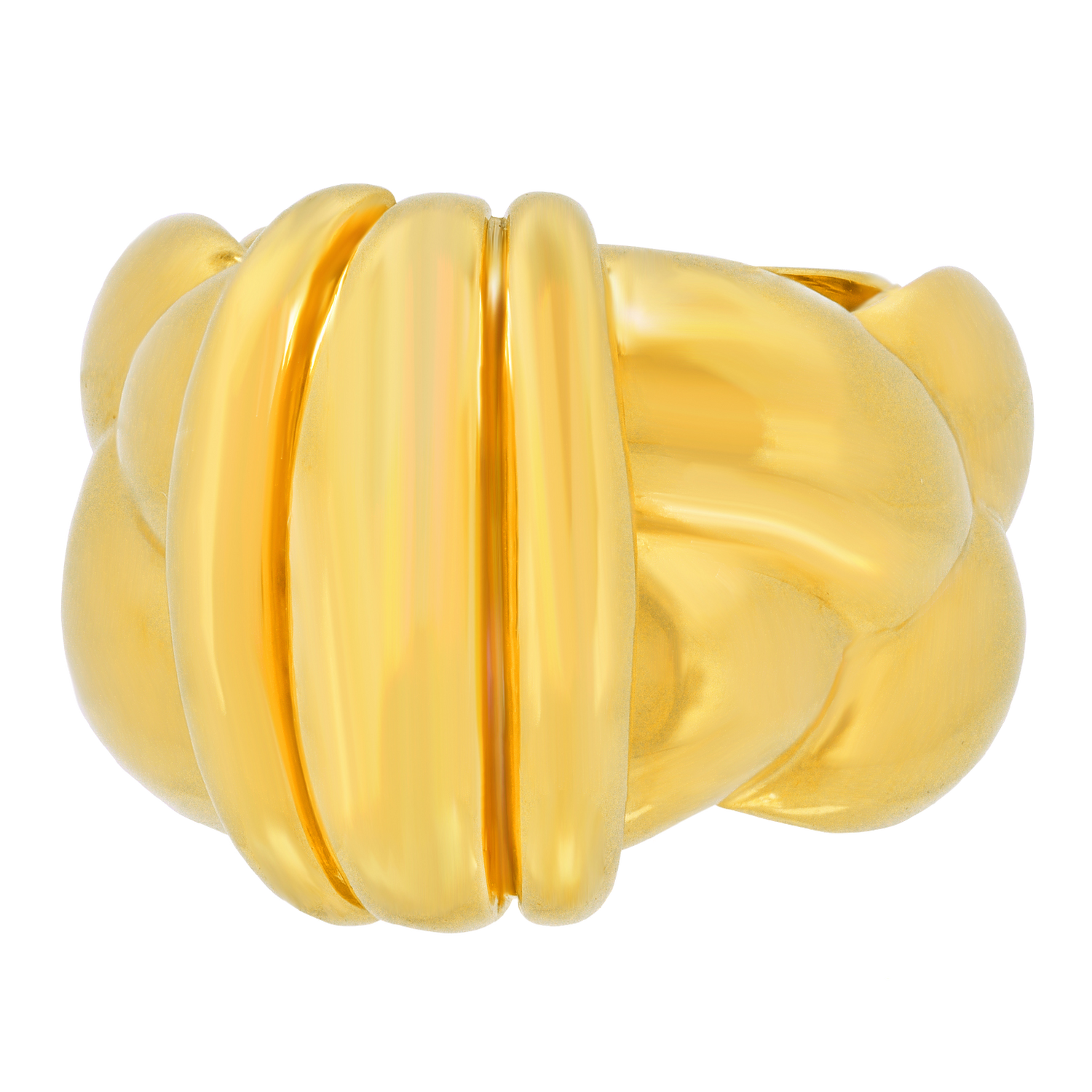 Circa 1970s, 18k, by O.J. Perrin, Paris, France. This stylish French ring is incredibly wearable and beautifully made. Breezily going from heels and jeans to cocktail dresses, this luminous organo-chic ring made by O.J. Perrin of Paris has a flowing, substantial feel. Redolent of designers like Catherine Noll, the look is very, very Parisian indeed! Excellent condition.