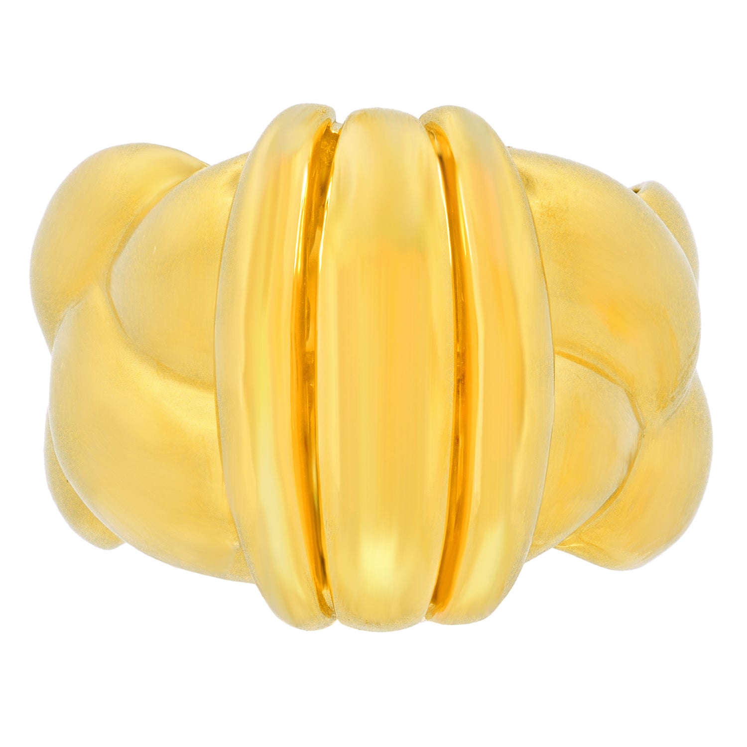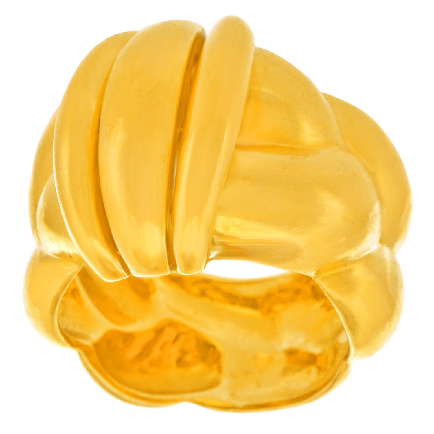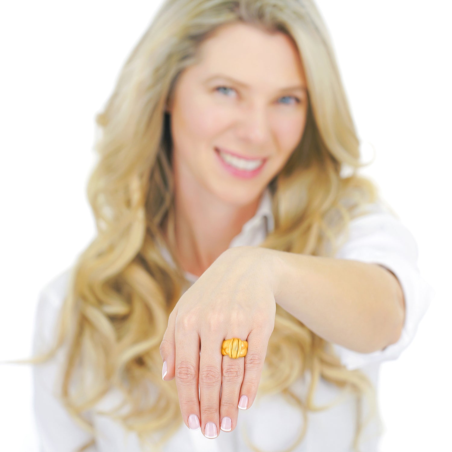 Circa 1970s, 18k, by O.J. Perrin, Paris, France. This stylish French ring is incredibly wearable and beautifully made. Breezily going from heels and jeans to cocktail dresses, this luminous organo-chic ring made by O.J. Perrin of Paris has a flowing, substantial feel. Redolent of designers like Catherine Noll, the look is very, very Parisian indeed! Excellent condition.