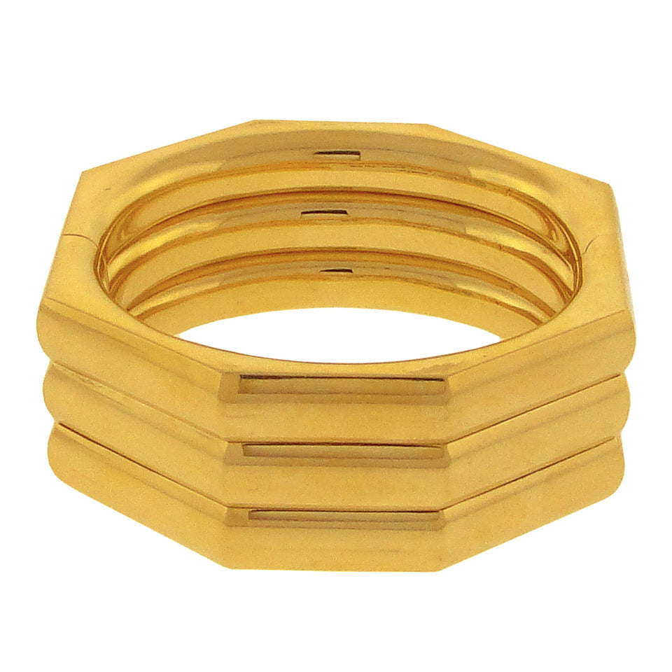Octagonal Fluted Heavy Gold Bangle Bracelet