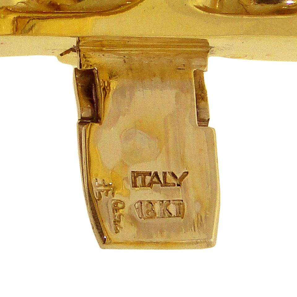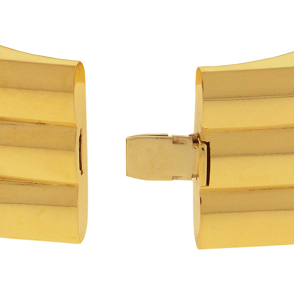 Circa 1960s, 18k, Italy.  This heavy 18k gold-hinged bangle bracelet is beautifully made. The design is sophisticated and sleek, it easily dresses up or down. Excellent condition.