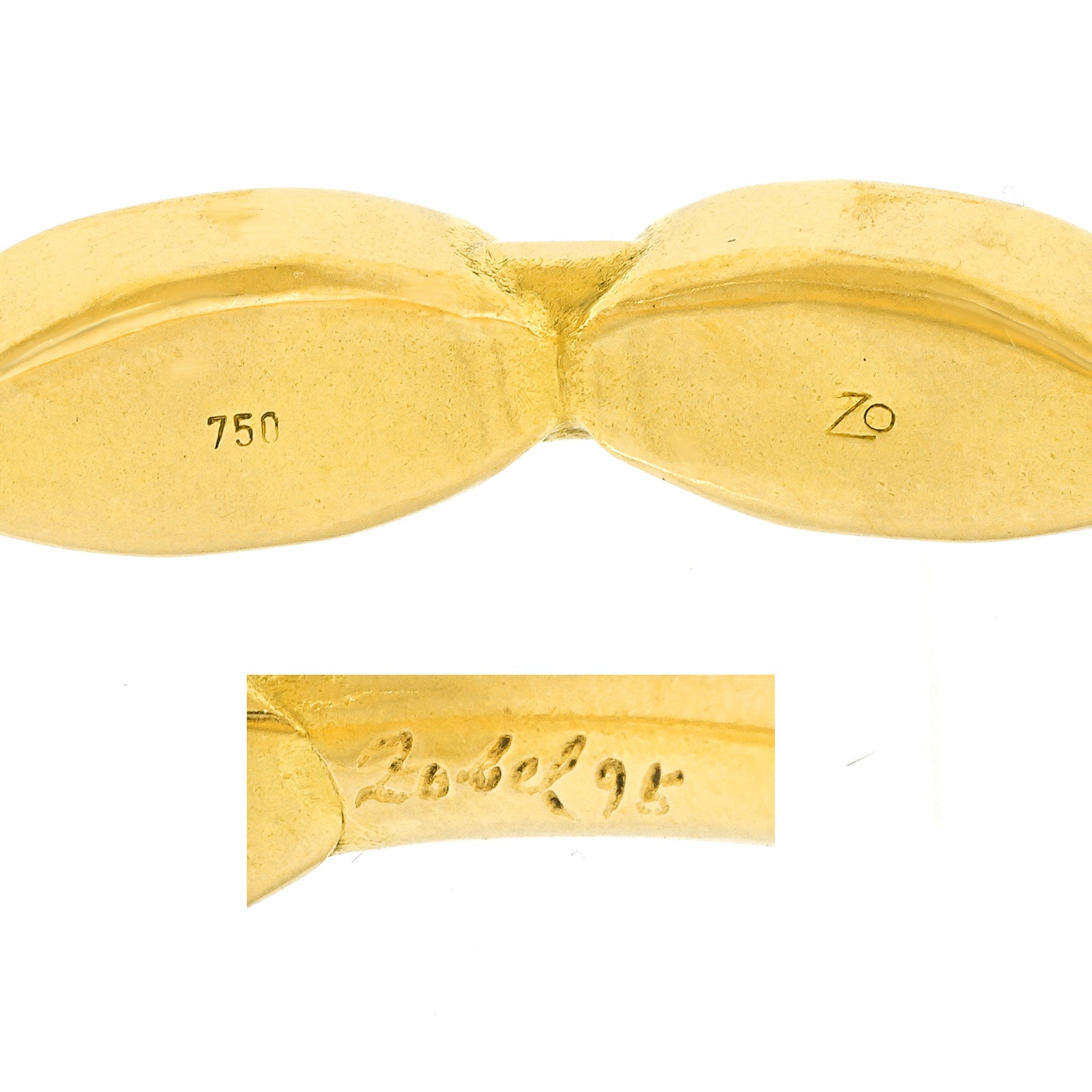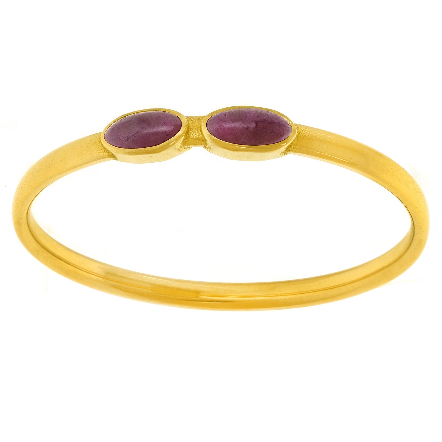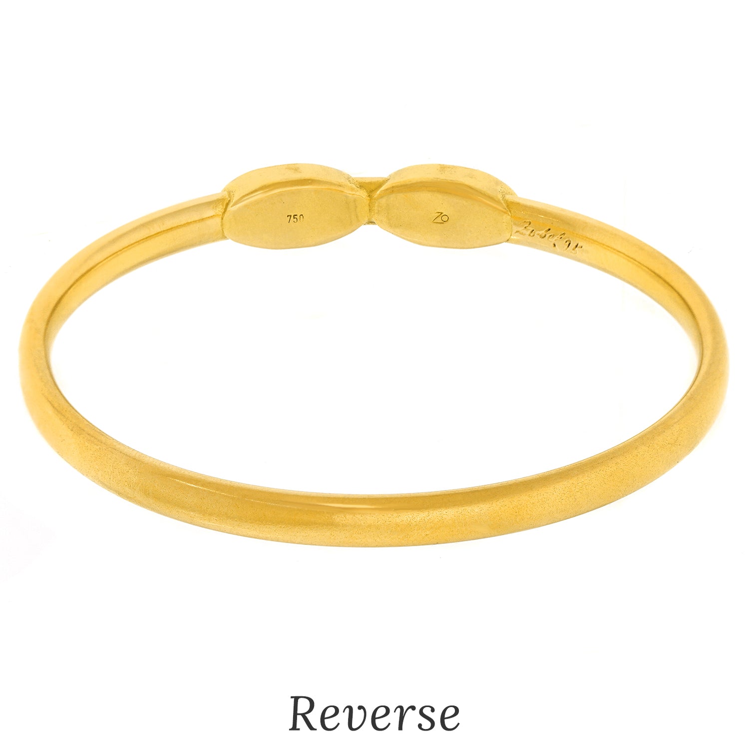 Circa 1995, 18k, by Michael Zobel, Konstanz, Germany. This gorgeous modernist gold bracelet, by the renowned German goldsmith, Michael Zobel, is set with two 3.0-carat cabochon rubies. The look is subtle glamour, the ultimate chic. The style and construction in eighteen-karat yellow gold is superb. It is a pleasure to wear on its own or stacked with other bangles. Excellent condition.