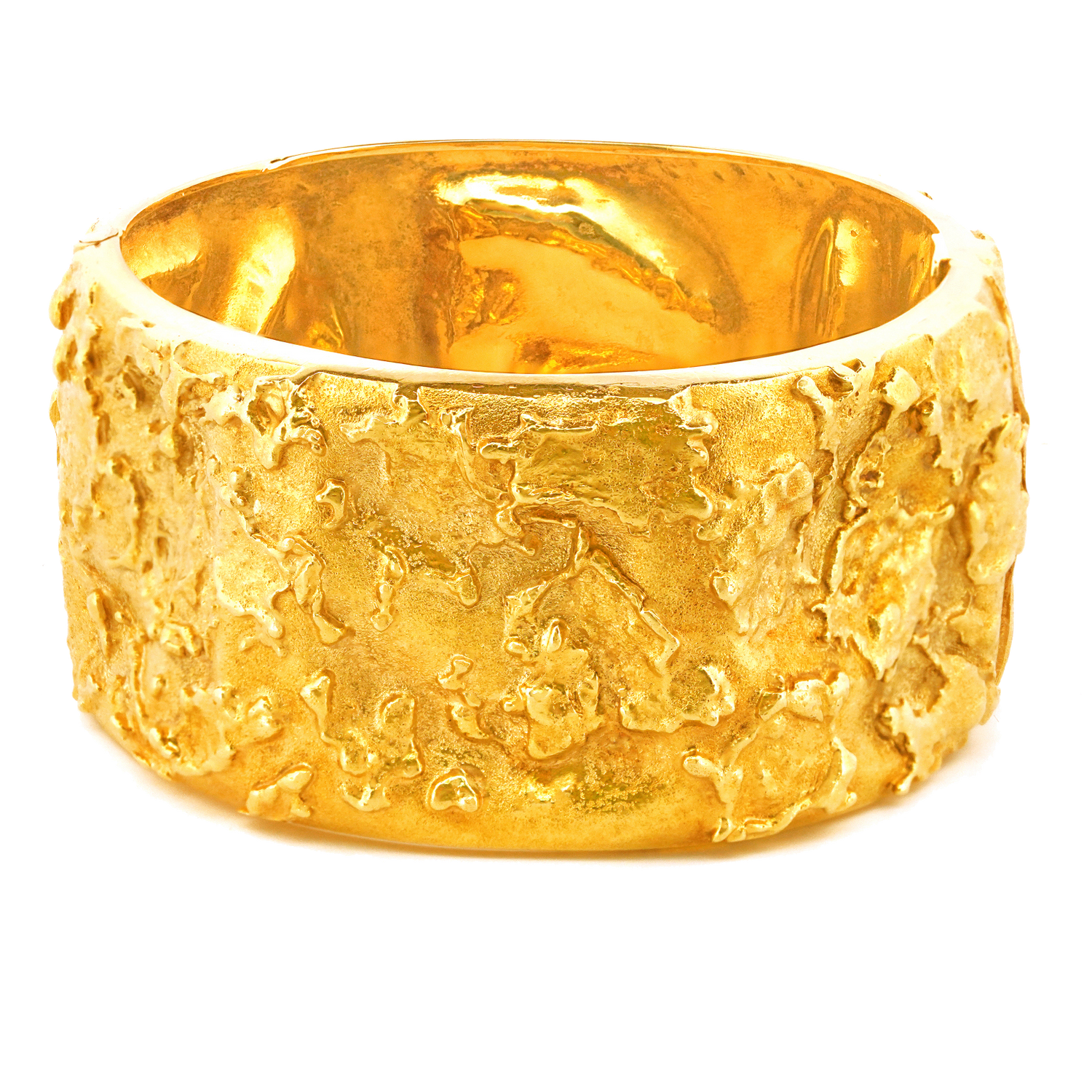 Circa 1960s, 18k, Swiss. Meticulously hand-fabricated, every fold, texture, and color of this bracelet underscores its elegantly nuanced visual narrative. Effortlessly going from the sidewalk to the catwalk, it is a fabulous one-of-a-kind expression of the Swiss Modern idiom. The look is wearable art to-go. Excellent condition.