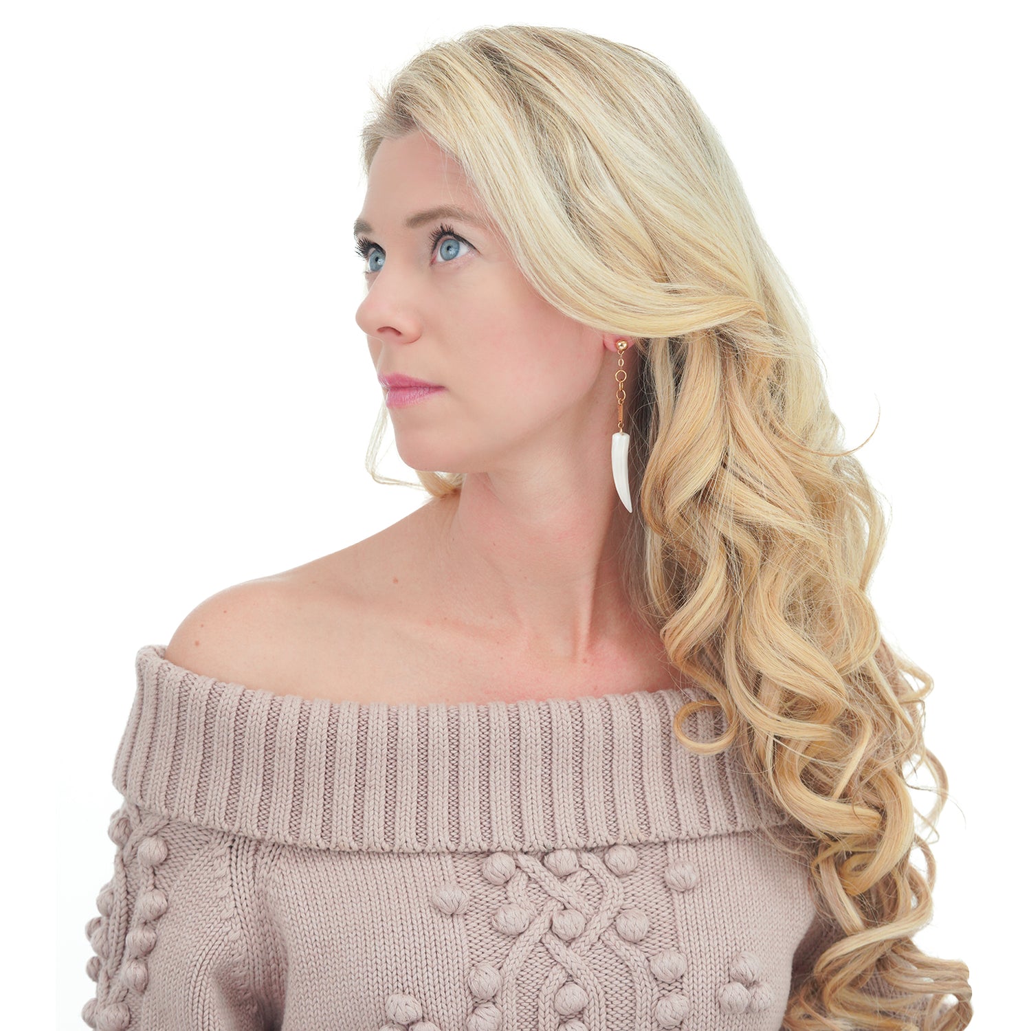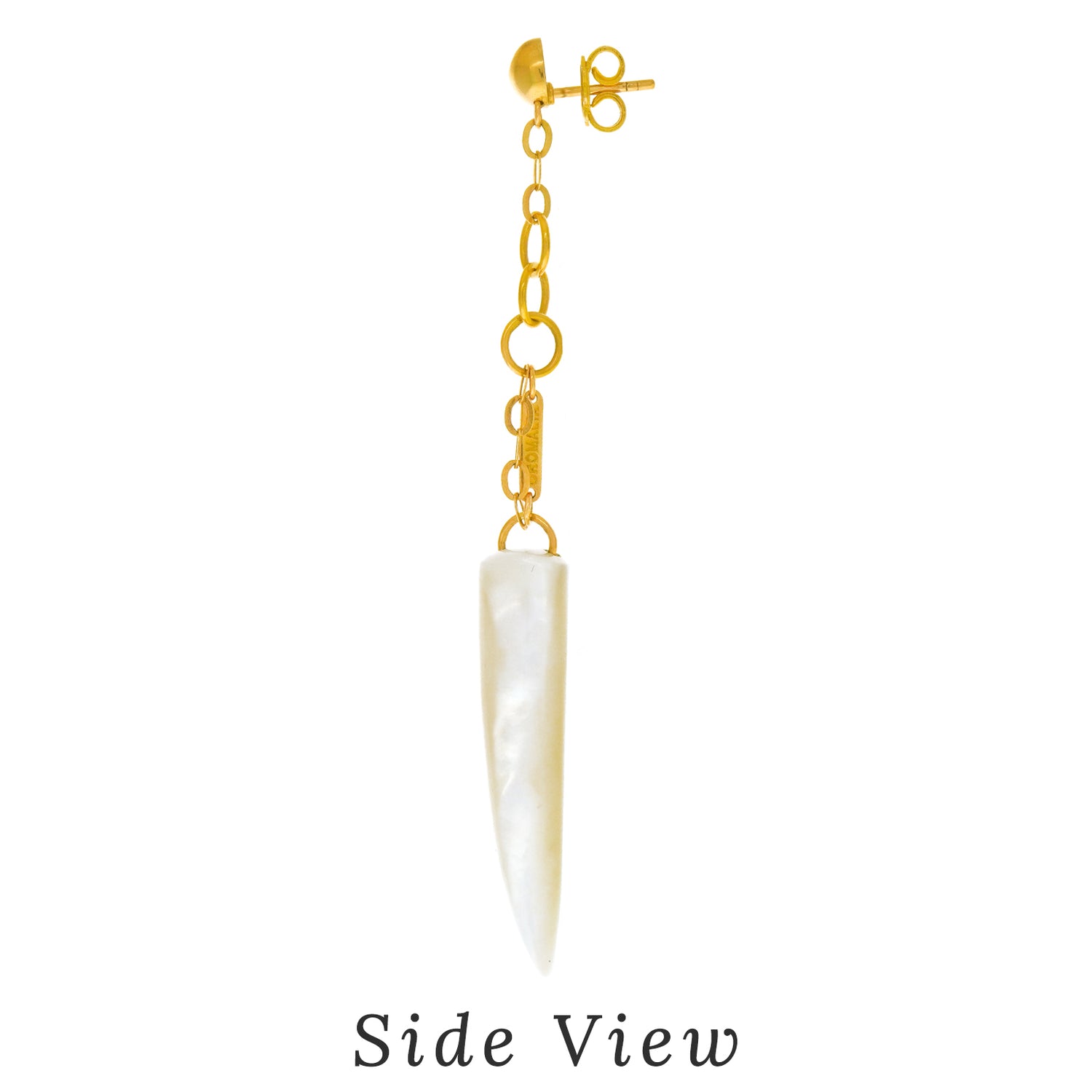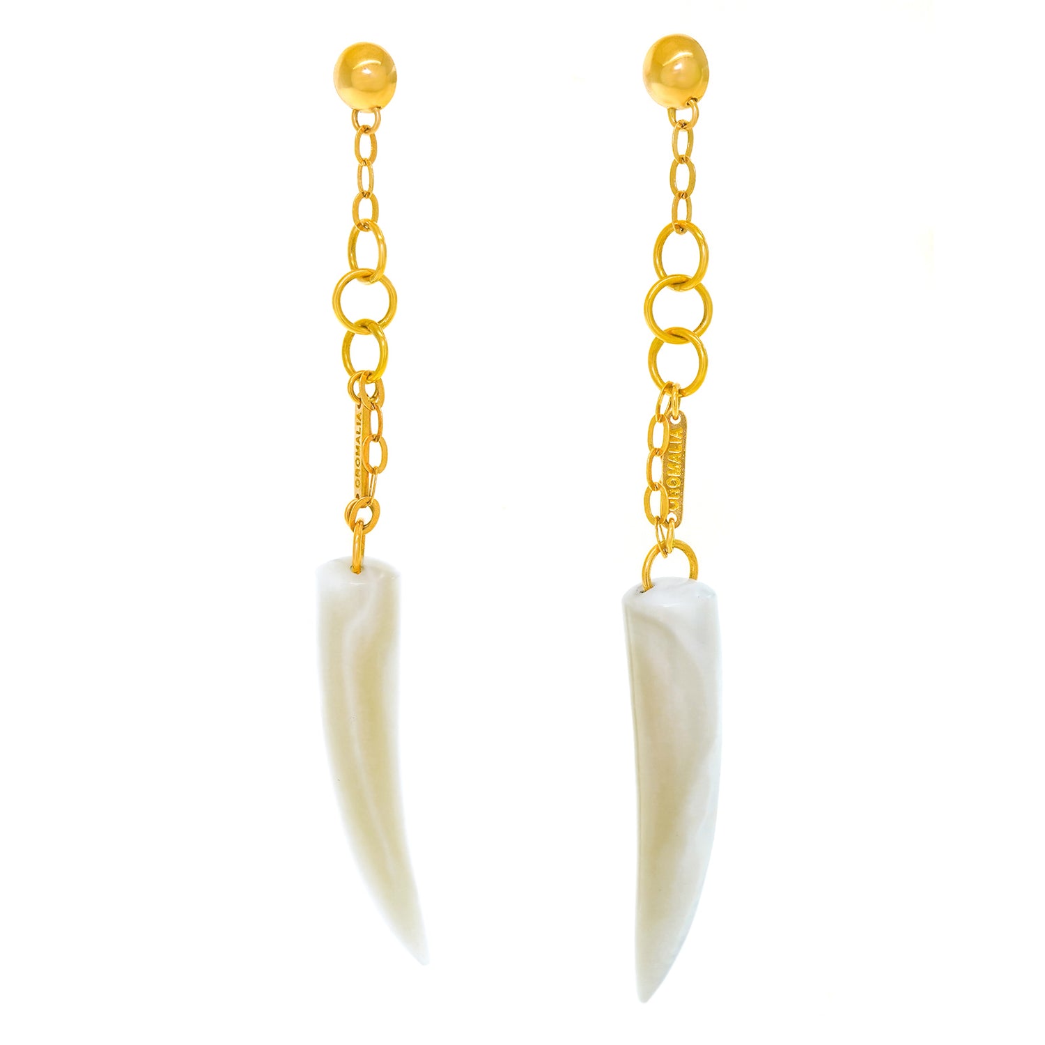 Circa 2000s, 18k, by Ormalia, Florence, Italy. At three and a half inches long with wonderful flirty movement, these earrings are all about playful, casual, chic. Lustrous carved mother-of-pearl elements are suspended from gold links in varying sizes. Perfect with jeans and a tee, the look is Italian cool!  Excellent condition.