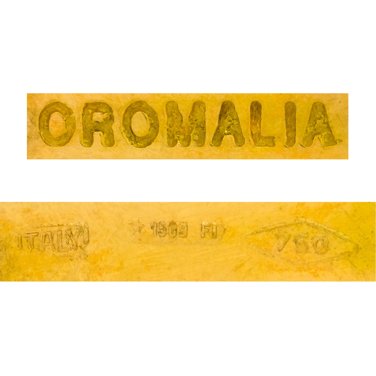 Hallmarks: OROMALIA, 750 for 18k, Italy, and Italian Workshop Registration Mark