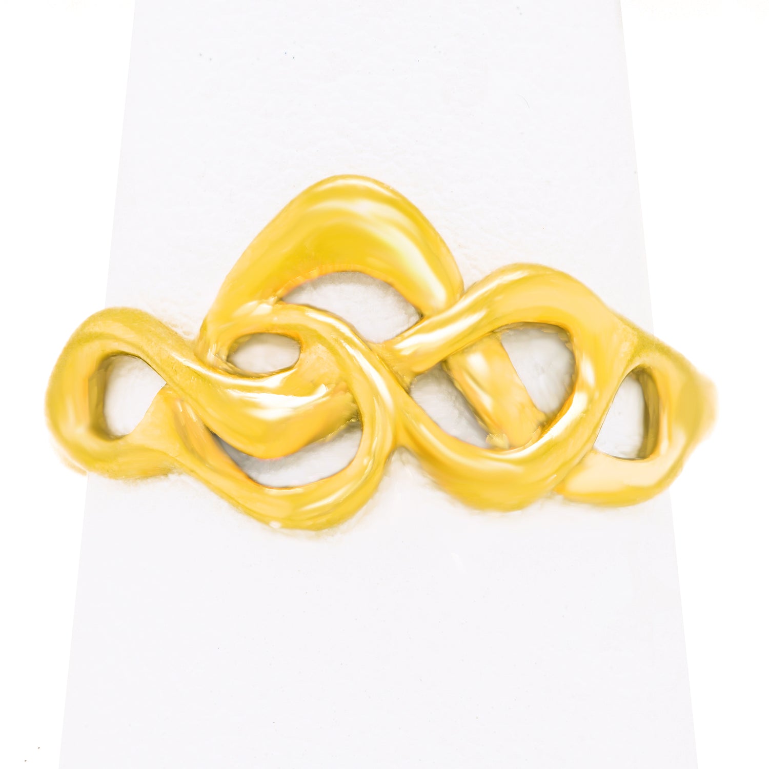 Circa 1970s, 18k, by Peter Aylen, Mt Desert Island, ME. This 18k seventies ring has the unique details and the organic vibe of true Hippie jewelry. A cross between twined branches and an eternity knot, it speaks to our sense of spirituality as well as our fashion sense. Finely hand-crafted, it is in excellent condition.