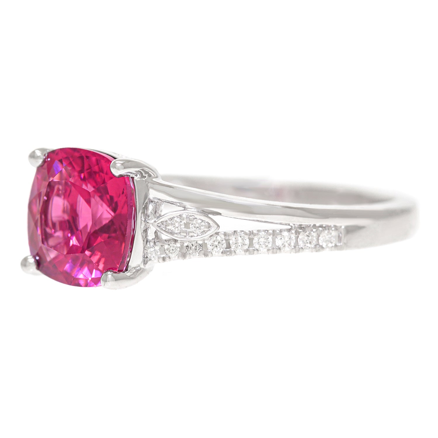Stones: 2.0 carat pink tourmaline and .10 carats total weight of H color, VS clarity diamonds