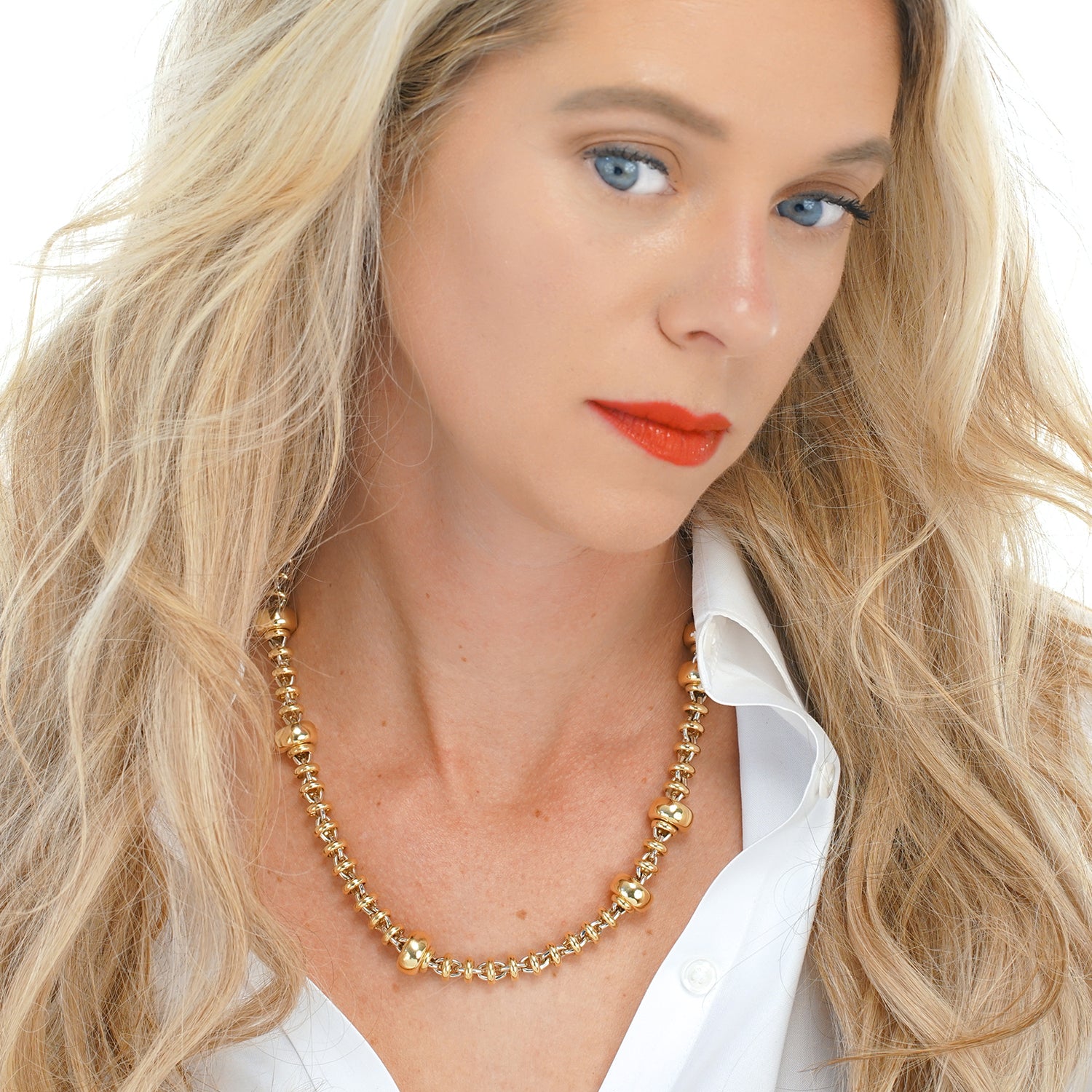 Noted: This piece is smooth polished gold and very shiny, the model shots are most representative of the piece. Pictured On model with matching bracelet Inv. #23741