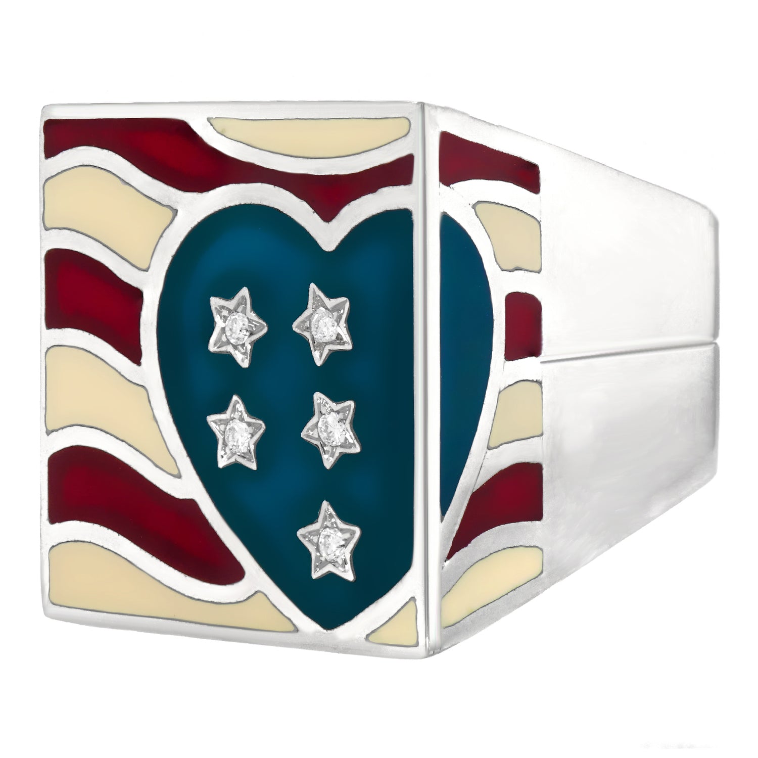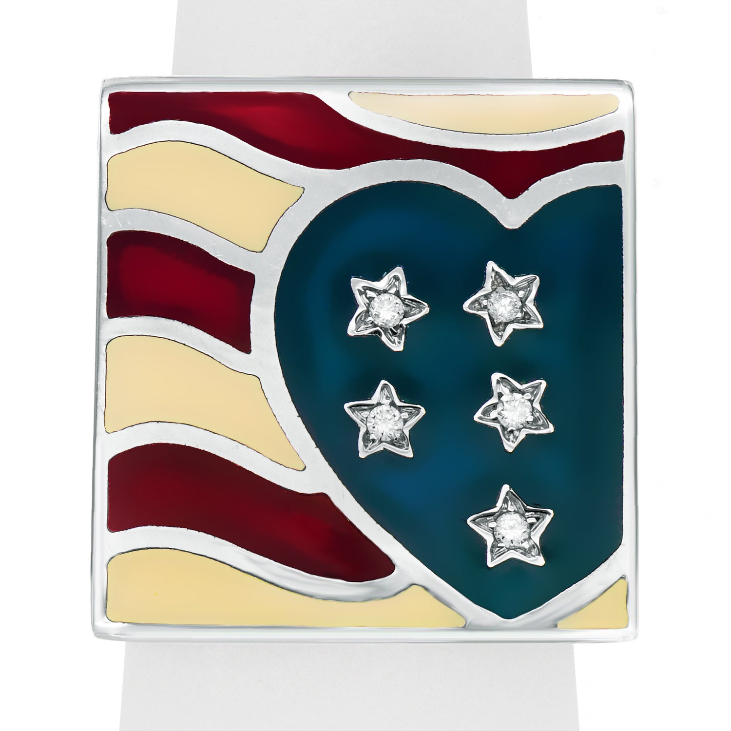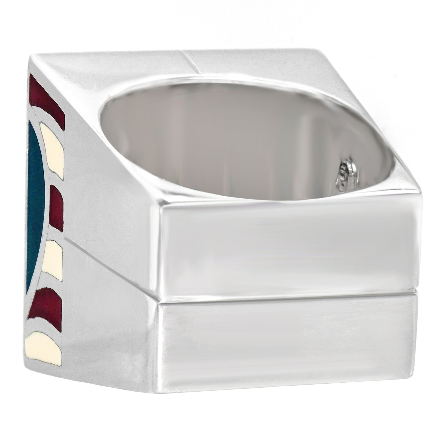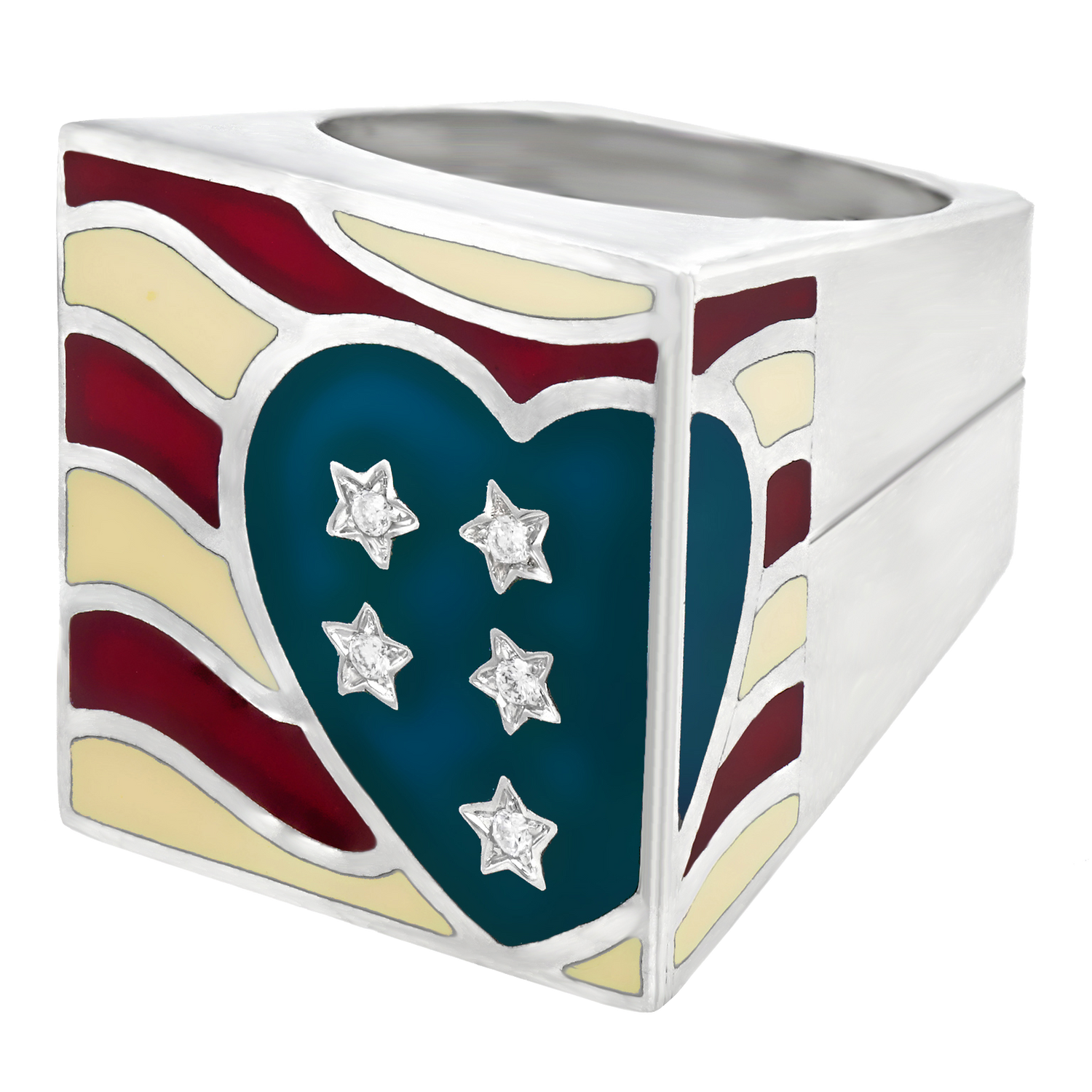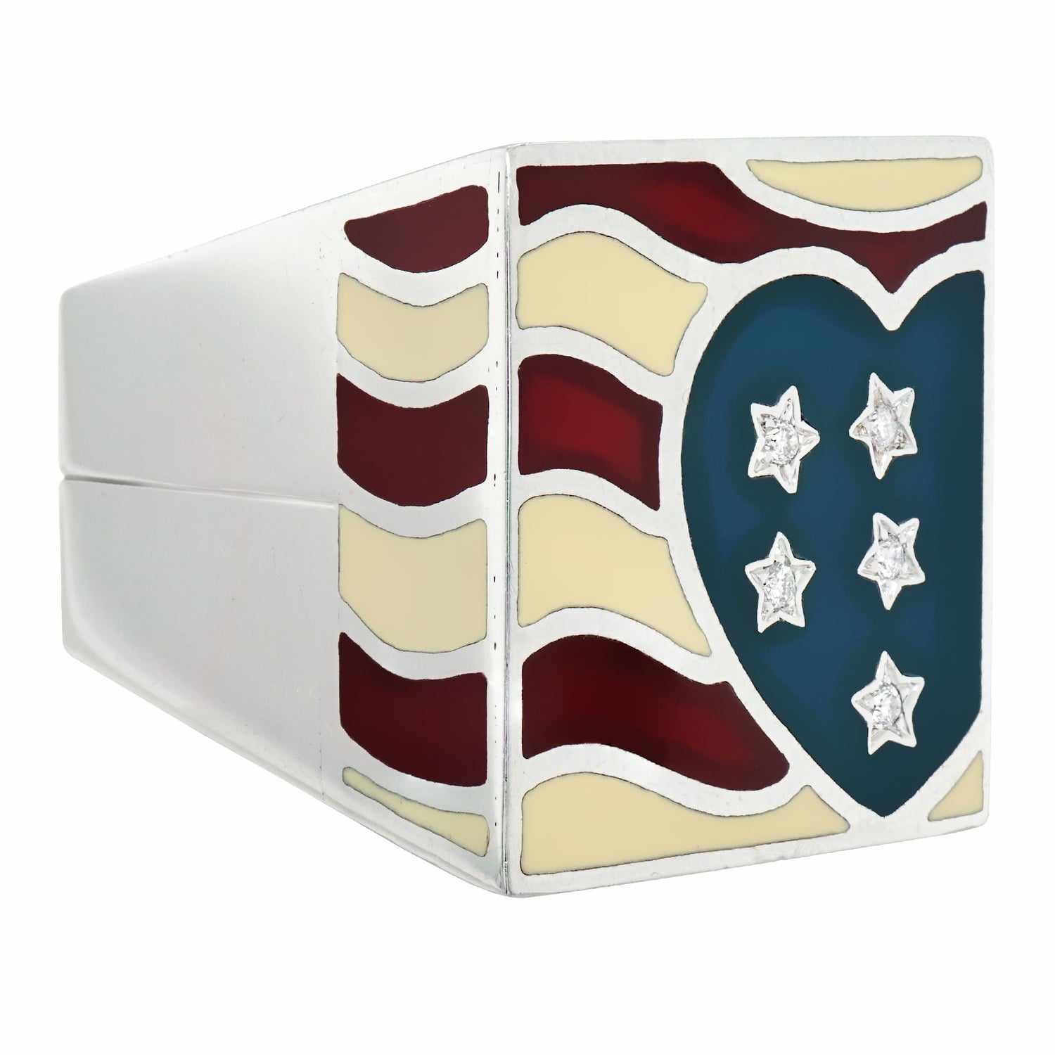Circa 2000s, 18k, by La Nouvelle Bague, Italy. A heady mix of art and fashion, this American flag-themed enamel ring is a Pop Art triumph! La Nouvelle Bague is known for its high-design, fashion jewelry. Finely fabricated in 18k white gold, it is in excellent condition.