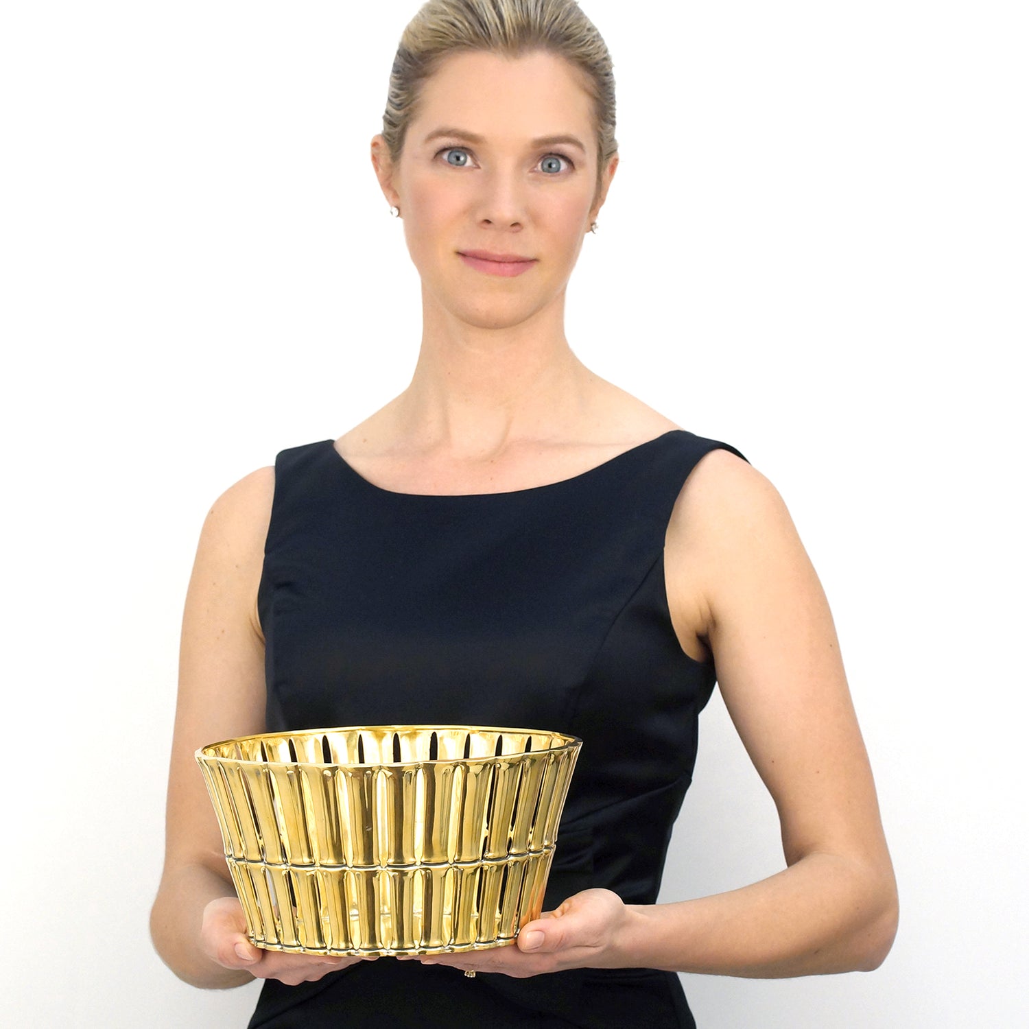 Circa 1960s, Sterling, by Tiffany & Co., American. This Tiffany & Co. gilded sterling centerpiece will perfectly complement contemporary or traditional interiors. Its bamboo motif offers elegant visuals, and the generous size and useful form allow the duality of function. It can join your silver service at the table or decorate a fashionable moment in your living space. Finely made in sterling silver, larger hollowware in Bamboo pattern is rare. Excellent condition