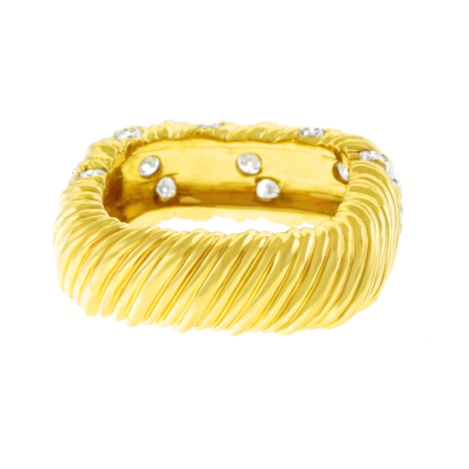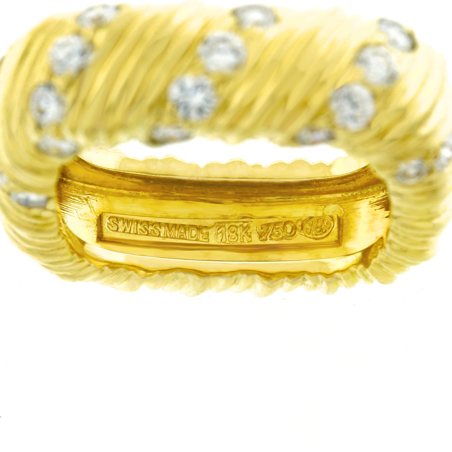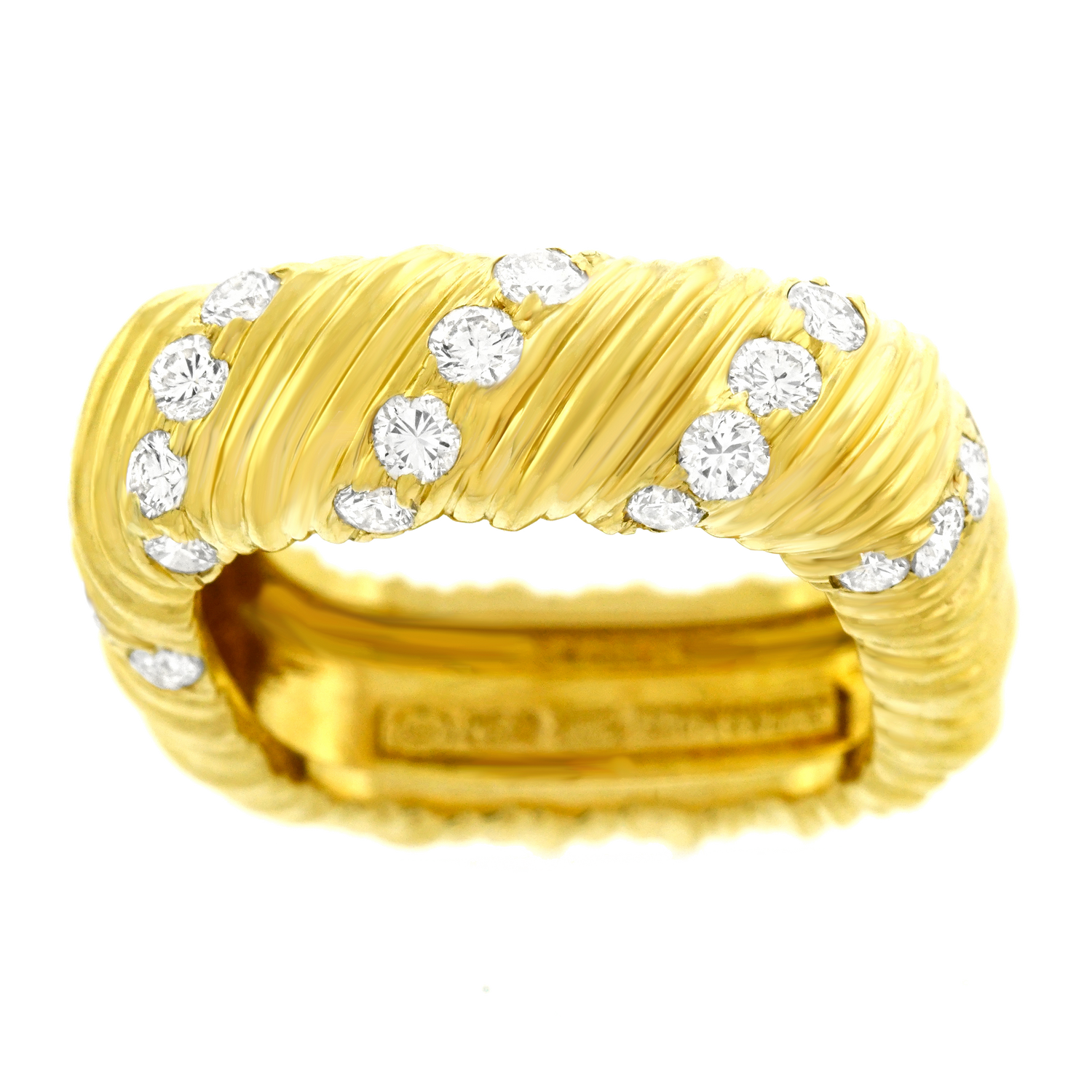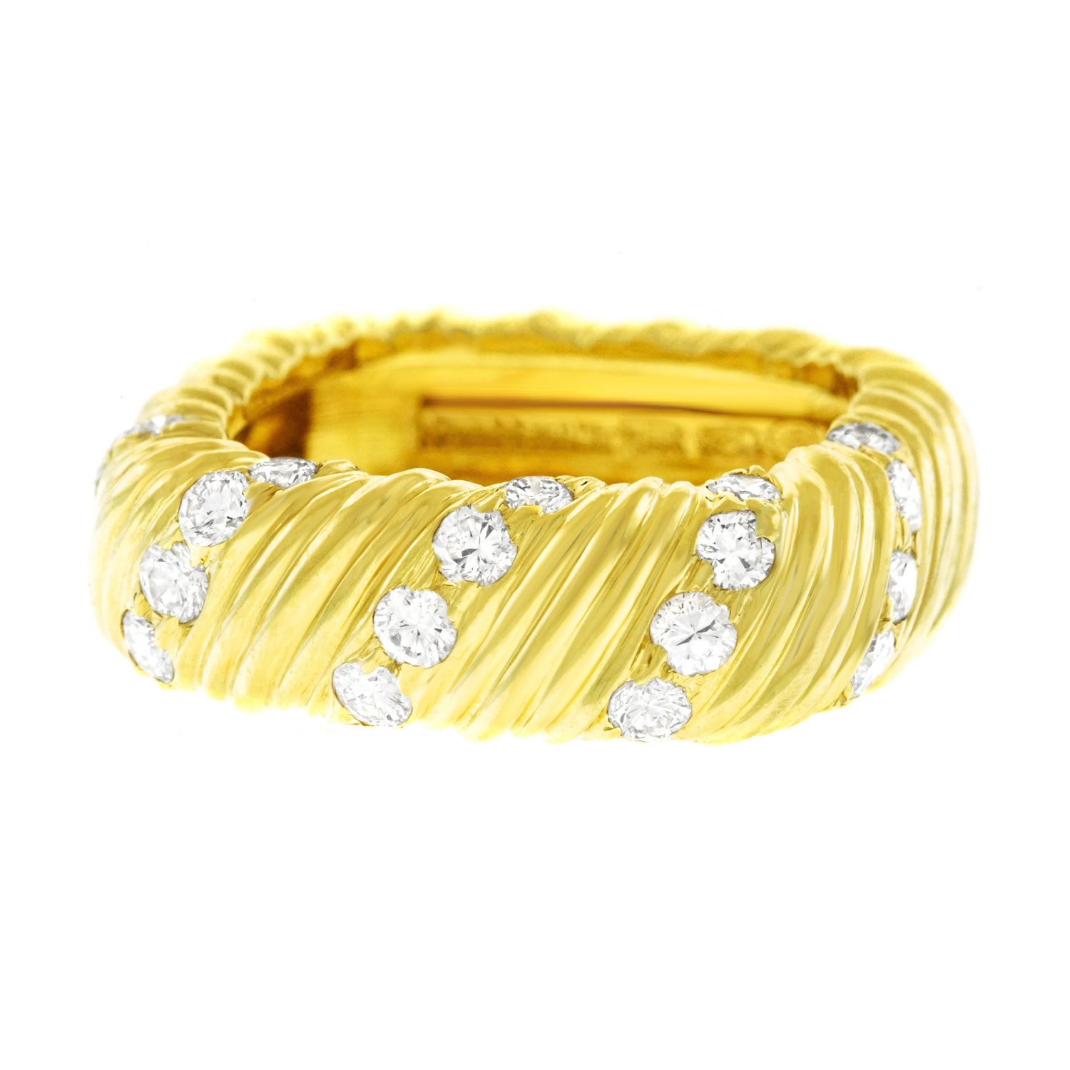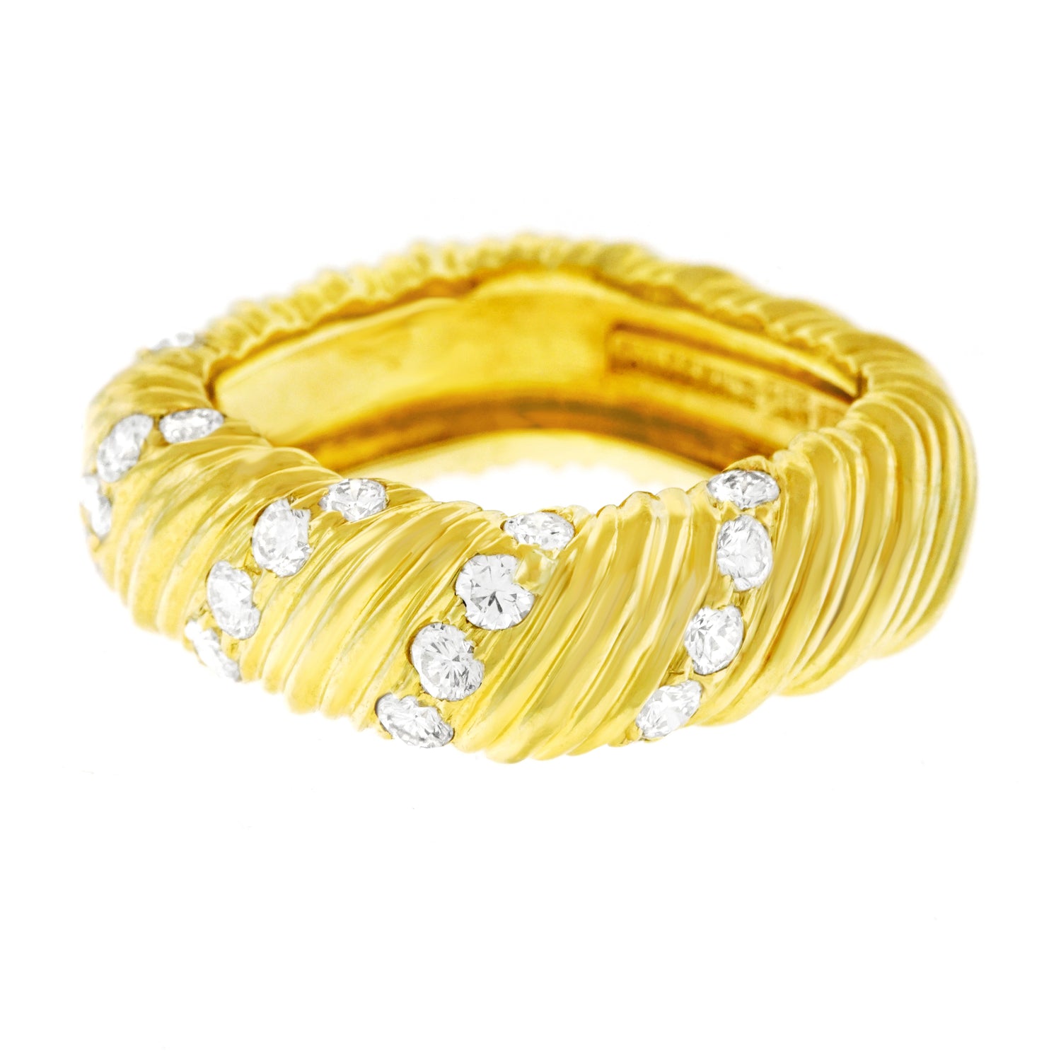 Circa 1970s, 18k, by Weber & Cie, Geneve, Switzerland. This stylish ring by Weber & Cie features 1.0 carat of superb brilliant-cut diamonds (G color, VS clarity) set in an intriguing cable twist motif. Its effortless élan is breezy every day chic. Exquisitely made to Weber & Cie's high Swiss standard, this bold ring is in excellent condition.