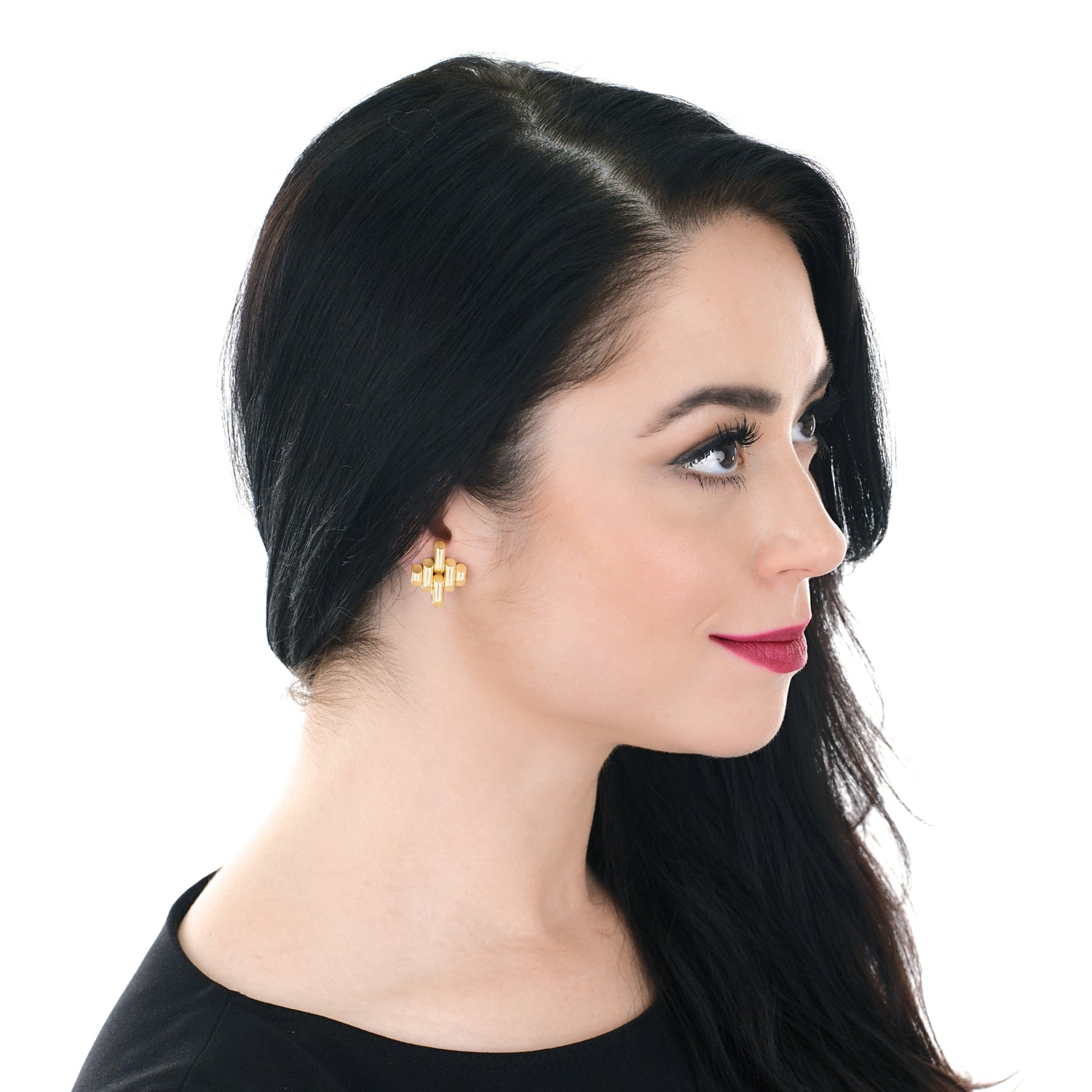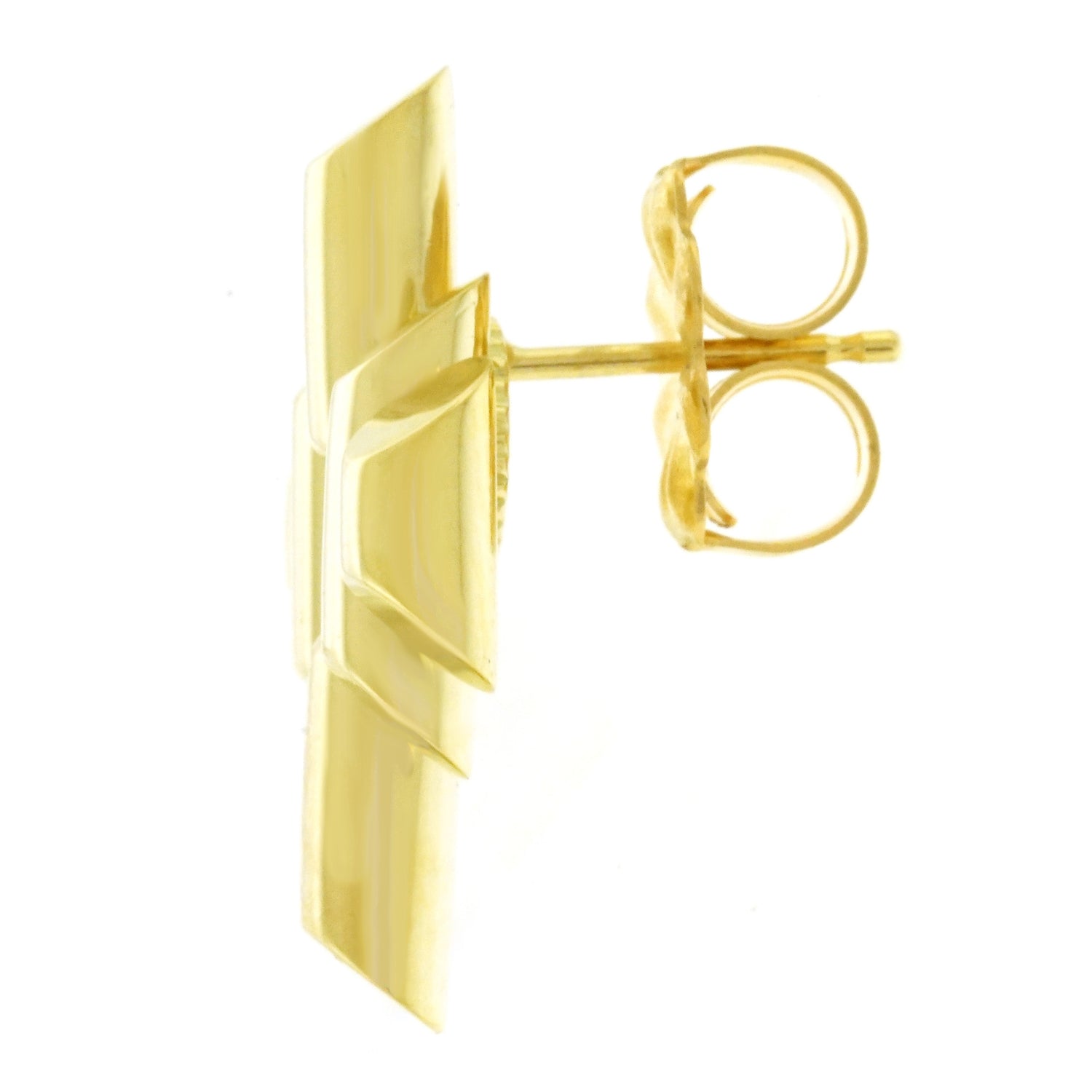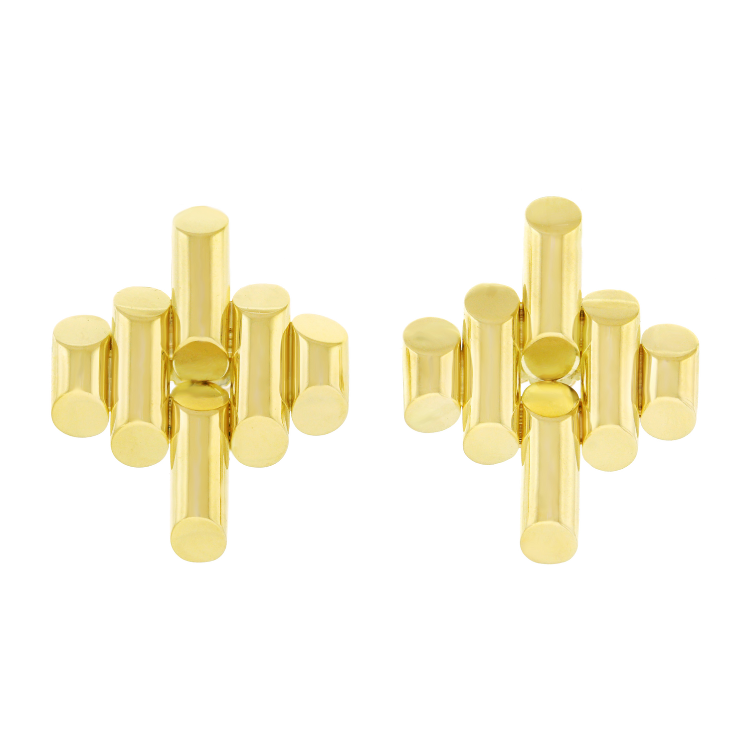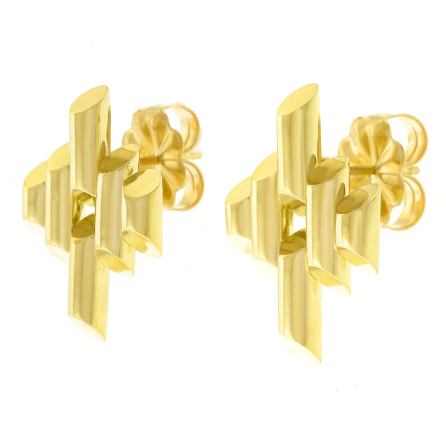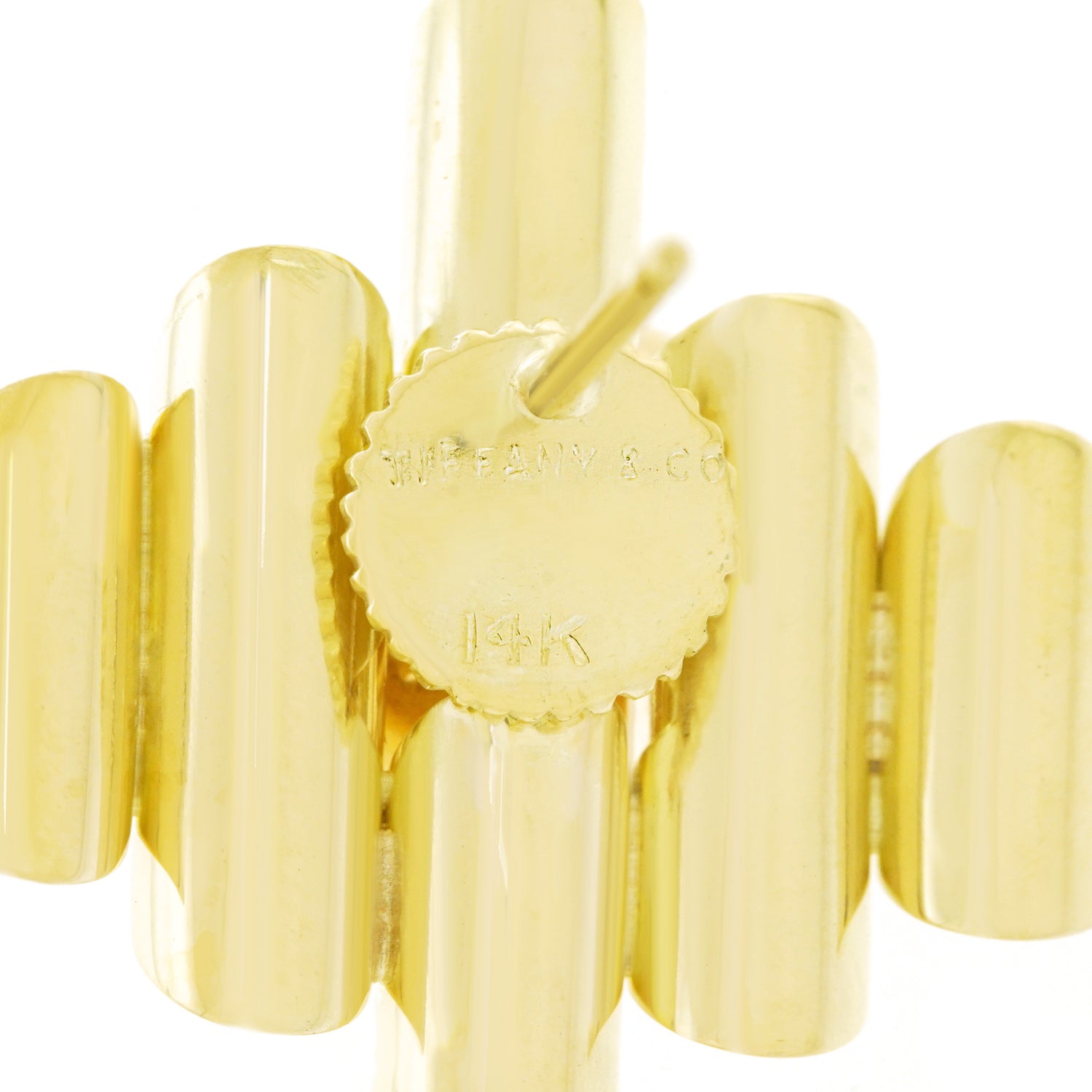 Circa 1930s-40s, 14k, Tiffany & Co., New York City. These wonderfully stylish Tiffany & Co. earrings showcase Deco chic as it transcendently evolves into constructivist and retro. The look is cheerful, modern, and timeless. Equally chic paired with jeans or an evening gown, these earrings effortlessly go anywhere. Comfortable to wear and well-made, they are in excellent condition.