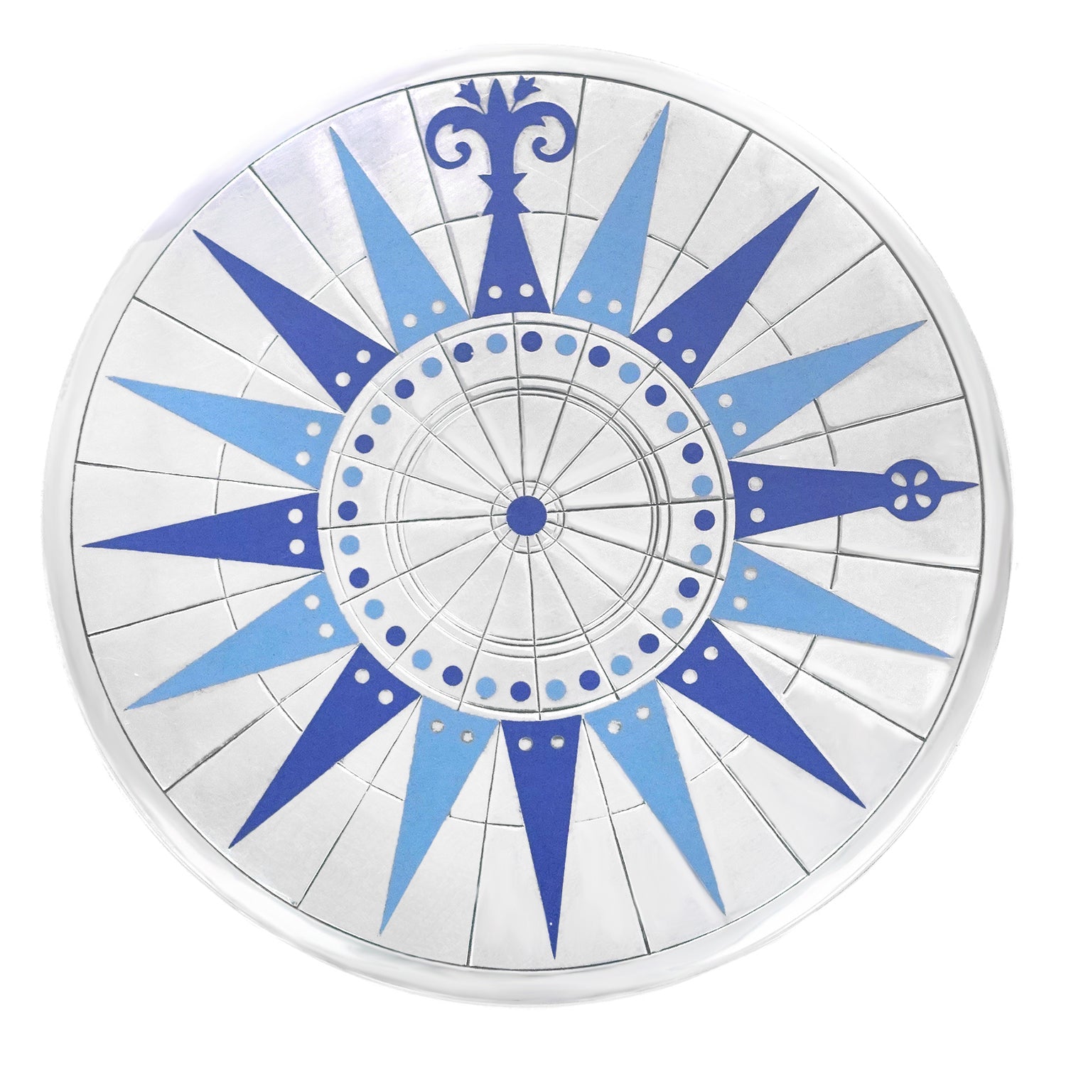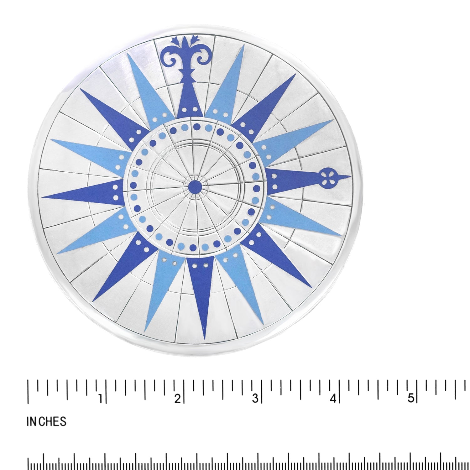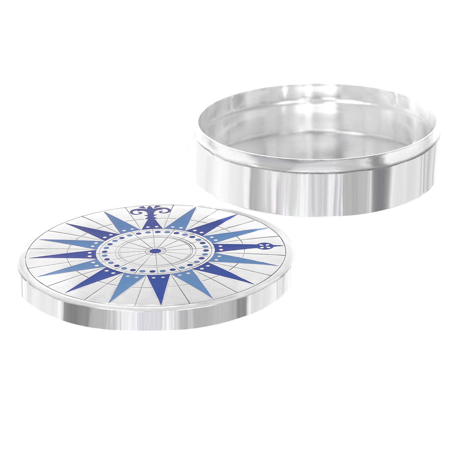 Circa 1950s, Sterling, designed by Erik Herlow for A. Michelsen, Denmark. This gorgeous sterling box features a compass rose motif in the blue enamel Michelsen if famous for. Redolent of Danish mid-century design this is the perfect occasional piece for any home, especially contemporary. Excellent condition.