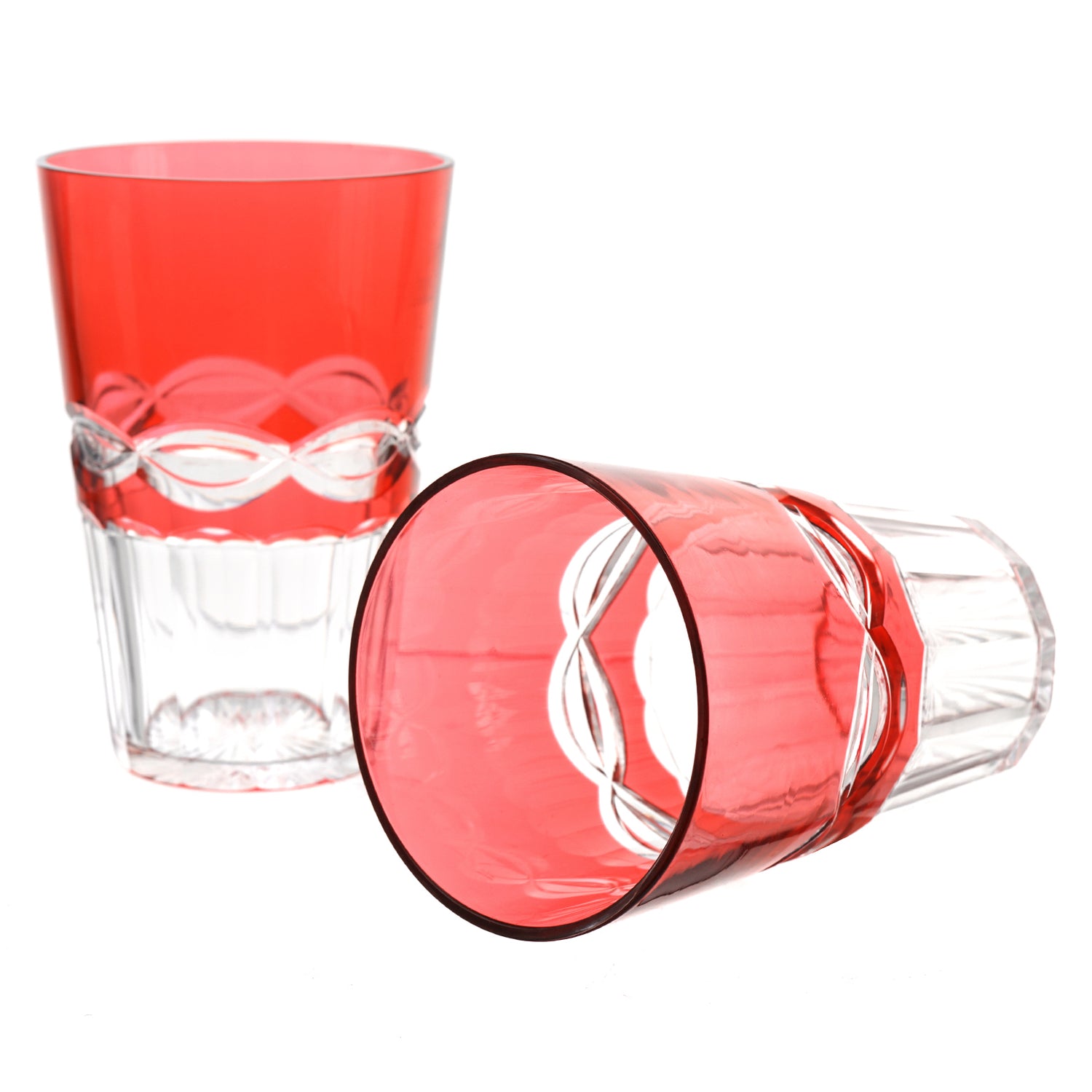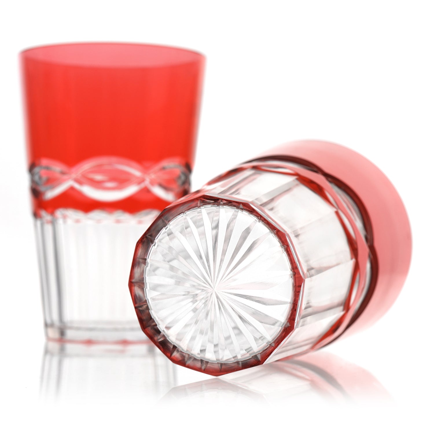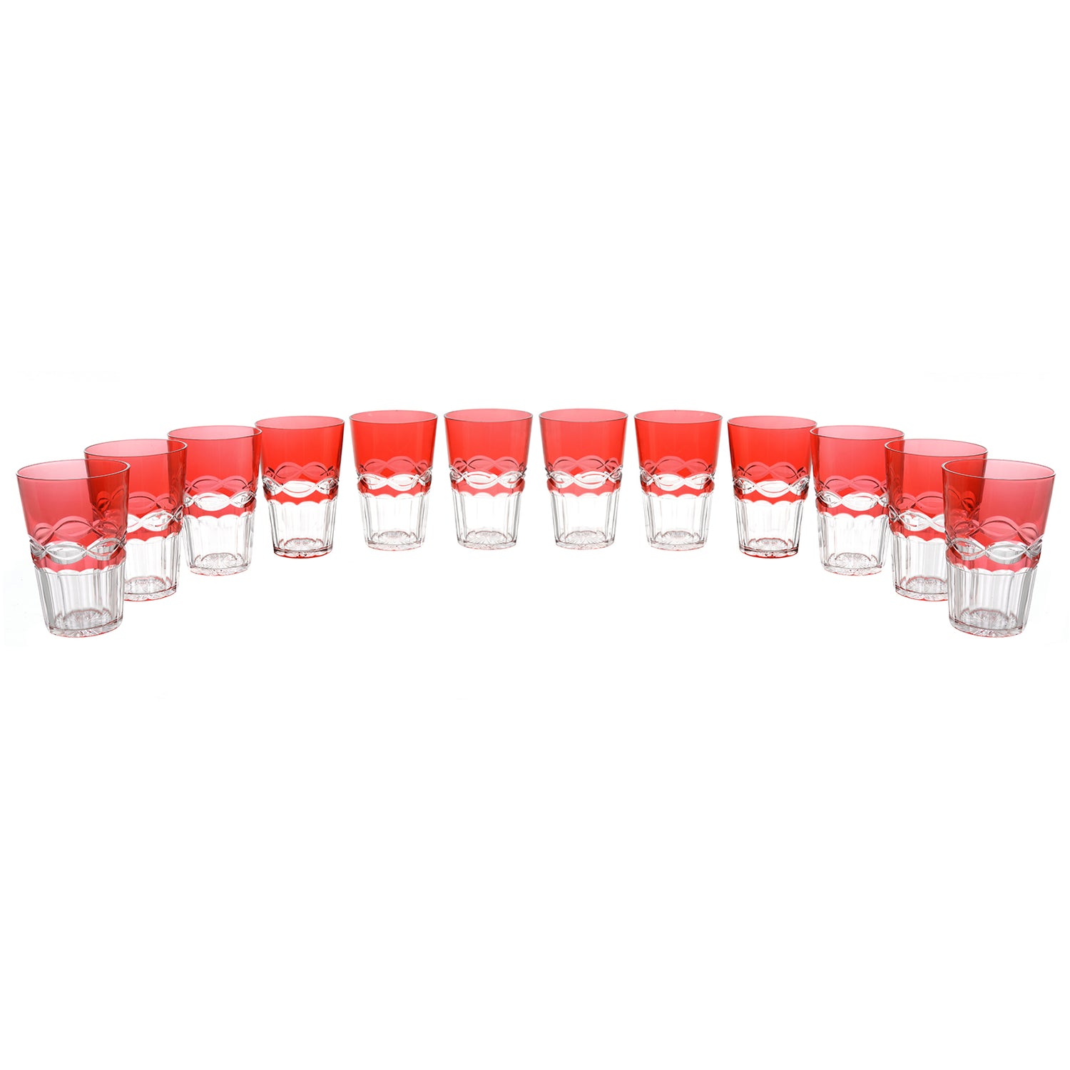 Circa 1920s, St. Louis, France. These 12 crystal tumblers by the legendary Saint Louis of France are beautiful. Perfect for everyday or entertaining, the bright cranberry color completes the visual narrative. They are just right for water or for wine served in the French café style. Excellent condition.