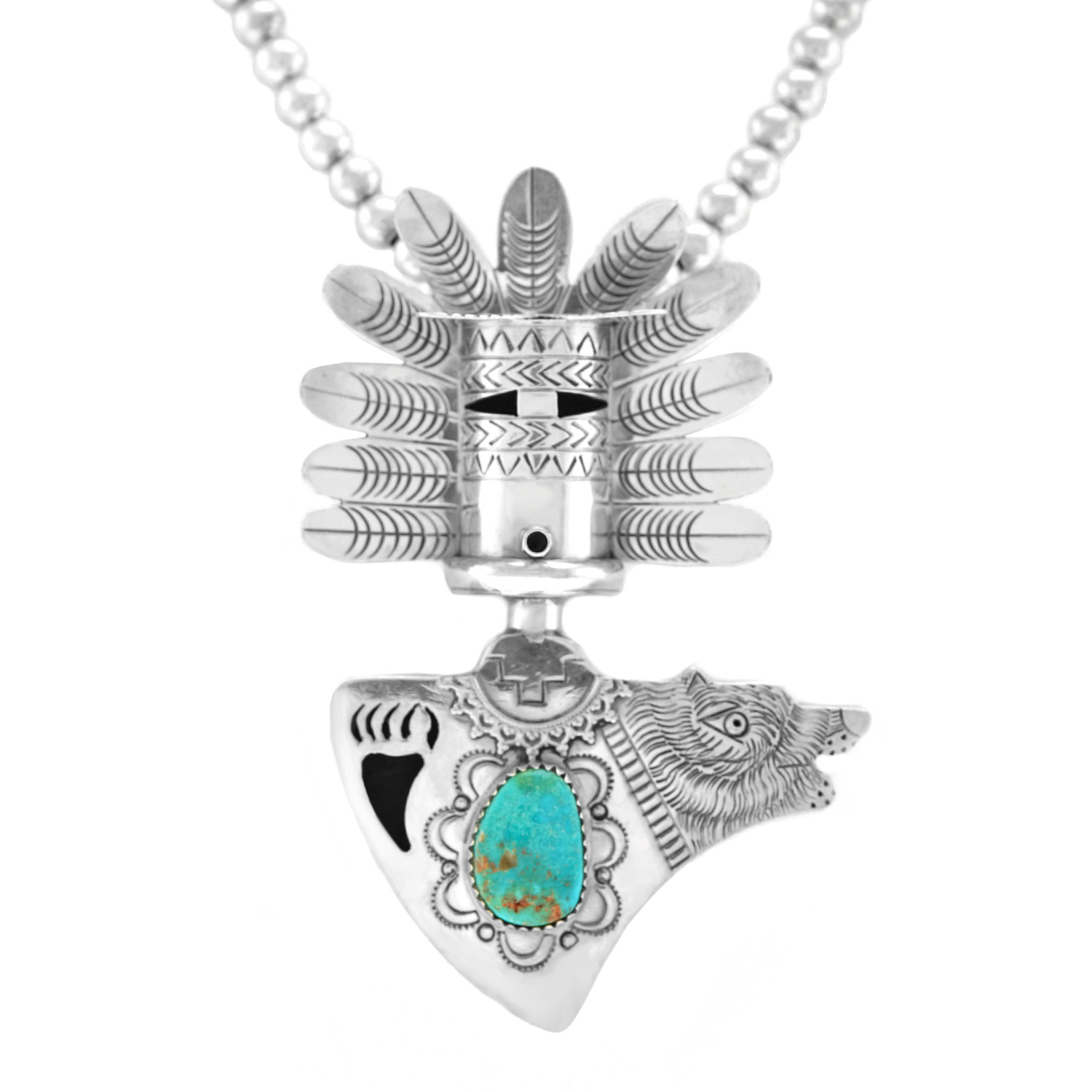 Circa 2000s, sterling, Navajo. The heady mix of fashion and spiritualism in this contemporary Navajo pendant will electrify any look. From tribal to heels and jeans, the authenticity of Navajo jewelry brings timeless style to any moment of fashion. Excellent condition.