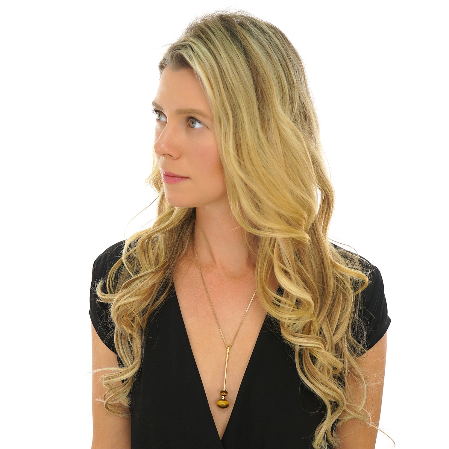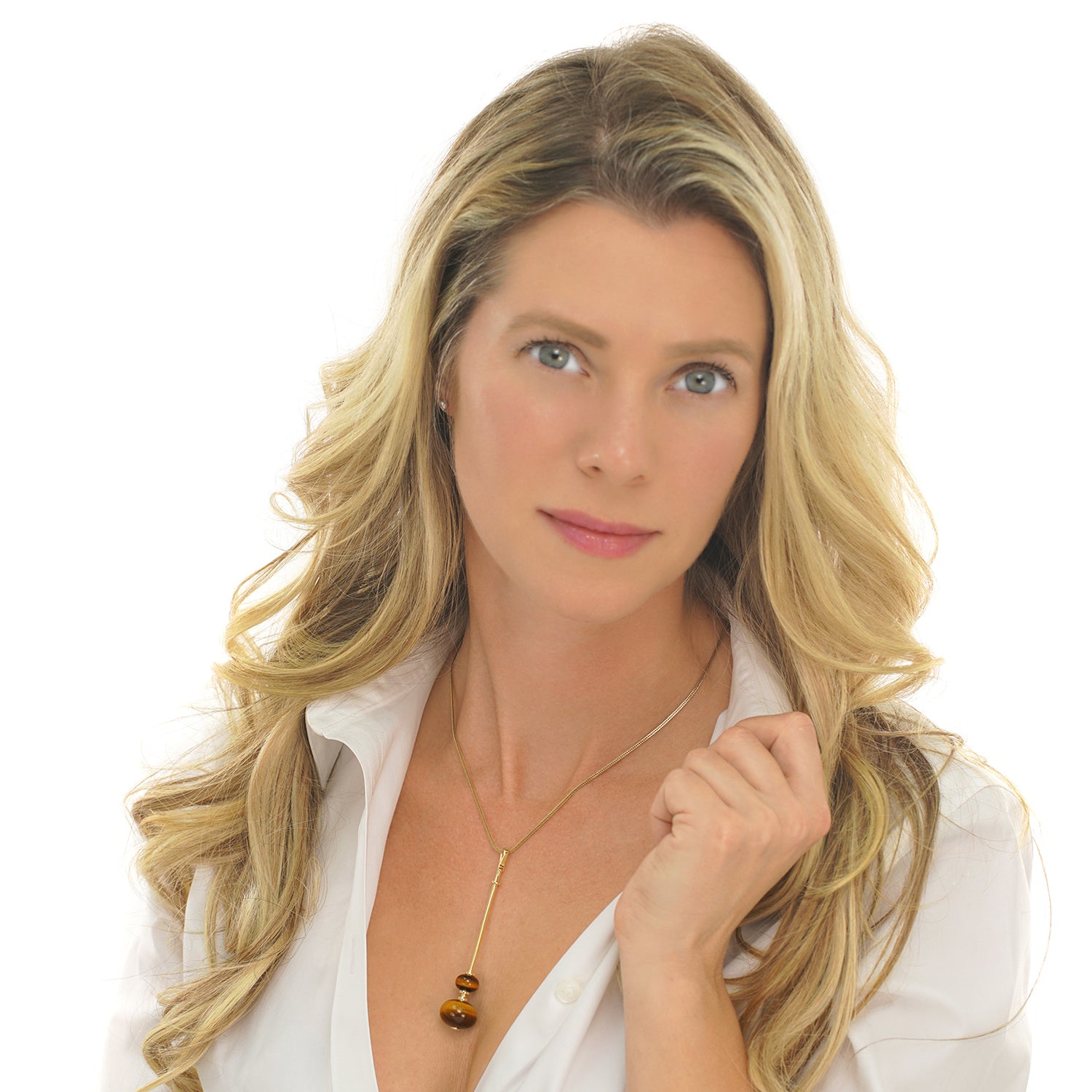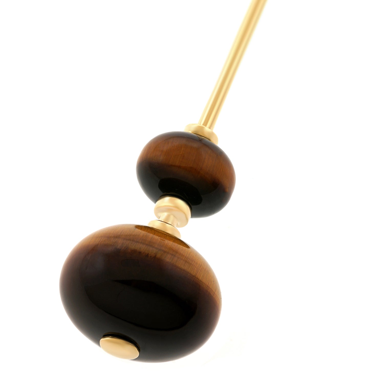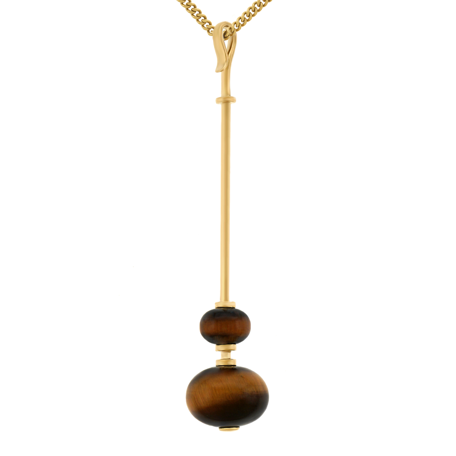 Circa 2000s, 18k, Georg Jensen. Sleek in its modernity, this Georg Jensen pendant features tiger eye beads suspended from a long 18k gold wire. The look is fabulously contemporary, exquisite in any moment of fashion. Excellent condition.