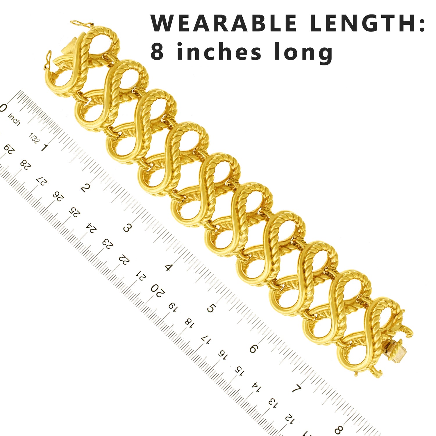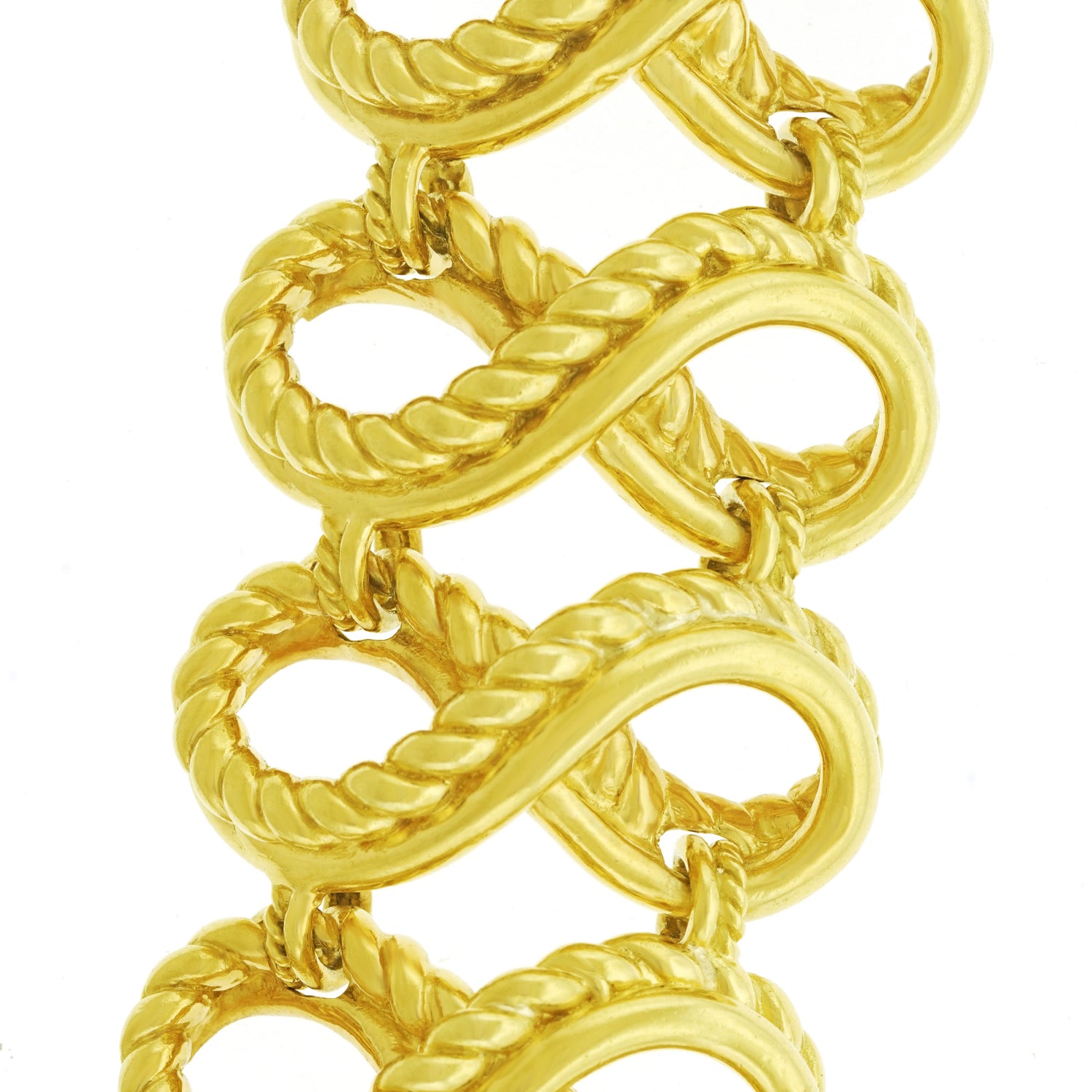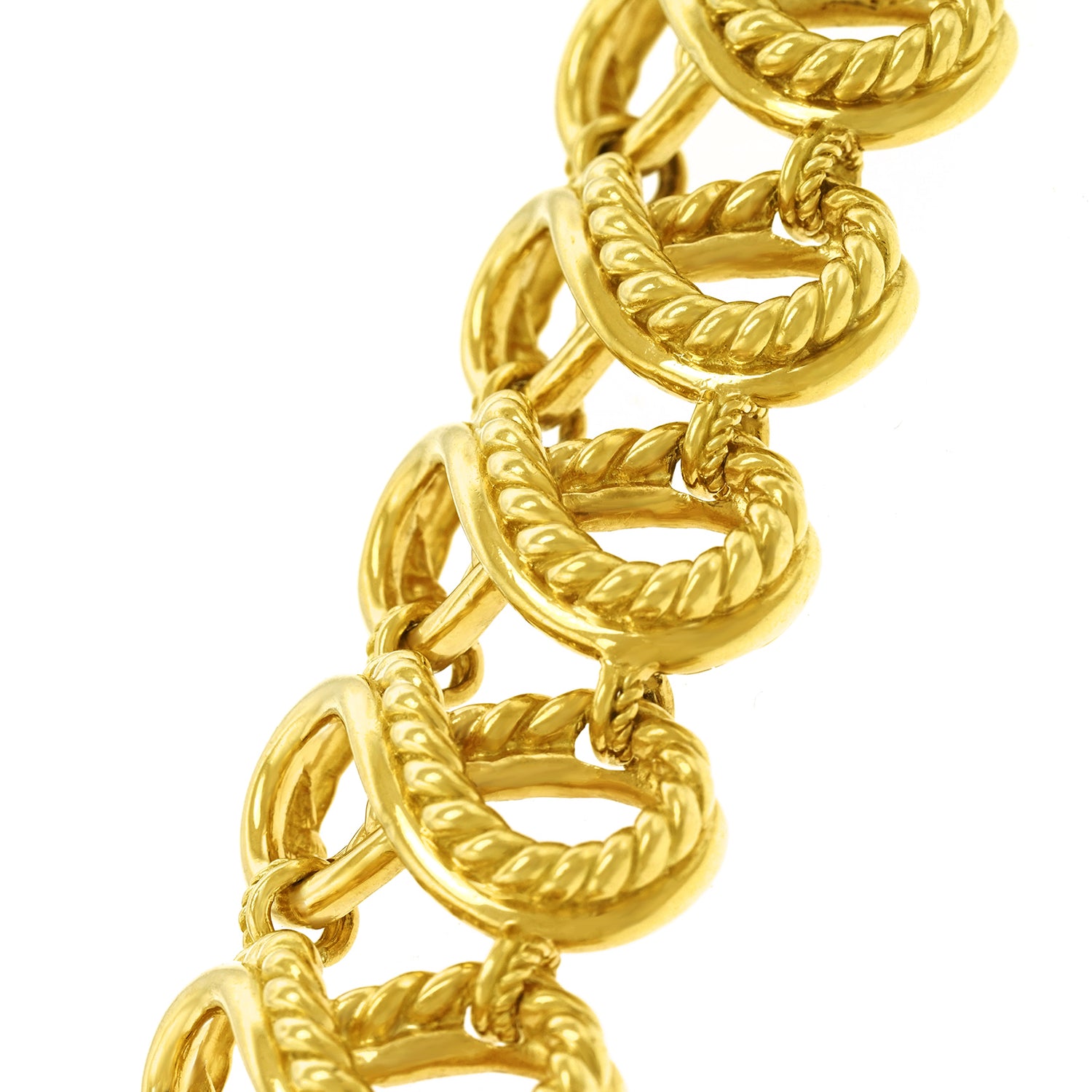 Circa 1970s, 18k, by Tiffany & Co. With a WOW! factor of 12 on the 10 scale, this bracelet is stylistically brilliant. Generous in size, heavy, and beautifully made, it is also very comfortable on, or in other words -- the look and feel are classic Tiffany. Originally purchased at the Zurich store, this is a fabulous example of European-made Tiffany. Excellent condition.
