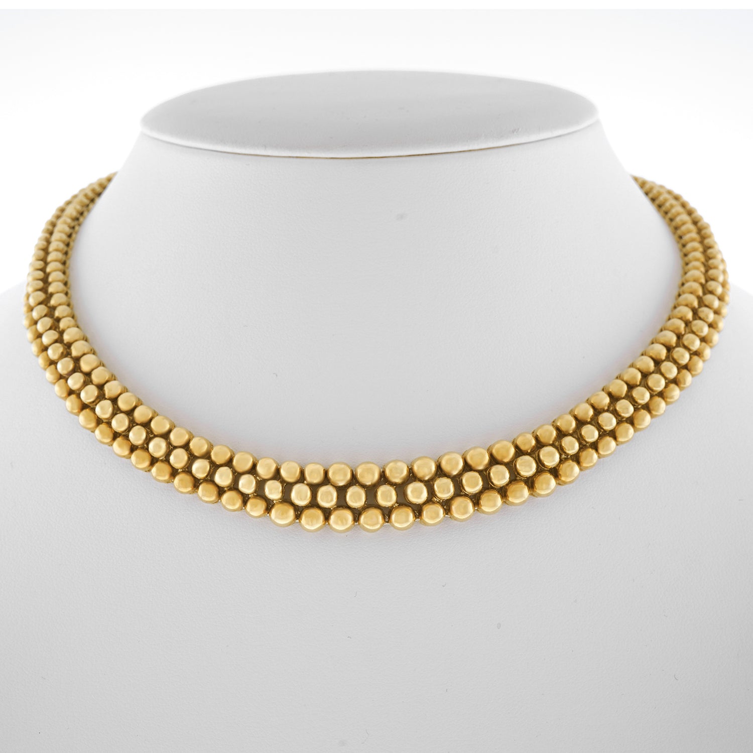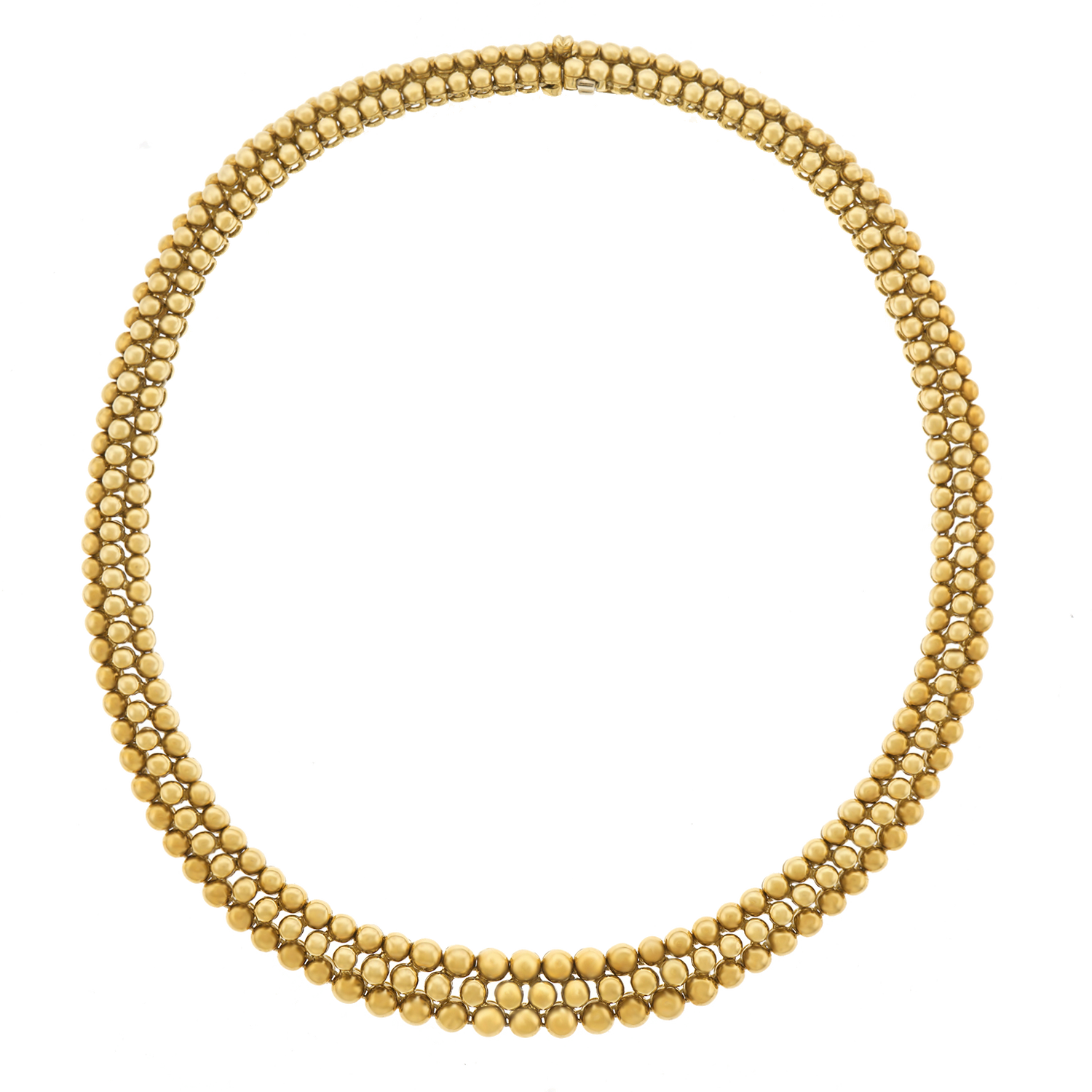 Circa 1990s, 18k, by Boucheron, France. This stylish everyday gold necklace is very Parisian, very French, very Boucheron! Its restrained modernist design fabricated in polished yellow gold is understated and elegant. Beautifully made, it has a very chic look. Excellent condition.