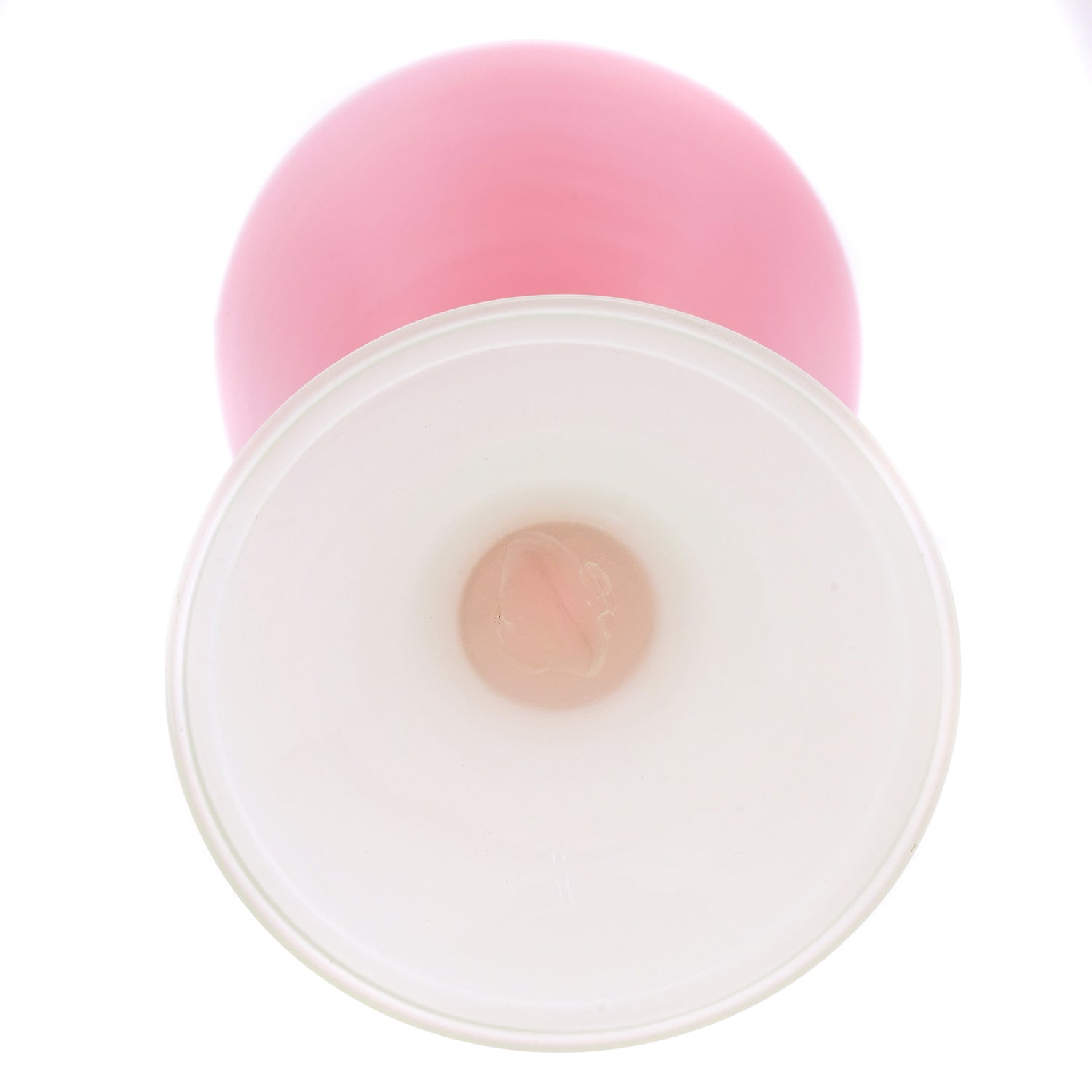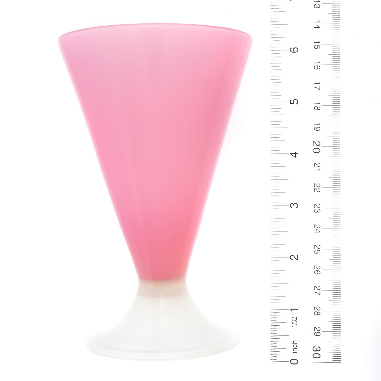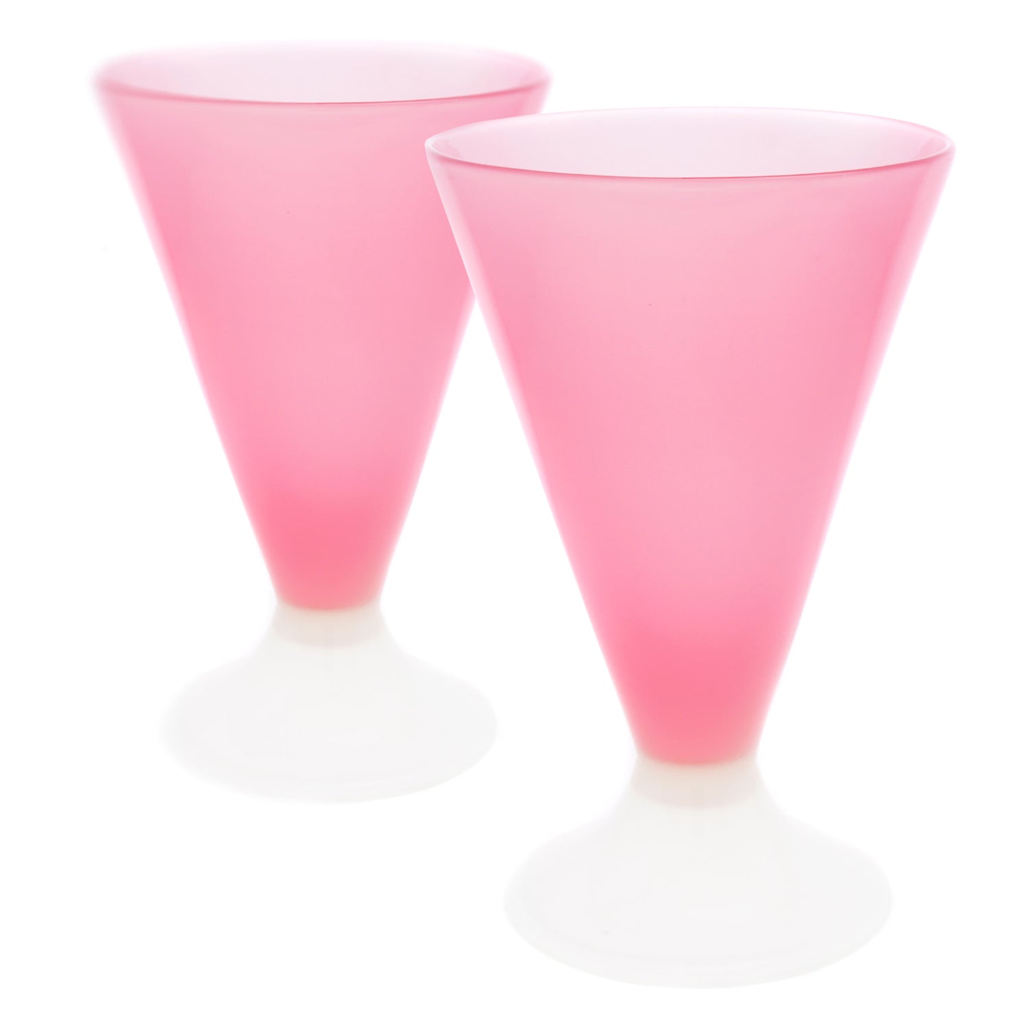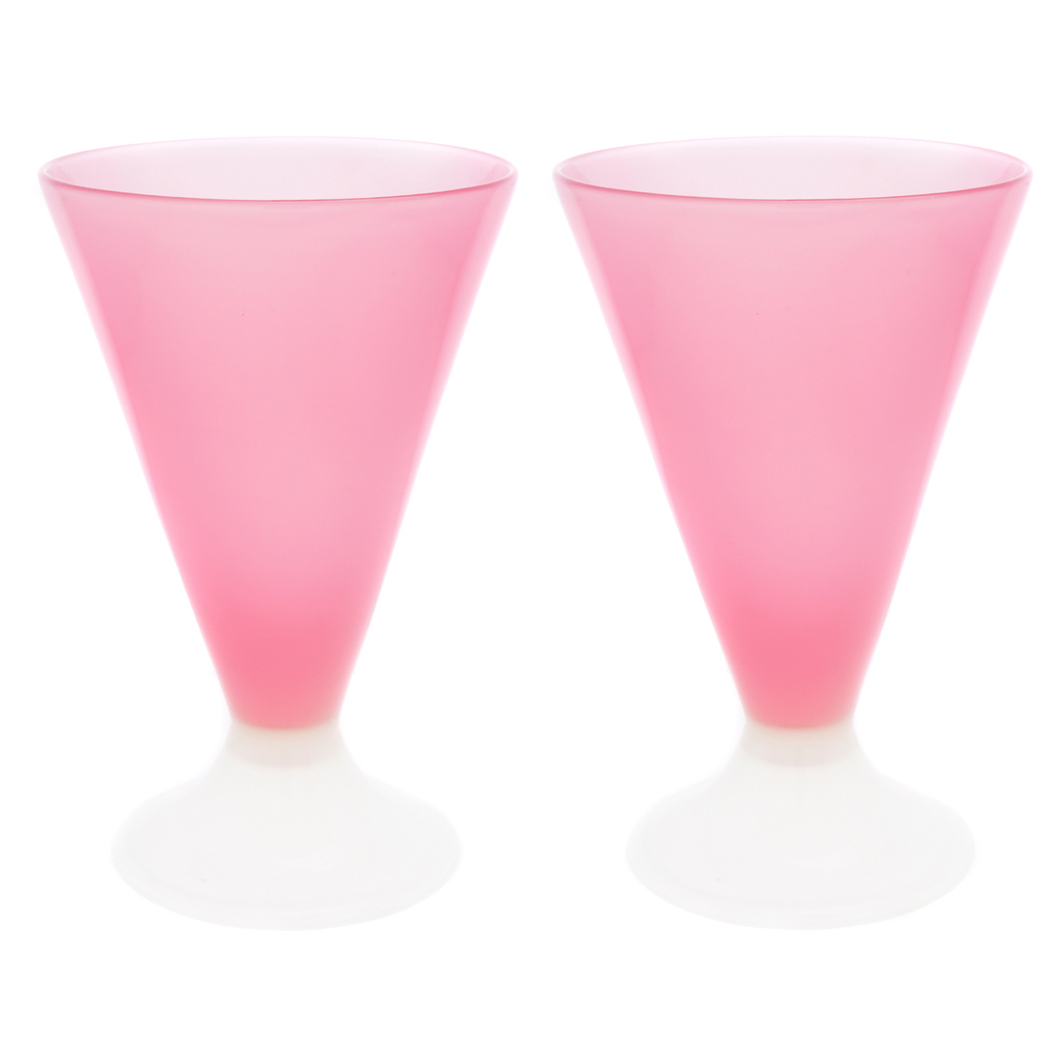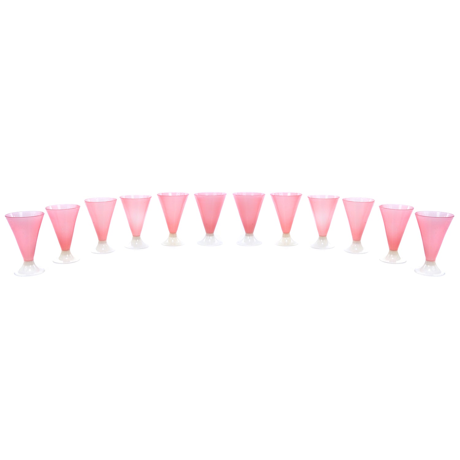 Circa 1920s, Steuben, American. Fresh, lively, and visually crisp, this spectacular set of 12 Steuben Art Deco water glasses features pink bowls and alabaster stems. A very rare and extremely beautiful color, these goblets are superbly made and in excellent condition.