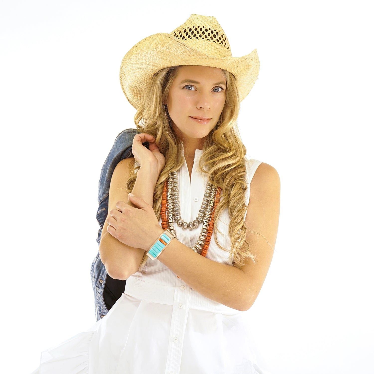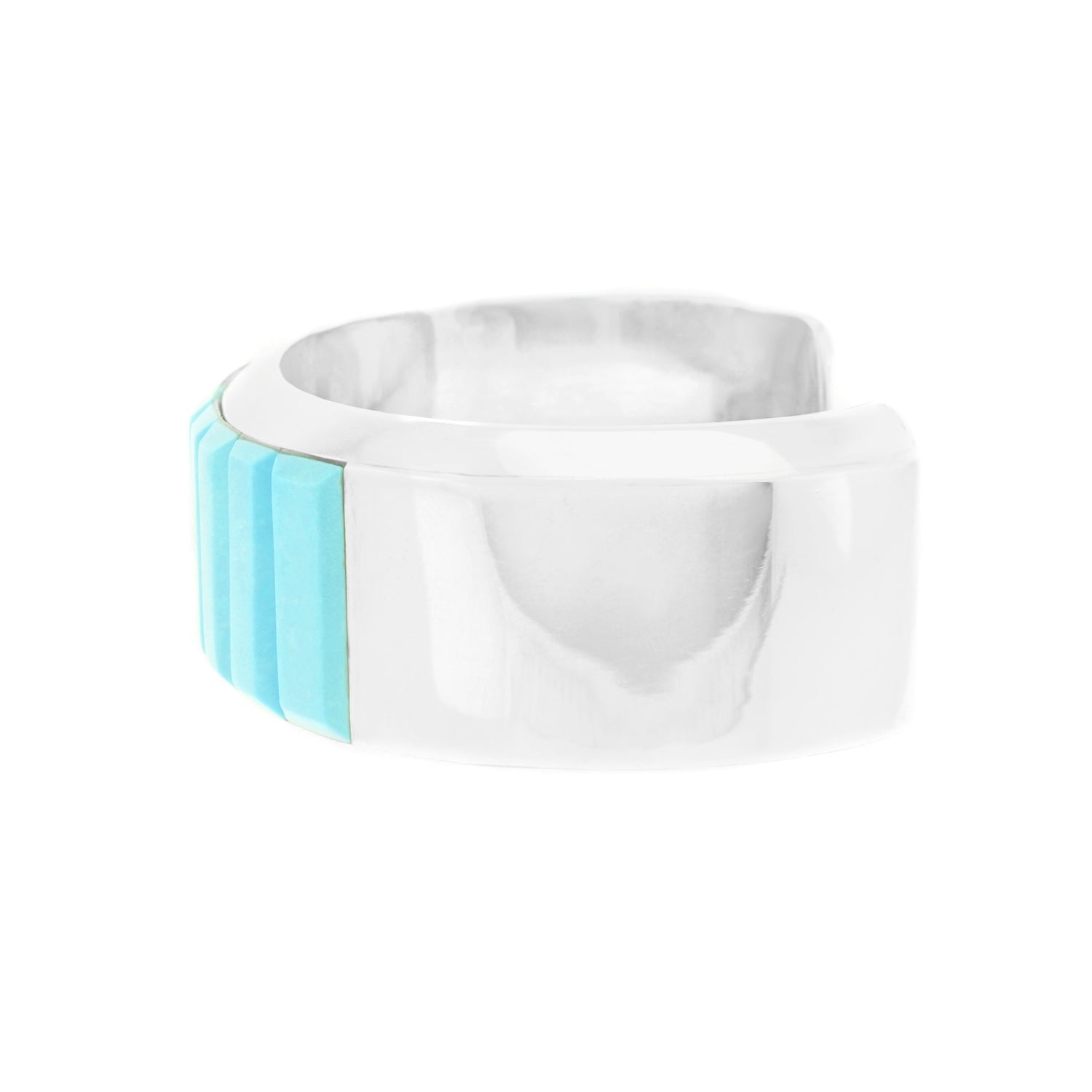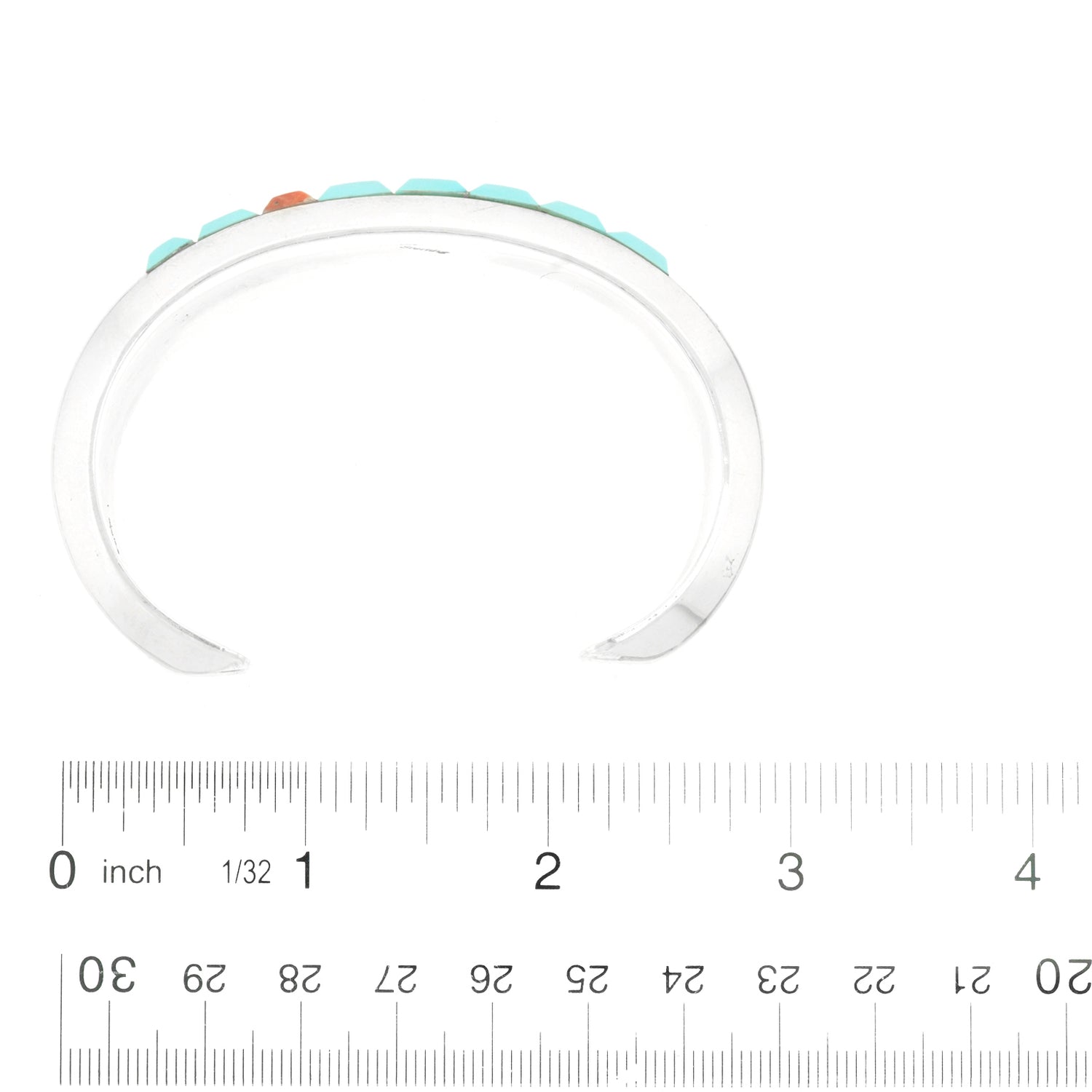 Circa 1980s, sterling, Navajo, American. Set with turquoise and spiny oyster in a cobblestone motif, this contemporary Navajo bracelet flawlessly blends modern design with Southwestern sensibilities. Hand-made and very heavy, is in excellent condition.