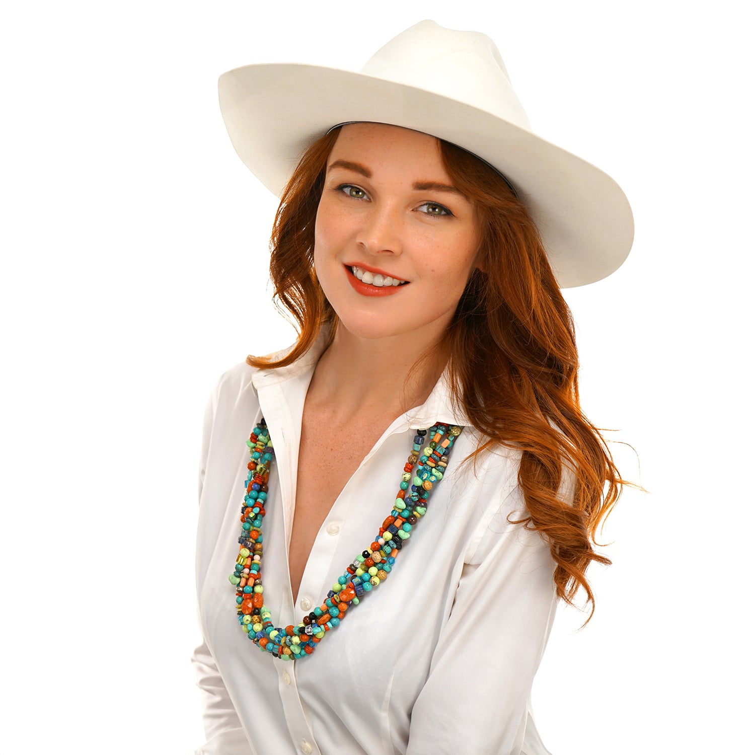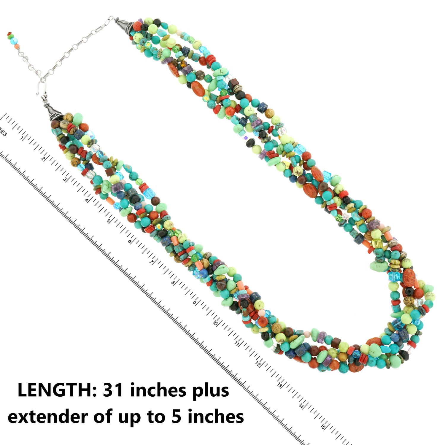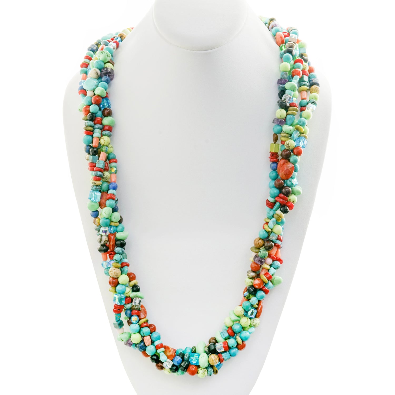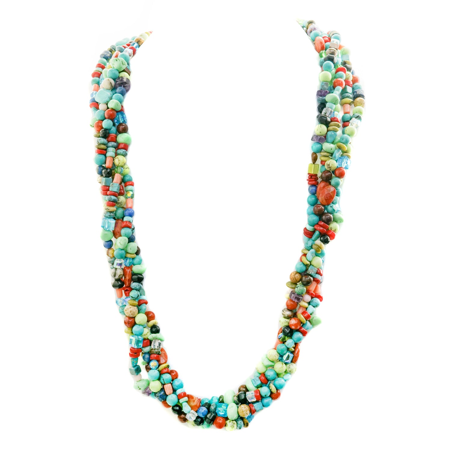 Circa 1990s, Sterling, by Don Lucas. Known for his one-of-a-kind pieces in the Southwestern style, Don Lucas pieces "bring a sense of uniqueness and style to any wardrobe. They quickly become go-to accessories." This necklace is particularly colorful and bold. Excellent condition.