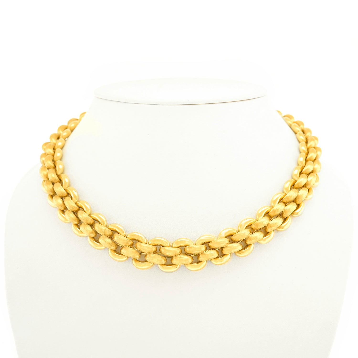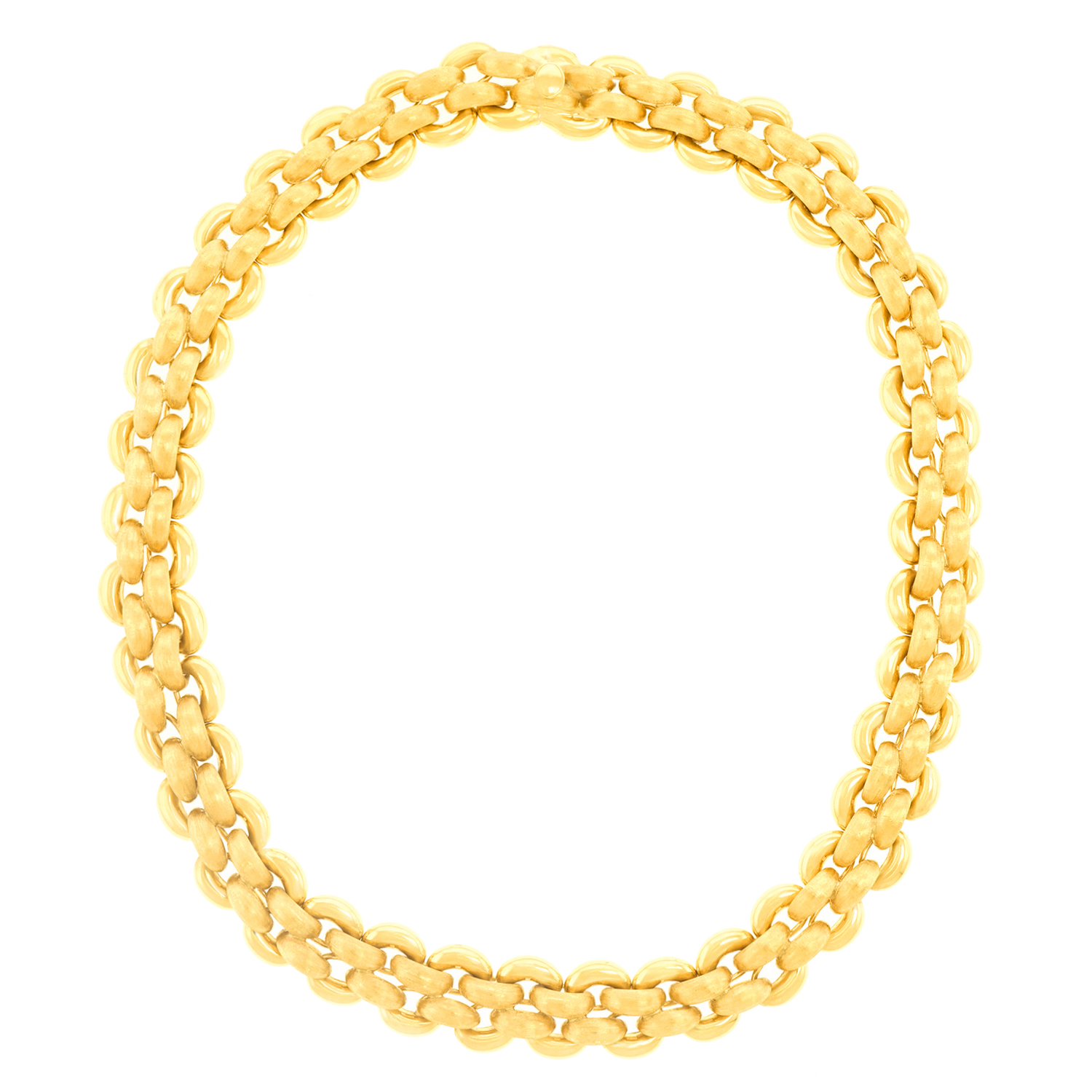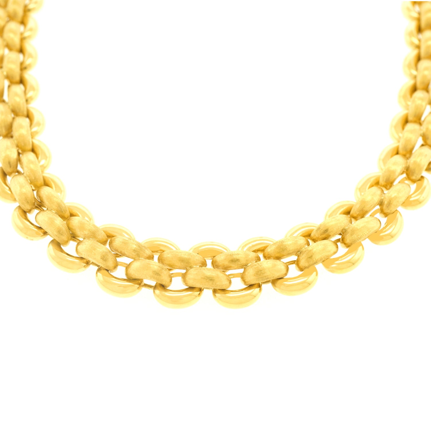 Circa 1950-60s, 18k, by Nardi, Italy. Known for their unique designs and meticulous fabrication, Nardi has produced superb quality jewelry since the 1920s. Perfectly proportioned, this tailored 18k necklace is impeccable everyday gold. Excellent condition.