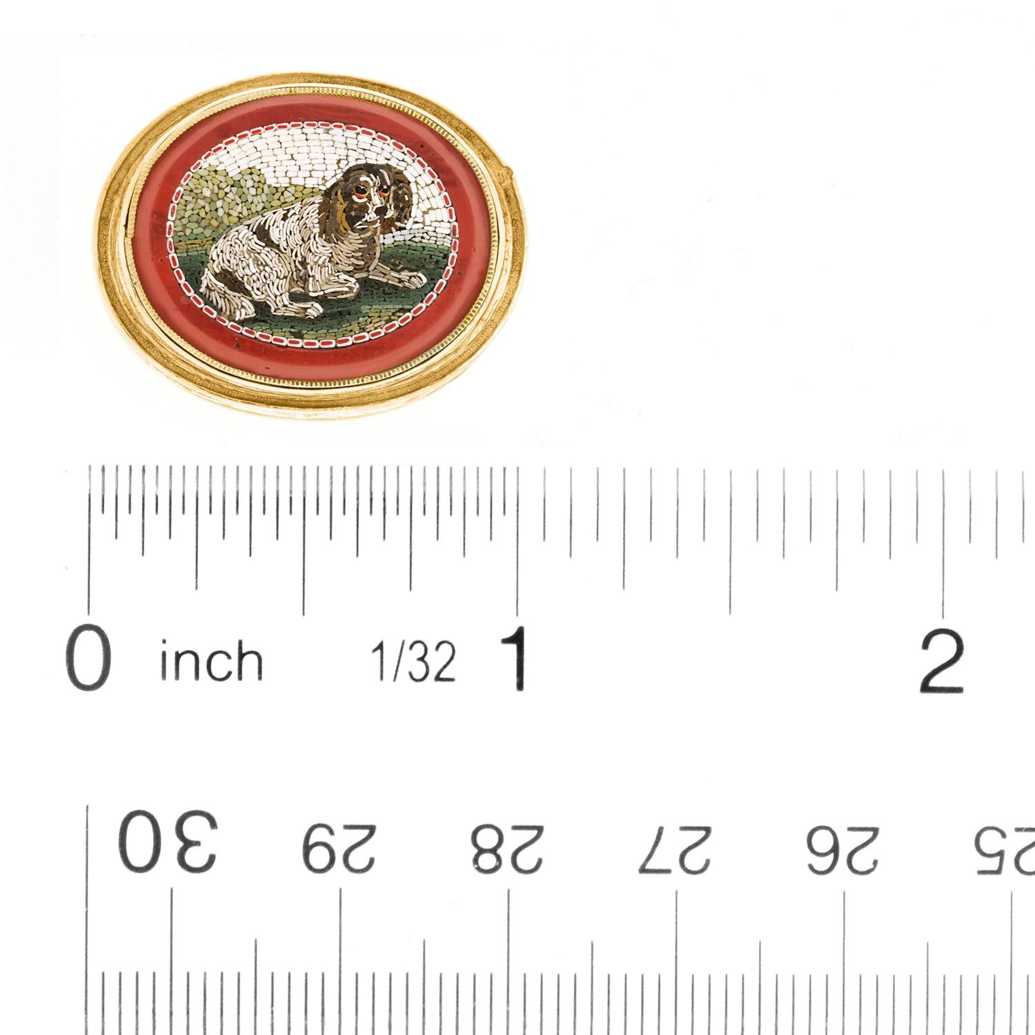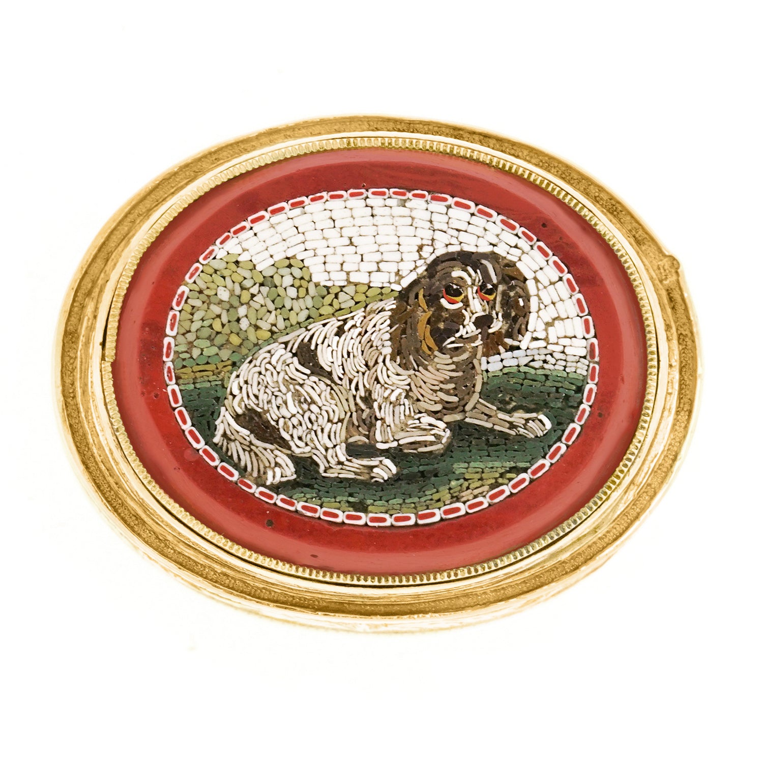 #22183 - Spaniel Micro Mosaic Mounted On A Gold Vinaigrette C1810-1830S France