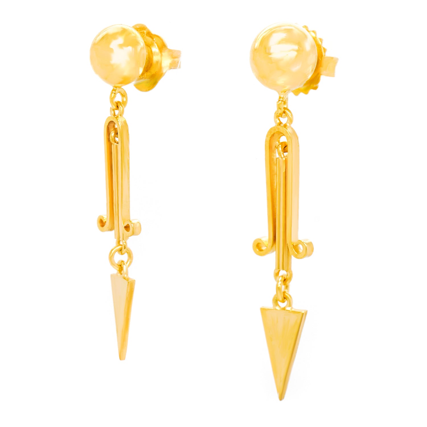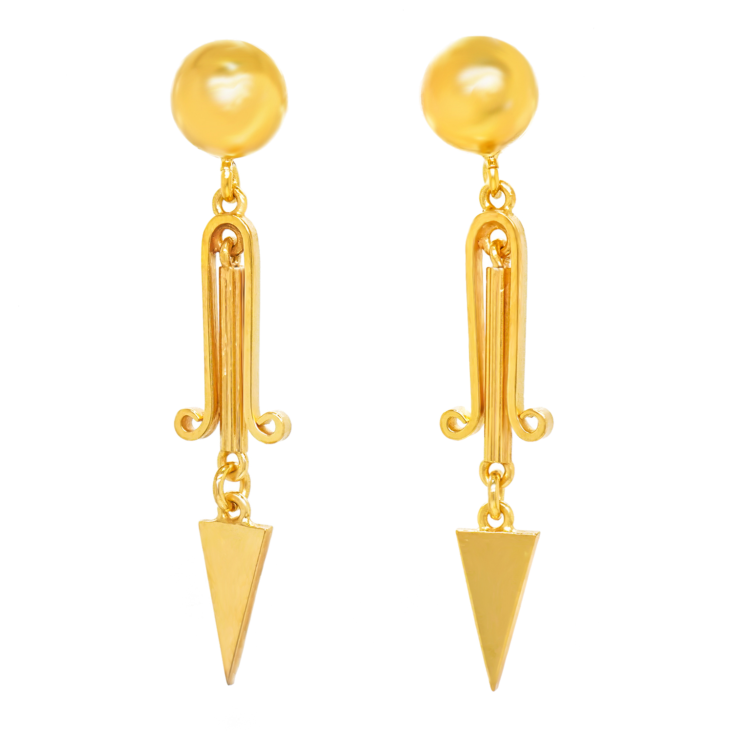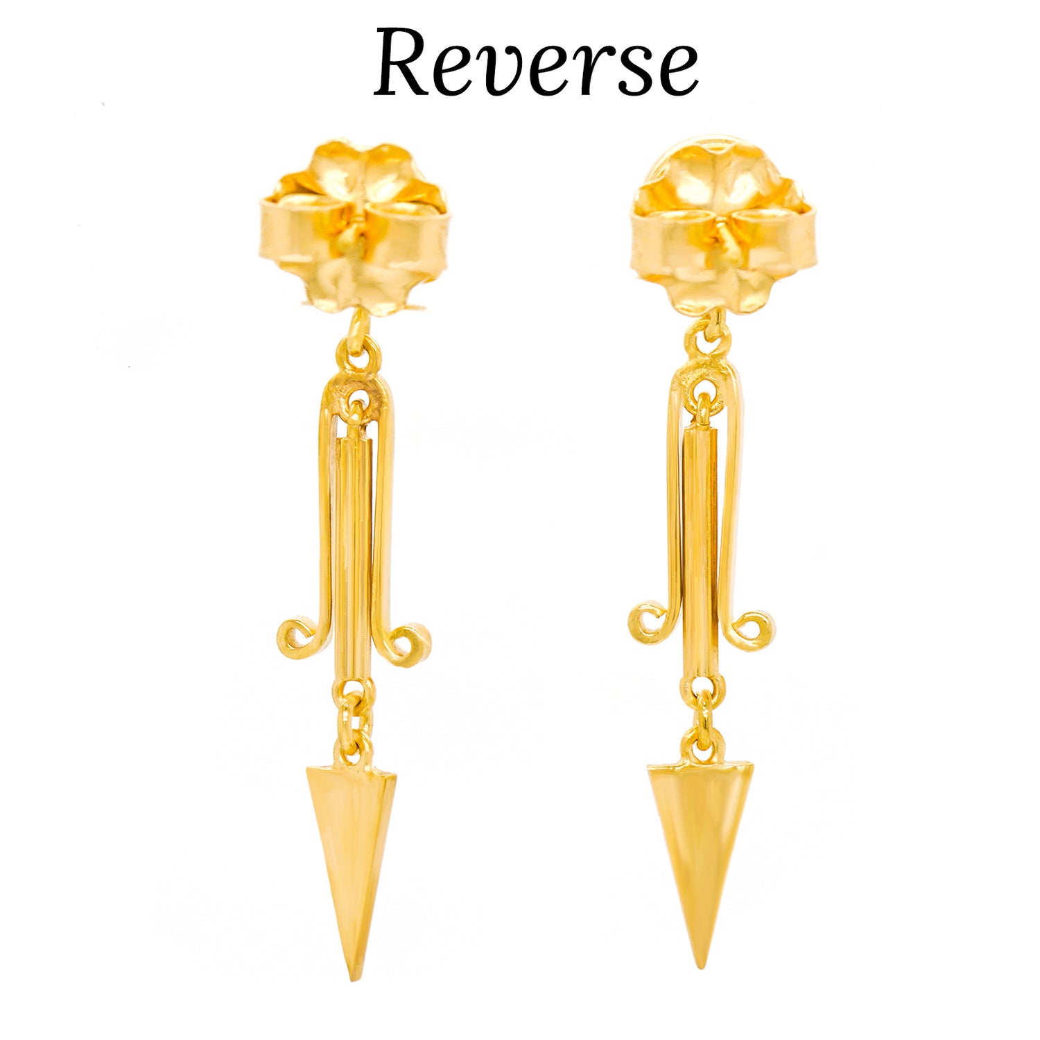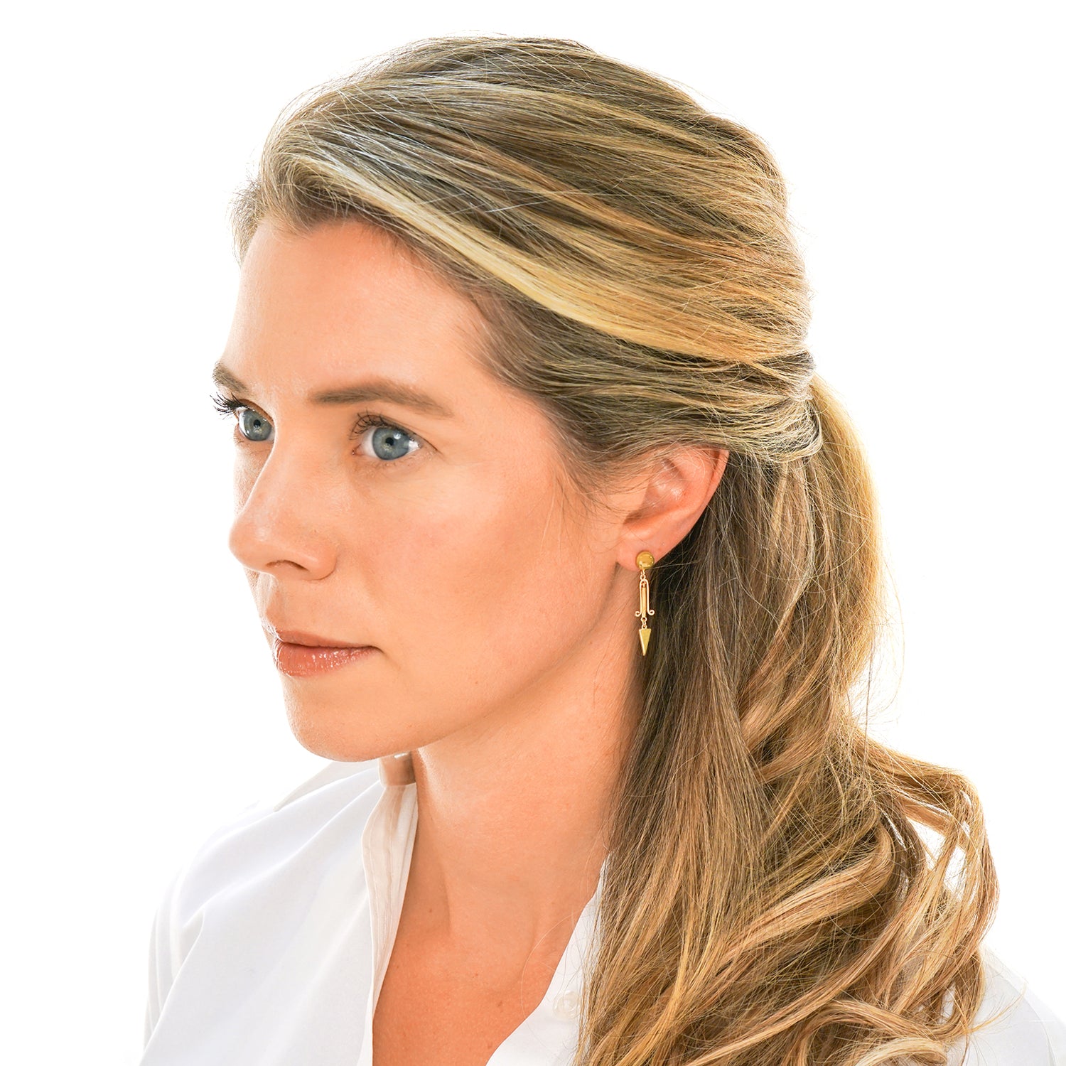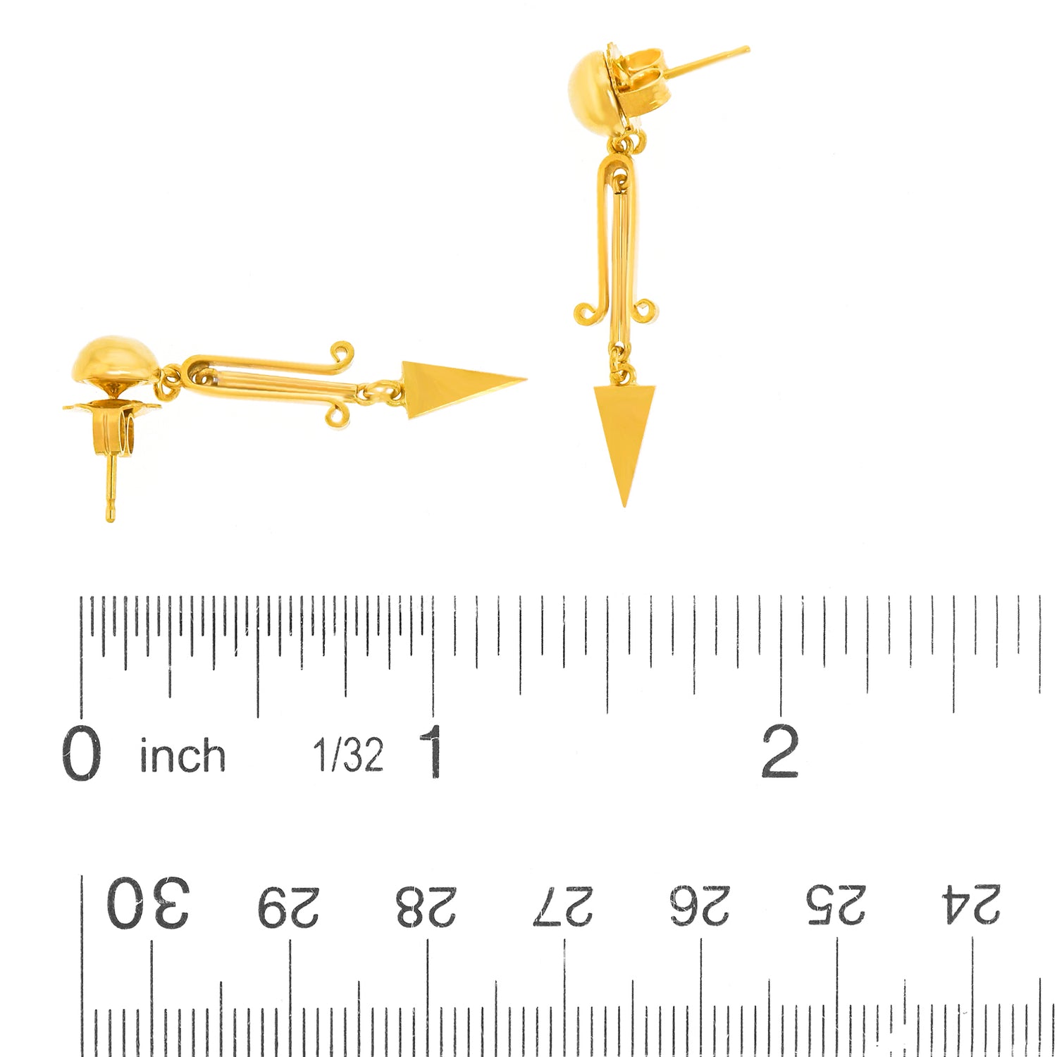 Circa 1870s, 14k, converted to earrings 2020 by Lawrence Jeffrey, American. These elegant yellow gold earrings with their demure Victorian dangles are perfect for your contemporary fashion collection. Effortless style for the boardwalk or the boardroom, they center any look with 19th-century authenticity. Finely fashioned, they are in excellent condition.