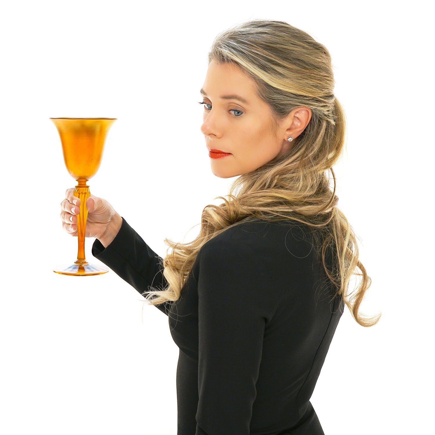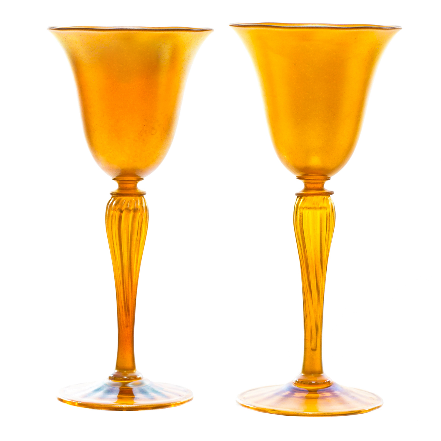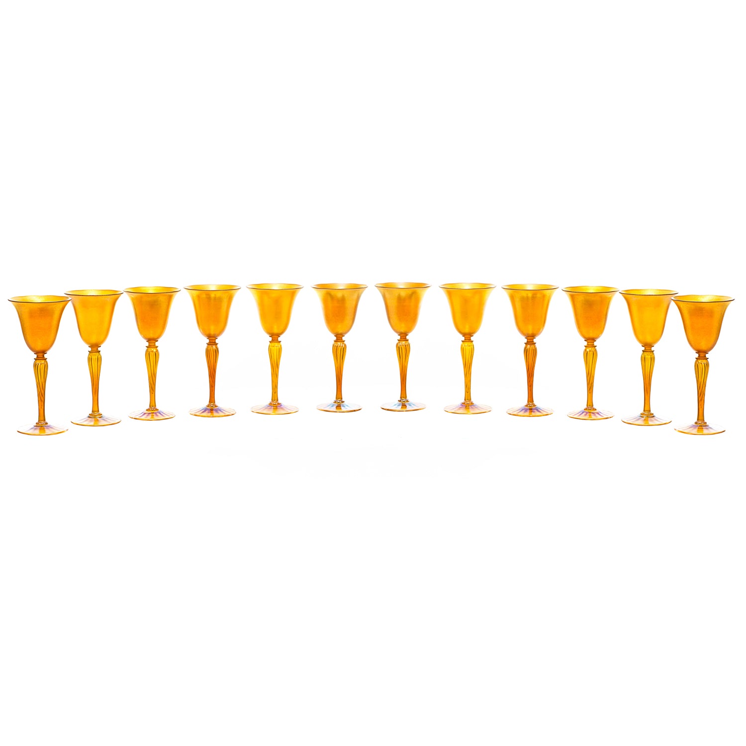 #22358 - Set Of 12 Durand Gold Lustre Art Glass Water Goblets C1920s